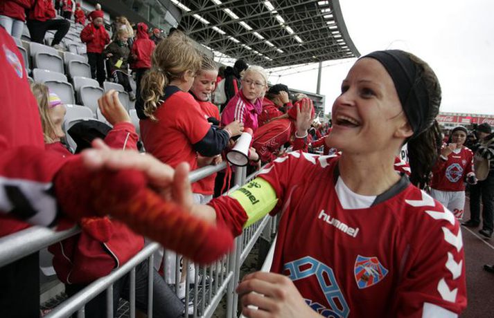 Valskonur unnu bikarinn annað árið í röð Óskar Ófeigur Jónsson skrifar 15. ágúst 2010 22:00 Katrín Jónsdóttir, fyrirliði Vals, lyftir hér bikarnum. Mynd/Daníel Valskonur tryggðu sér bikarmeistaratitilinn annað árið í röð eftir 1-0 sigur á Stjörnunni í úrslitaleik VISA-bikar kvenna á Laugardalsvelli í dag. Þetta er í fyrsta sinn síðan árið 1988 sem kvennaliði Vals tekst að vinna bikarinn tvö ár í röð en Valskonur unnu þarna sinn tólfta bikarmeistaratitil frá upphafi. Daníel Rúnarsson, ljósmyndari Fréttablaðsins og Vísis, var á Laugardalsvellinum í dag og myndaði sigurgleði Valskvenna í leikslok. Myndirnar má sjá í albúminu hér að neðan. Hægt er að sjá myndirnar stærri með því að smella á þær.Mynd/DaníelMynd/DaníelMynd/DaníelMynd/DaníelMynd/DaníelMynd/DaníelMynd/DaníelMynd/DaníelMynd/DaníelMynd/DaníelMynd/Daníel Íslenski boltinn Skroll-Íþróttir Mest lesið Vonast til að komast í Kórinn: „Menn hafa aldrei séð annað eins“ Fótbolti Landsleiknum aflýst og framhaldið óljóst Fótbolti Fær þrjár milljónir á dag næstu sex árin fyrir að gera ekkert Sport Stöðufundur í Laugardal klukkan 10:30 Fótbolti Enska úrvalsdeildin í jólaköttinn Enski boltinn Elsta konan til klára Járnkarlinn Sport Markvörður Inter banaði háöldruðum manni í hjólastól Sport Landsliðskonur aðstoðuðu ökumenn í vanda Fótbolti Segir að Slot verði að taka tvo leikmenn út úr Liverpool-liðinu Enski boltinn Birnir frá Akureyri í Garðabæ Íslenski boltinn Fleiri fréttir Birnir frá Akureyri í Garðabæ Hættir með Fram Heimir kynntur til leiks í Árbænum Túfa rekinn frá Val Leyndarmáli ljóstrað upp þegar Heimir og Björn kvöddu Leikmenn kusu Patrick og Guðmund Sjáðu bananabombu Antons Loga og önnur síðustu mörk tímabilsins Uppgjörið: Stjarnan - Breiðablik 2-3 | Stjarnan í Evrópu þrátt fyrir tap „Held að ég geti ekki gert mikið meira“ Uppgjörið: Vestri - KR 1-5 | KR bjargaði sér og sendi Vestra í Lengjudeildina Uppgjörið: ÍA - Afturelding 1-0 | Afturelding staldraði stutt við í efstu deild Uppgjörið: Víkingur - Valur 2-0 | Meistararnir klára tímabilið með stæl Uppgjörið: ÍBV - KA 3-4 | KA tryggði sér Forsetabikarinn þriðja árið í röð Ráðast örlög Aftureldingar inni í höll? „Þetta verður bara veisla fyrir vestan“ Vestri og KR mætast á fyrsta degi vetrar: „Vona að það snjói ekki í nótt“ Lárus Orri framlengir á Skaganum „Kominn tími á sigur í Sambandsdeildinni“ Tekur við af læriföður sínum Snjó kyngir niður á Akureyri og Evrópuleikur færður inn „Veistu hvað leikmaðurinn sagði við mig?“ „Ég þarf bara að láta verkin tala“ Valur og Sigurður Egill senda frá sér sameiginlega yfirlýsingu Hemmi Hreiðars orðaður við Val Katrín kvödd með fallegum hætti: „Ég hef aldrei séð þetta áður“ Sjáðu þrumufleyg Fred og snöggt svar Stjörnunnar Enginn þjálfari hefur bæði byrjað og klárað Sambandsdeildina Stúkan birti skilaboðin: „Mér finnst þetta ömurlegt“ Uppgjörið: Fram-Stjarnan 1-1 | Úrslitaleikur um Evrópusæti um næstu helgi Sigurður Egill svarar yfirlýsingu Vals: Ómakleg og lágkúruleg setning Sjá meira