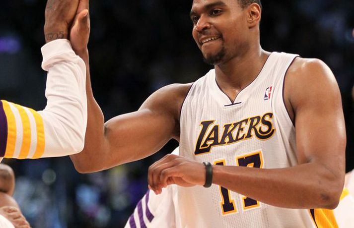 Bynum hetjan í þriðja sigri Lakers á Celtics í röð Kolbeinn Tumi Daðason skrifar 12. mars 2012 09:04 Bynum naut sviðsljóssins í Staples-höllinni. Nordic Photos / AFP Los Angeles Lakers lagði erkifjendur sína frá Boston 97-94 í Staples-höllinni í Los Angeles í gærkvöldi. Lakers voru fimm stigum undir þegar tvær og hálf mínúta lifðu leiks. Frábær endasprettur tryggði liðinu sinn þriðja sigur á Celtics í röð. Liðsmenn Los Angeles Lakers komu gestunum í Boston í opna skjöldu í síðustu sókn sinni í viðureign liðanna í Staples Center í gærkvöld. Aldrei þessu vant átti Kobe Bryant ekki að sjá um málið heldur var stillt upp í leikkerfi fyrir hinn hávaxna Andrew Bynum sem kom Lakers þremur stigum yfir þegar 15 sekúndur lifðu leiks. Árangurslaust reyndu leikmenn Celtics að spila stórskyttuna Ray Allen uppi í lokasókn sinni í von um þriggja stiga körfu. Rajon Rondo skaut að lokum úr erfiðri stöðu og missti marks. „Þetta var geggjað. Það var Kobe sem lagði á ráðin fyrir síðustu sóknina," sagði Bynum hæstánægður með að hafa verið leitað til þegar mest lá við. Liðsmenn Lakers eru öllu vanari að fylgjast með og aðstoða hinn magnaða Kobe Bryant í lykilsóknum undir lok leikja en annað var uppi á teningnum í gærkvöldi. „Við elskum að sigra þetta lið," sagði Bynum sem skoraði 20 stig og tók 14 fráköst. Kobe Bryant var hins vegar maður leiksins með 26 stig, þar af 10 stig í lokaleikhlutanum. Lakers vann sinn 18 sigur í síðustu 19 heimaleikjum sínum. Þetta var þriðji sigur liðsins á Celtics í röð en liðin mættust í úrslitum NBA-deildarinnar árin 2008 og 2010. Hér að ofan má sjá nokkrar myndir AFP frá stemmningunni í Staples-Center í gær. NBA Mest lesið Líður alltaf yfir hana þegar hún kemur í mark Sport „Hefði séð eftir því alla ævi“ Íslenski boltinn „Mjög sáttur með samninginn“ Íslenski boltinn „Hann ætti bara að skrifa afsökunarbiblíuna“ Körfubolti Rekinn fyrir ummæli sín um krabbameinssjúka handboltagoðsögn Handbolti Magnús Már í viðræðum við HK Íslenski boltinn Real Madrid vill stórar skaðabætur frá UEFA Fótbolti Einkunnir Íslands: Þrjár heitastar í frostinu Fótbolti Hefur spilað 16 mínútur og fengið tvö rauð spjöld Enski boltinn Rúmar tvær milljónir í boði ef þú finnur hundinn hans Aarons Ramsey Fótbolti Fleiri fréttir „Hann ætti bara að skrifa afsökunarbiblíuna“ Uppgjörið: Njarðvík - Grindavík 85-84| Njarðvík fyrstar til að leggja Grindavík af velli Ótrúleg dramatík í Garðabæ og á Sauðárkróki Landsliðsmennirnir öflugir í Evrópu Jordan gagnrýnir álagsstjórnun í NBA: Þú hefur skyldu til að láta sjá þig Skiptiborð hjá stelpunum í kvöld Var með skattinn á hælunum þegar hann fór í veðmálabraskið Bíll Shaquille O'Neal enn ófundinn Martin öflugur í góðum sigri Öllum leikjum Bónus-deildar kvenna í kvöld frestað Stólarnir ekki í vandræðum á Egilsstöðum Enginn Lakers-maður hafði náð þessu í meira en 52 ár Veðmál rædd í Körfuboltakvöldi: „Bara ævintýralega heimskulegt“ Kvöddu húsið og Nablinn klifraði í kveðjuskyni Martin naut sín í fræknum sigri á meisturum Bayern Tryggvi lykilmaður í sigri Bilbao Elvar skoraði tólf í naumu tapi Tilþrifin: Varin skot og ótrúlegar körfur Valsmanna Þriðja tapið í röð hjá Jóni og félögum Fáránlegt eða klókt hjá Kristófer? „Ef það má þá gerir fólk það“ Brassi tekur við af Billups „Það er æðislegt að kveðja húsið svona“ Uppgjörið: ÍA - Álftanes 76-74 | ÍA kvaddi Vesturgötuna með stæl Uppgjörið: Stjarnan - ÍR 91-93 | ÍR skellti meisturunum „Ekki æskilegt og ekki það sem körfuboltinn vill standa fyrir“ Nær fimmtán árum og ætlar með Ísland á HM Stjórnarmaður KKÍ auglýsir ólöglega veðmálastarfsemi Handtökur í NBA: Lak upplýsingum um meiðsli James og bað um bita af kökunni Mál Kristófers enn til skoðunar og fleiri komin á borð KKÍ Uppgjörið: Ármann-Keflavík 94-107 | Öruggt hjá Keflvíkingum Sjá meira