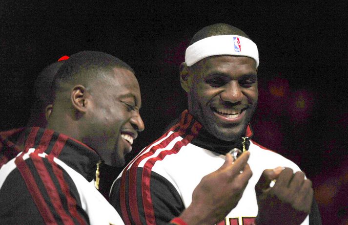LeBron fékk loksins hringinn sinn - myndir Óskar Ófeigur Jónsson skrifar 31. október 2012 09:15 LeBron James með hringinn sinn. Mynd/Nordic Photos/Getty LeBron James og félagar í Miami Heat hófu titilvörnina í NBA-deildinni með sigri á Boston í nótt en fyrir leikinn fengu þeir meistarahringana afhenta. James var búinn að bíða í níu ár eftir því að fá hringinn sinn og stundin rann loksins upp í nótt. Hringarnir voru glæsilegir. Á þeim stóð með annars bæði "All In" eða "Allir saman" og "Family" eða "Ein fjölskylda" en auk þess voru myndir af Larry O'Brien bikarnum. Ljósmyndarar á vegum Getty-myndabankans voru að sjálfsögðu á staðnum og þeir náðu þessum skemmtilegu myndum. Myndirnar má sjá í albúminu hér að neðan. Hægt er að sjá myndirnar stærri með því að smella á þær. NBA Mest lesið Grafalvarleg staða: „Þurfum að fara í sársaukafullar aðgerðir“ Handbolti Ógeðslega erfitt og ógeðslega vont en brosir oft í viku á eftir Sport Fram þvertekur fyrir metnaðarleysi og leitar að nýjum þjálfurum Íslenski boltinn „Nú er nóg komið“ Fótbolti Skortir Liverpool breidd þrátt fyrir gríðarleg fjárútlát síðasta sumar? Enski boltinn Nefna greinar Íslandsmótsins í CrossFit í höfuðið á íslenskum íþróttakonum Sport Arnór Snær snýr aftur heim Handbolti Besta handboltadeild heims missir aðalstyrktaraðila sinn Handbolti Sádar eru ekki að fara að byggja HM-leikvang ofan á skýjakljúfi Fótbolti Eldgos og brjósklos skapa óvissu: „Vonum bara að móðir náttúra leyfi þetta“ Sport Fleiri fréttir Íslenski körfuboltinn og Grindavík verðlaunuð NBA-leikmaður með krabbamein Haukur Helgi: Höfum ekki verið að spila góðan körfubolta „Getum verið fjandi góðir“ Uppgjörið: Álftanes-Njarðvík 93-92 | Heitur Haukur var hetjan á Álftanesinu Uppgjörið: Keflavík - Þór Þ. 86-82 | Þarf ekki alltaf að vera fallegt ef það virkar „Varnarleikur snýst eiginlega bara um að nenna“ Uppgjörið: Valur - Grindavík 55-90 | Taplausir Grindvíkingar kjöldrógu Val „Búnir að sýna hvað við getum verið lélegir“ KR - ÍA 109-75 | KR-ingar sýndu allar sínar bestu hliðar þegar þeir burstuðu Skagamenn Íslandsmeistararnir frá því fyrir sextíu árum heiðursgestir í kvöld „Hann ætti bara að skrifa afsökunarbiblíuna“ Uppgjörið: Njarðvík - Grindavík 85-84| Njarðvík fyrstar til að leggja Grindavík af velli Ótrúleg dramatík í Garðabæ og á Sauðárkróki Landsliðsmennirnir öflugir í Evrópu Jordan gagnrýnir álagsstjórnun í NBA: Þú hefur skyldu til að láta sjá þig Skiptiborð hjá stelpunum í kvöld Var með skattinn á hælunum þegar hann fór í veðmálabraskið Bíll Shaquille O'Neal enn ófundinn Martin öflugur í góðum sigri Öllum leikjum Bónus-deildar kvenna í kvöld frestað Stólarnir ekki í vandræðum á Egilsstöðum Enginn Lakers-maður hafði náð þessu í meira en 52 ár Veðmál rædd í Körfuboltakvöldi: „Bara ævintýralega heimskulegt“ Kvöddu húsið og Nablinn klifraði í kveðjuskyni Martin naut sín í fræknum sigri á meisturum Bayern Tryggvi lykilmaður í sigri Bilbao Elvar skoraði tólf í naumu tapi Tilþrifin: Varin skot og ótrúlegar körfur Valsmanna Þriðja tapið í röð hjá Jóni og félögum Sjá meira