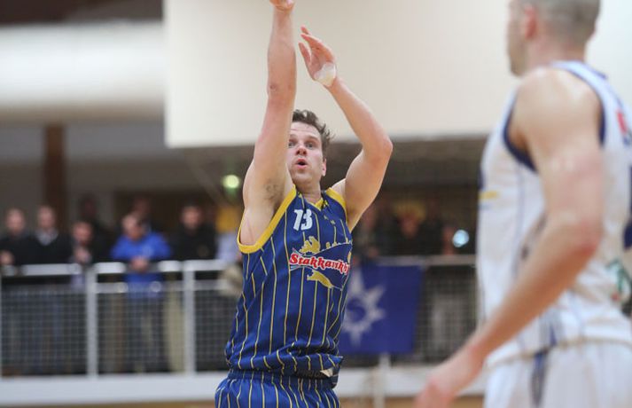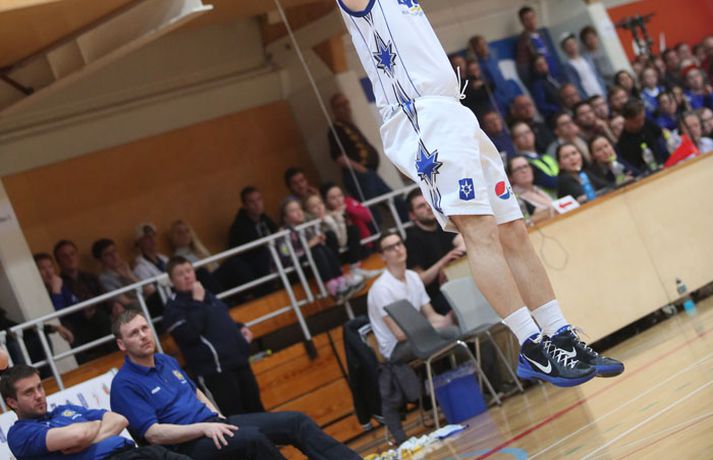Umfjöllun, viðtöl og myndir: Stjarnan - Grindavík 93-56 | Stjarnan slátraði meisturunum Jón Júlíus Karlsson í Ásgarði skrifar 19. apríl 2013 10:29 Mynd/Vilhelm Stjarnan jafnaði metin gegn Grindavík í einvíginu um Íslandsmeistaratitilinn í Domino's deild karla í körfuknattleik eftir stórsigur í Ásgarði í kvöld, 93-56. Staðan er nú 1-1 í einvígi liðana. Stjörnumenn byrjuðu leikinn betur og komust í 5-0. Fannar Helgason setti tóninn og hóf leikinn með flottum þrist. Stjörnumenn náðu yfirhöndinni og höfðu forystuna allan fyrsta leikhluta. Sigurður Þorsteinsson hjá Grindavík lenti snemma í villuvandræðum og fékk sína þriðju villu um miðjan fyrsta leikhluta. Hann var því tekinn útaf. Stjörnumenn yfir eftir fyrsta leikhluta, 23-18. Heimamenn tók öll völd í öðrum leikhluta. Liðið fór illa með gestina trekk í trekk og náðu með góðum varnarleik og öguðum sóknarleik góðri forystu. Grindvíkingar áttu í miklum erfiðleikum í sóknarleiknum og ekki batnaði ástandið þegar Sigurður Þorsteinsson nældi sér í sína fjórðu villu eftir um 15 mínútna leik. Samuel Zeglinski hélt Grindavík hreinlega inni í leiknum með tveimur þristum í röð um miðjan leikhlutann. Stjörnumenn yfir 49-34 í hálfleik. Ef Grindavík ætlaði að eiga möguleika á sigri í þessum leik þá þurftu þeir að svara fyrir sig í þriðja leikhluta. Því miður fyrir Grindvíkinga þá gerðu þeir það ekki. Sóknarleikurinn var ennþá slakur og Stjörnumenn virtust hitta úr nánast öllum skotum. Stjörnumenn skildu Grindvíkinga hreinlega eftir og staðan fyrir lokaleikhlutann, 75-48. Grindvíkingar voru hreint út sagt átakanlega lélegir í þessum leik. Það tók þá rúmar sjö mínútur að komast á blað í fjórða leikhluta og það gerði Jón Axel Guðmundsson. Stjörnumenn leyfðu varamönnunum sínum að spila síðustu mínúturnar í leiknum og þrátt fyrir það gekk ekkert hjá Grindvíkingum. Lokaúrslit 91-56. Körfuboltans vegna þá skulum við vona að Grindvíkingar mæti til leiks í næsta leik enda var frammistaða liðsins í kvöld vandræðaleg. Stjörnumenn geta verið gríðarlega sáttir með sína menn. Þeir léku frábærlega og hreinlega völtuðu yfir ríkjandi Íslandsmeistara. Stemmningin í Ásgarði frábær og heimamenn auðvitað kátir með frammistöðu sinna manna. Vonandi verður þó meiri spenna í þriðja leik liðana næstkomandi mánudag.Teitur Örlygs.: Látum þennan sigur ekki stíga okkur til höfuðs „Ég er gríðarlega sáttur. Einbeitingin hjá mínum mönnum var algjörlega til fyrirmyndar og það sést á tölfræðinni að við fáum mjög gott framlag frá hverjum einasta leikmanni,“ segir Teitur Örlygsson, þjálfari Stjörnunnar, eftir frækinn sigur sinna manna gegn Grindavík í kvöld. „Öll fríu skotin sem Grindavík fékk að taka í síðasta leik sáust ekki í kvöld. Við vörðumst frábærlega. Þeir tóku mörg erfið skot og við vorum að frákasta vel. Okkar leikur var mjög jafn í kvöld. Nú er staðan 1-1. Í seríunni gegn Snæfelli þá byrjaði þetta svona en svo fórum við í Stykkishólm og unnum. Við ætlum að gera það sama á mánudag.“ Teitur segir það litlu skipta að hafa unnið leikinn jafn sannfærandi og raunin varð í kvöld. „Það gefur okkur ekkert að vinna leikinn svona afgerandi og það getur virkað akkúrat öfugt á menn þegar of stórir sigrar vinnast. Við gerum okkur grein fyrir því, ég er með gamalt og reynslumikið lið. Við látum þennan sigur ekki stíga okkur til höfuðs. Við ætlum að taka það besta úr þessum leik og flytja það með okkur í næsta leik,“ segir Teitur átti þó ekki von á því að vinna svona stórt í kvöld. „Grindvíkingar gáfu þennan leik frá sér, frekar snemma. Munurinn var svona stór því við vorum að spila mjög vel. Um leið og annað liðið slakar á þá er kominn 20-30 stiga munur. Menn verða að halda einbeitingu. Það var frábær stemmning í húsinu og það væri gaman að sjá enn fleiri bláa í næsta heimaleik.“Sverrir Þór: Okkur var pakkað saman „Mér líður auðvitað ekki vel eftir þennan leik. Okkur var pakkað saman,“ segir Sverrir Þór Sverrisson, þjálfari Grindavíkur eftir tapið í leiknum í kvöld. „Við ætluðum okkur miklu meira í þessum leik en það sem við sýndum í kvöld. Við vorum aldrei klárir í þennan leik. Ég get ekki komið því í orð hvað gerðist eiginlega. Ef ég vissi það þá hefði ég kippt því í lag í sjálfum leiknum. Við vorum mjög slakir varnarlega, leyfðum þeim að bakka langt inn í teig og gáfum þeim auðveld skot. Við hittum hreinlega ekki neitt – hvort sem við vorum aleinir undir körfunni eða vítalínunni. Það fór ekkert niður. Lið vinna ekki leik þegar allt er í ólagi.“ Það sem kannski kristallar hve dapur leikur Grindavíkur var í kvöld var að liðið skoraði ekki stig í fjórða leikhluta fyrr en eftir rúmar sex mínútur. „Það er auðvitað hrikalega dapurt. Leikurinn var reyndar tapaður á því augnabliki og hausinn á mönnum líklega endanlega farinn.“ Næsti leikur þessara liða er á mánudag sem gefur Grindvíkingum helgina til að jafna sig eftir brotlendinguna í kvöld. „Ég hef ekki trú á öðru en að mínir menn vilji sýna úr hverju þeir eru gerðir og við getum gert það í þriðja leik á mánudag.“Jarrid Frye: Vildum gera þeim lífið leitt „Í úrslitakeppni þá vill maður nýta heimavöllinn og við gerðum það í kvöld. Við gáum okkur tækifæri á að vinna titilinn,“ sagði Jarrid Fyre eftir sigur Stjörnunnar í kvöld. Frye átti fínan leik hjá Stjörnunni og skoraði 15 stig en hann fékk góða hvíld í kvöld og lék aðeins tæpar 27 mínútur. „Þegar við leikum fast og af krafti þá geta góðir hlutir gerst. Við vildum gera þeim l