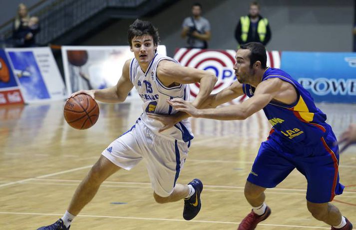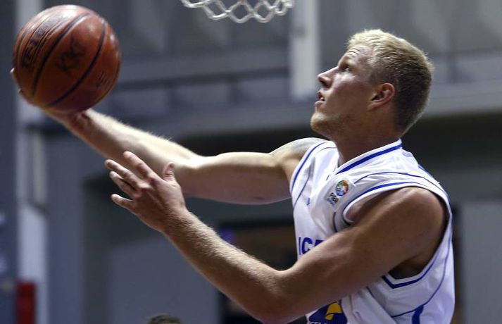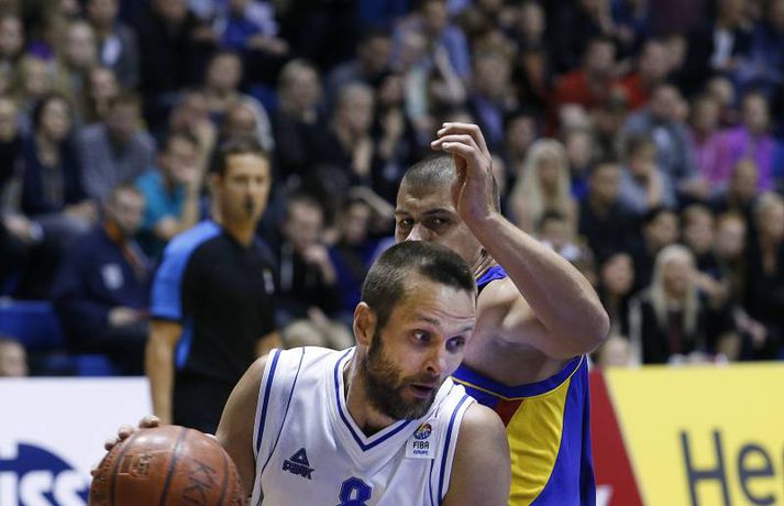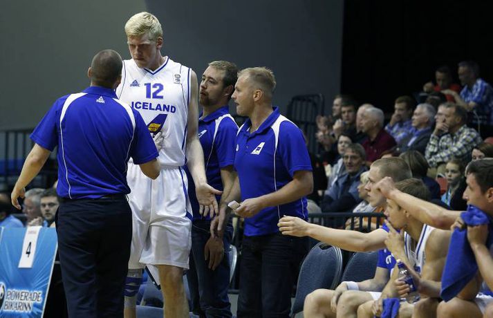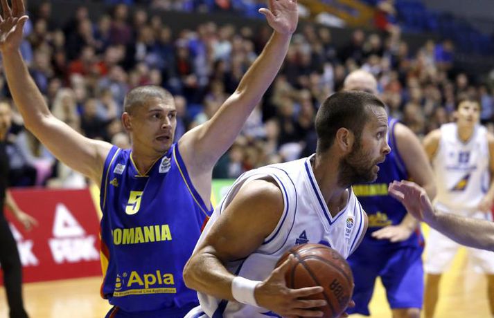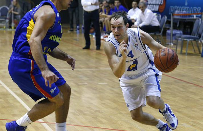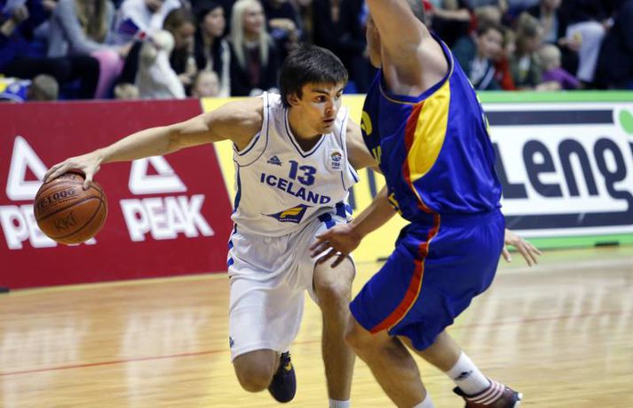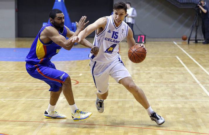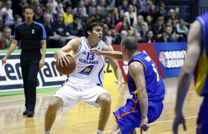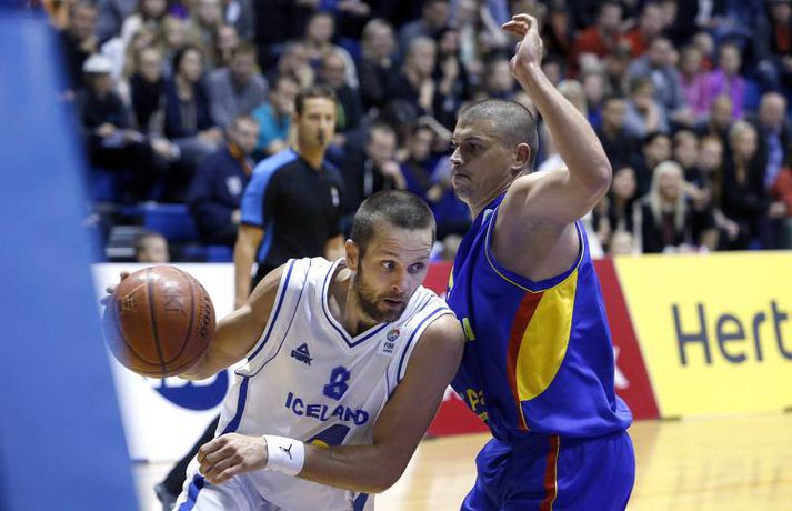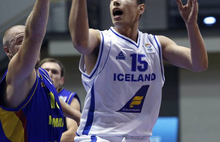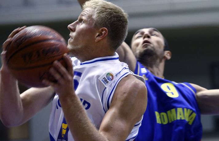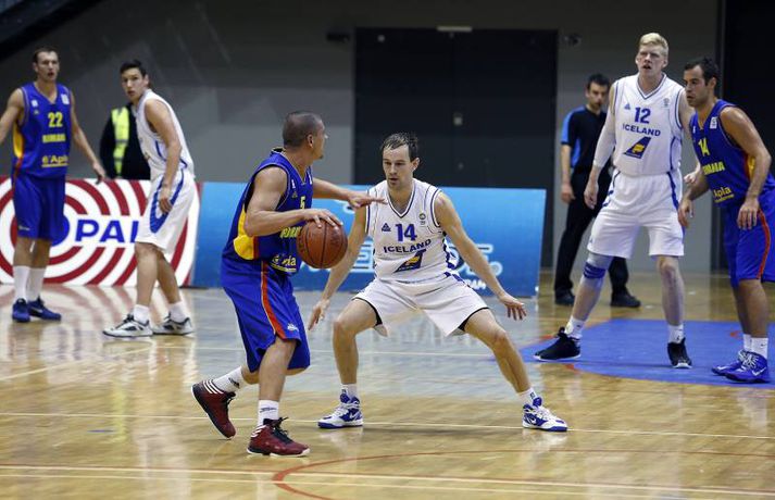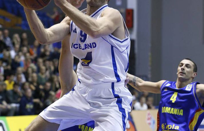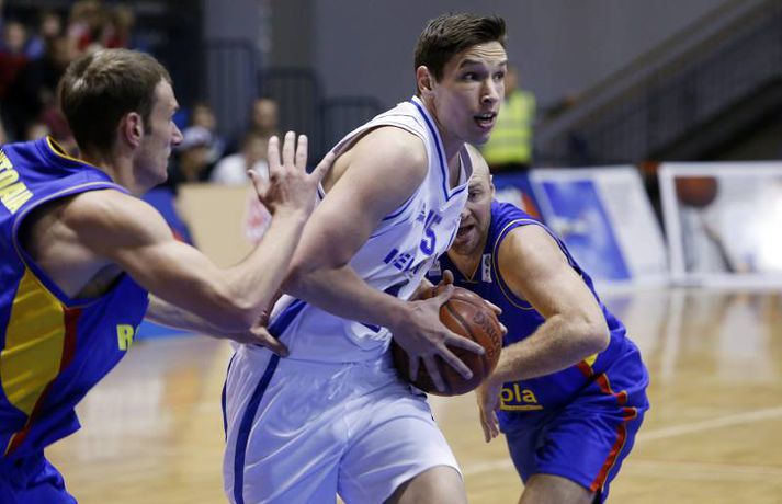 Umfjöllun, viðtöl og myndir: Ísland - Rúmenía 77-71 Guðmundur Marinó Ingvarsson í Laugardalshöllinni skrifar 16. ágúst 2013 11:07 Mynd/Daníel Ísland sigraði Rúmeníu 77-71 og tryggði sér annað sæti A-riðils í undankeppni Evrópumeistaramótsins í körfubolta 2015. Ísland var yfir allan leikinn þó Rúmenía hafi aldrei verið langt undan en staðan í hálfleik var 40-36. Ísland byrjaði leikinn frábærlega og var níu stigum yfir eftir fyrsta leikhluta 22-13. Það var mikill kraftur í íslenska liðinu og virtist vera mikið sjálfstraust í liðinu eftir frábæran leik gegn Búlgaríu á þriðjudaginn. Rúmenía sýndi þó að það er ekki tilviljun að liðið náði að leggja Búlgaríu að velli fyrr í undankeppninni. Liðið vann sig fljótt inn í leikinn og náði að jafna metin en komst aldrei yfir. Ísland var alltaf yfir fyrir utan þau fáu skipti sem Rúmenía náði að jafna. Þó var alltaf mikil spenna í leiknum en aðeins einu stigi munaði þegar einn leikhluti var eftir af leiknum, 61-60. Rúmenía skoraði fyrsta stig fjórða leikhluta en náði ekki að nýta vítið sem liðið fékk til að komast yfir í fyrsta sinn í leiknum. Ísland refsaði það og var staðan aldrei aftur jöfn í leiknum þó Rúmenía hafi nokkrum sinnum minnkað muninn í eitt stig. Íslenska liðið lék frábæra vörn í fjórða leikhluta og vann að lokum sex stiga sigur en þetta var fyrsti sigur Ísland í Laugardalshöll síðan 2008. Jakob Sigurðarson átti frábæran leik en hann skoraði 23 stig. Haukur Helgi Pálsson var einnig frábær en hann skoraði 14 stig, tók 5 fráköst og gaf 5 stoðsendingar auk þess að leika frábærlega í vörninni. Jón Arnór Stefánsson átti í villu vandræðum í fyrri hálfleik en skoraði 11 stig og var virkilega öflugur í fjórða leikhluta. Pavel Ermolinskij skoraði 9 stig og tók 9 fráköst og Hlynur Bæringsson skoraði 7 stig og hirti 13 fráköst en eitt þeirra var sóknarfrákast eftir að Pavel hitti ekki úr vítaskot þegar 20 sekúndur voru eftir. Segja má að það hafi endanlega gert út um leikinn. Peter: Skiptir mestu máli að vinna fyrir framan fólkið„Maður er alltaf glaður þegar maður vinnur landsleik. Að vinna hér heima fyrir framan okkar áhorfendur er frábært,“ sagði Peter Öqvist þjálfari Íslands. „Það skipti strákana mestu máli að vinna fyrir framan okkar áhorfendur hér heima. Við vitum líka að það skiptir máli að fara ofar á styrkleikalista alþjóða körfuknattleikssambandsins. „Í fyrra byrjuðum við á botninum þar sem Ísland lék ekki árin á undan. Við settum nokkur lið aftur fyrir okkur þá og svo endurtókum við leikinn í ár. Ef Ísland nær að halda þessu striki þá er það leiðin til góðs árangurs. Ég er ánægður með að ná þessum sigri og öðru sæti riðilsins. „Við byrjðum mjög vel og náðum góðu forskoti. Svo fannst mér Rúmenía leika góða vörn og hindraði hlaupin okkar upp að körfunni og hraðaupphlaup okkar. Við skutum ekki eins vel og við getum og það skrifast bæði á okkur og vörn Rúmeníu,“ sagði Peter en Ísland hitti aðeins úr 3 af 21 þriggja stiga skoti sínu í leiknum og alls 23 af 56 skota sinna utan af velli. „Það er styrkleikamerki fyrir Ísland að vinna þegar liði skýtur illa. Það er mikil framför. „Við tökum þetta ár fyrir ár. Ég þarf tíma til að skoða stöðuna eftir þetta sumar. Ég hef notið mín mikils sem þjálfari Íslands. Ég er mjög ánægður með hvað körfuknattleikssambandið er að gera. Hvað allir í kringum körfuboltann eru að gera. Íslensk menning og landið er fallegt. „Leikmenn liðsins er mjög faglegir og reyna allt hvað þeir geta. Þetta er frábær hópur að vinna með en við verðum að sjá til með hvað framtíðin ber í skauti sér. „Það er frábær hvernig ungu mennirnir komu inn í hópinn (Martin Hermannsson, Ragnar Nathanaelsson og Stefán Karl Torfason). Það eru fleiri ungir strákar á leiðinni og svo aðrir eldri leikmenn líka sem eiga erindi í hópinn. Framtíðin lítur vel út fyrir Ísland.“ Jakob: Erum á réttri leið„Leikurinn var ekki okkar besti en við náðum að klára þetta í lokin. En mér fannst við samt alltaf hafa yfirhönd í leiknum. Það var eftir góða byrjun,“ sagði Jakob Sigurðarson sem fór mikinn fyrir Ísland í kvöld gegn Rúmeníu. „Við misstum þá aldrei fram úr okkur. Þeir náðu aldrei forskotinu og stjórn á leiknum. Þetta var jafnt en mér fannst við alltaf stjórn og þeir að elta okkur. Það var sterkt hjá okkur finna leið til að halda þeim fyrir aftan okkur. „Við náðum að berja okkur saman og finna leiðir til að skora og finna leiðir til að stoppa þá þegar þeir áttu góða spretti,“ sagði Jakob sem er ekki búinn að jafna sig eftir tapið gegn Búlgaríu á þriðjudaginn. „Það var rosalega svekkjandi og maður er ekki búinn að ná sér eftir það. Þegar maður spilar þennan leik og eftir leikinn þá fann maður að það var svo rosalega mikil stemning í Höllinni og hjá áhorfendum. Þeir lifðu sig svo mikið inn í þetta. Það var svo gott andrúmsloft sem hefur stundum ekki verið hérna áður. Það hjálpaði manni og kveikja í manni að reyna að halda því áfram. Að gefa áhorfendum góðan leik og enda þetta á góðum leik. „Allt sumarið hefur verið gott hjá okkur. Við höfum átt einn slakan leik, gegn Búlgaríu úti. Fyrir utan það hefur þetta verið mjög gott framhald frá því í fyrra. Við erum búnir að taka næsta skref og erum komnir á betra stig körfuboltalega séð. Þetta er jákvætt og nú þurfum við bara að halda áfram og bæta okkur enn frekar. „Þetta er erfitt ferli. Við tókum pásu og þegar við byrjum aftur þá erum við alveg á botninum. Það tekur tíma að vinna sig aftur upp og við erum á réttri leið,