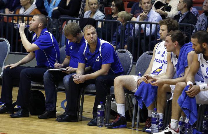 Ísland sigraði Rúmeníu 77-71 og tryggði sér annað sæti A-riðils í undankeppni Evrópumeistaramótsins í körfubolta 2015. Ísland var yfir allan leikinn þó Rúmenía hafi aldrei verið langt undan en staðan í hálfleik var 40-36. Ísland byrjaði leikinn frábærlega og var níu stigum yfir eftir fyrsta leikhluta 22-13. Það var mikill kraftur í íslenska liðinu og virtist vera mikið sjálfstraust í liðinu eftir frábæran leik gegn Búlgaríu á þriðjudaginn. Rúmenía sýndi þó að það er ekki tilviljun að liðið náði að leggja Búlgaríu að velli fyrr í undankeppninni. Liðið vann sig fljótt inn í leikinn og náði að jafna metin en komst aldrei yfir. Ísland var alltaf yfir fyrir utan þau fáu skipti sem Rúmenía náði að jafna. Þó var alltaf mikil spenna í leiknum en aðeins einu stigi munaði þegar einn leikhluti var eftir af leiknum, 61-60. Rúmenía skoraði fyrsta stig fjórða leikhluta en náði ekki að nýta vítið sem liðið fékk til að komast yfir í fyrsta sinn í leiknum. Ísland refsaði það og var staðan aldrei aftur jöfn í leiknum þó Rúmenía hafi nokkrum sinnum minnkað muninn í eitt stig. Íslenska liðið lék frábæra vörn í fjórða leikhluta og vann að lokum sex stiga sigur en þetta var fyrsti sigur Ísland í Laugardalshöll síðan 2008. Jakob Sigurðarson átti frábæran leik en hann skoraði 23 stig. Haukur Helgi Pálsson var einnig frábær en hann skoraði 14 stig, tók 5 fráköst og gaf 5 stoðsendingar auk þess að leika frábærlega í vörninni. Jón Arnór Stefánsson átti í villu vandræðum í fyrri hálfleik en skoraði 11 stig og var virkilega öflugur í fjórða leikhluta. Pavel Ermolinskij skoraði 9 stig og tók 9 fráköst og Hlynur Bæringsson skoraði 7 stig og hirti 13 fráköst en eitt þeirra var sóknarfrákast eftir að Pavel hitti ekki úr vítaskot þegar 20 sekúndur voru eftir. Segja má að það hafi endanlega gert út um leikinn. Peter: Skiptir mestu máli að vinna fyrir framan fólkið„Maður er alltaf glaður þegar maður vinnur landsleik. Að vinna hér heima fyrir framan okkar áhorfendur er frábært,“ sagði Peter Öqvist þjálfari Íslands. „Það skipti strákana mestu máli að vinna fyrir framan okkar áhorfendur hér heima. Við vitum líka að það skiptir máli að fara ofar á styrkleikalista alþjóða körfuknattleikssambandsins. „Í fyrra byrjuðum við á botninum þar sem Ísland lék ekki árin á undan. Við settum nokkur lið aftur fyrir okkur þá og svo endurtókum við leikinn í ár. Ef Ísland nær að halda þessu striki þá er það leiðin til góðs árangurs. Ég er ánægður með að ná þessum sigri og öðru sæti riðilsins. „Við byrjðum mjög vel og náðum góðu forskoti. Svo fannst mér Rúmenía leika góða vörn og hindraði hlaupin okkar upp að körfunni og hraðaupphlaup okkar. Við skutum ekki eins vel og við getum og það skrifast bæði á okkur og vörn Rúmeníu,“ sagði Peter en Ísland hitti aðeins úr 3 af 21 þriggja stiga skoti sínu í leiknum og alls 23 af 56 skota sinna utan af velli. „Það er styrkleikamerki fyrir Ísland að vinna þegar liði skýtur illa. Það er mikil framför. „Við tökum þetta ár fyrir ár. Ég þarf tíma til að skoða stöðuna eftir þetta sumar. Ég hef notið mín mikils sem þjálfari Íslands. Ég er mjög ánægður með hvað körfuknattleikssambandið er að gera. Hvað allir í kringum körfuboltann eru að gera. Íslensk menning og landið er fallegt. „Leikmenn liðsins er mjög faglegir og reyna allt hvað þeir geta. Þetta er frábær hópur að vinna með en við verðum að sjá til með hvað framtíðin ber í skauti sér. „Það er frábær hvernig ungu mennirnir komu inn í hópinn (Martin Hermannsson, Ragnar Nathanaelsson og Stefán Karl Torfason). Það eru fleiri ungir strákar á leiðinni og svo aðrir eldri leikmenn líka sem eiga erindi í hópinn. Framtíðin lítur vel út fyrir Ísland.“ Jakob: Erum á réttri leið„Leikurinn var ekki okkar besti en við náðum að klára þetta í lokin. En mér fannst við samt alltaf hafa yfirhönd í leiknum. Það var eftir góða byrjun,“ sagði Jakob Sigurðarson sem fór mikinn fyrir Ísland í kvöld gegn Rúmeníu. „Við misstum þá aldrei fram úr okkur. Þeir náðu aldrei forskotinu og stjórn á leiknum. Þetta var jafnt en mér fannst við alltaf stjórn og þeir að elta okkur. Það var sterkt hjá okkur finna leið til að halda þeim fyrir aftan okkur. „Við náðum að berja okkur saman og finna leiðir til að skora og finna leiðir til að stoppa þá þegar þeir áttu góða spretti,“ sagði Jakob sem er ekki búinn að jafna sig eftir tapið gegn Búlgaríu á þriðjudaginn. „Það var rosalega svekkjandi og maður er ekki búinn að ná sér eftir það. Þegar maður spilar þennan leik og eftir leikinn þá fann maður að það var svo rosalega mikil stemning í Höllinni og hjá áhorfendum. Þeir lifðu sig svo mikið inn í þetta. Það var svo gott andrúmsloft sem hefur stundum ekki verið hérna áður. Það hjálpaði manni og kveikja í manni að reyna að halda því áfram. Að gefa áhorfendum góðan leik og enda þetta á góðum leik. „Allt sumarið hefur verið gott hjá okkur. Við höfum átt einn slakan leik, gegn Búlgaríu úti. Fyrir utan það hefur þetta verið mjög gott framhald frá því í fyrra. Við erum búnir að taka næsta skref og erum komnir á betra stig körfuboltalega séð. Þetta er jákvætt og nú þurfum við bara að halda áfram og bæta okkur enn frekar. „Þetta er erfitt ferli. Við tókum pásu og þegar við byrjum aftur þá erum við alveg á botninum. Það tekur tíma að vinna sig aftur upp og við erum á réttri leið,“ sagði Jakob. Haukur: Gott að vinna báða leikina gegn þeim„Þetta var mjög flottur sigur. Það er flott að við náðum að halda þessu forsk