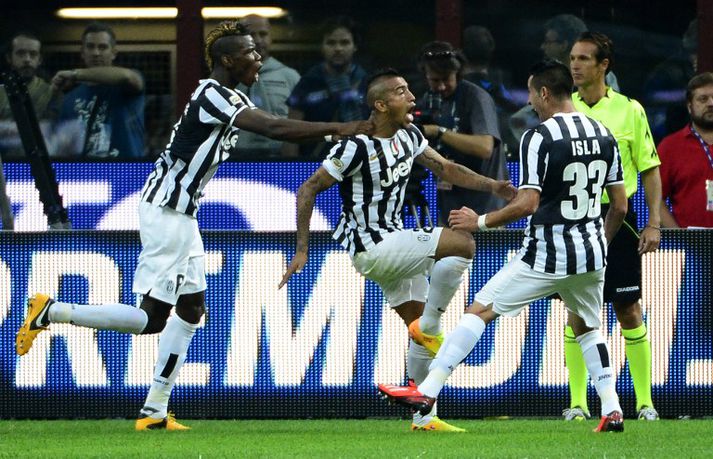 Vidal kom Juventus til bjargar gegn Inter Kolbeinn Tumi Daðason skrifar 14. september 2013 18:04 Arturo Vidal fagnar marki sínu í kvöld. Nordicphotos/AFP Arturo Vidal skoraði jöfnunarmark Juventus í heimsókn sem kíkti í heimsókn til Inter á San Siro í Mílanó í dag. Liðin höfðu bæði unnið báða leiki sína í deildinni til þessa. Mauro Icardi kom heimamönnum yfir með marki á 73. mínútu en stuðningsmenn Inter fengu ekki langan tíma til að fagna forystunni. Vidal jafnaði metin aðeins tveimur mínútum síðar með sínu þriðja marki í jafnmörgum deildarleikjum. Chilemaðurinn var sömuleiðis á skotskónum með landsliði sínu í landsleikjahlénu og er í fantaformi. Stórliðin hafa nú sjö stig eftir þrjá leiki. Napólí, Roma og Fiorentina hafa sex stig eftir tvo leiki en eiga ekki leik fyrr en á morgun. Ítalski boltinn Mest lesið Áfallið staðreynd og Isak búinn í aðgerð Enski boltinn Einn leikmaður með samning og völlurinn ólöglegur Fótbolti Vildi tapa legg: „Mesti hávaði sem ég hef heyrt“ Sport Salah færði Egyptum draumabyrjun Fótbolti Hættur aðeins þrítugur Golf Steraleikarnir segi ungu fólki að það sé aldrei nógu fullkomið Sport Körfuboltakvöld: Tilþrif tímabilsins til þessa Körfubolti Afkáralegt fagn hjá hetju Sambíu Fótbolti Sagði látna systur sína hafa tryggt sigurinn ótrúlega Sport Aron Einar lagði upp dýrmætt sigurmark Fótbolti Fleiri fréttir Einn leikmaður með samning og völlurinn ólöglegur Salah færði Egyptum draumabyrjun Fulham skildi Forest eftir við fallsvæðið Áfallið staðreynd og Isak búinn í aðgerð Neres hetja Napoli í Sádi-Arabíu Aron Einar lagði upp dýrmætt sigurmark Afkáralegt fagn hjá hetju Sambíu Glódís Perla veik í jólafríið en enn taplaus Glódís og Hákon best í fótboltanum á árinu Frelsaði fjárfestirinn Dani Alves gefur sjálfum sér samning Fagnaði titli Liverpool sem óður maður um alla borg Mbappé breytti um fagn af góðu tilefni „Allir virðast elska hann“ Meira en 37 stöðugildi hjá Knattspyrnusambandi Íslands Táningur fær mikið hrós fyrir viðbrögð sín þegar mótherji missti meðvitund „Þetta mun ekki buga okkur“ Guardiola mun vigta leikmenn Man City eftir jólin „Ef þið væruð Antoine Semenyo, hvert mynduð þið fara?“ Freyr himinlifandi með íslensku strákana Sjáðu geggjaðan snúning Alberts áður en hann skoraði frábært mark Óskar Hrafn um komu Arnórs Ingva: „Gífurlega dýrmætt fyrir KR“ Áhorfendur ærðust eftir mögulega mark mótsins í fyrsta leik Sjáðu mörkin: Rogers sá um Manchester United Hleður Kjartan lofi eftir frábæra frumraun með Aberdeen Óttast að Isak hafi fótbrotnað Túfa gerir þriggja ára samning í Svíþjóð Arnór Ingvi orðinn leikmaður KR Albert skoraði í fyrsta sigri Fiorentina Bæjarar aftur á sigurbraut Tvenna frá Rogers tryggði Villa sigur gegn Manchester United Sjá meira