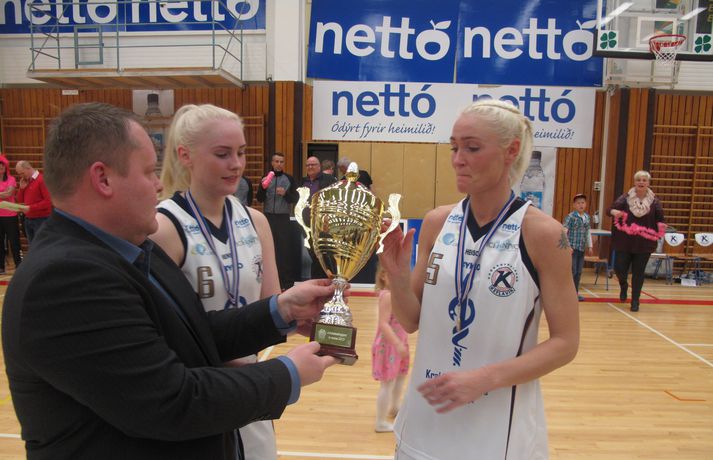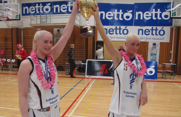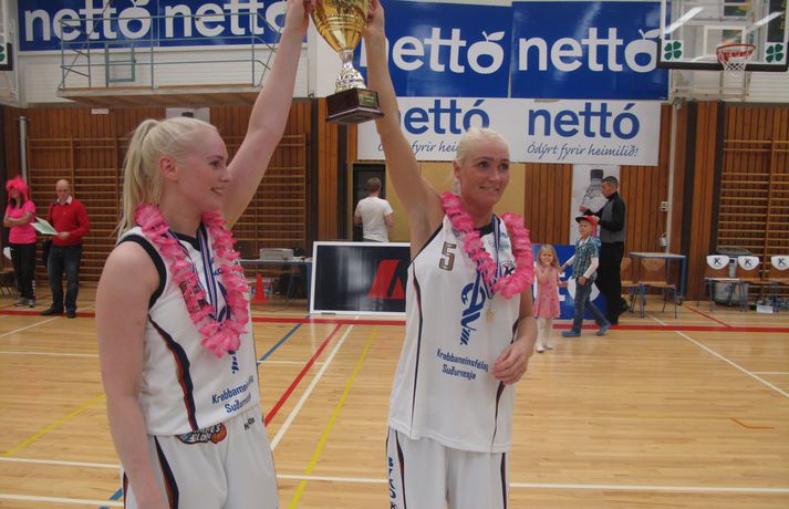 Enginn bleikur meistari í ár Guðmundur Marinó Ingvarsson skrifar 6. október 2013 20:56 Bryndís Guðmundsdóttir og Birna Valgarðsdóttir smelltu kossi á bikarinn í leikslok. Mynd/ÓskarÓ Íslandsmeistarar Keflavíkur unnu Val í meistara meistaranna kvenna í körfubolta í kvöld 77-74 í hnífjöfnum og spennandi leik sem liðin skiptust á að leiða. Leikurinn var í járnum allan leikinn. Valur var einu stigi yfir eftir fyrsta leikhluta 19-18 og Keflavík einu stigi yfir í hálfleik 43-42. Valur var aftur komið yfir áður en fjórði leikhluti hófst en Valur var þá fjórum stigum yfir, 64-60. Fjórði leikhluti var eins og leikurinn fram að því, í járnum og spennan alls ráðandi. Lítið fór fyrir sóknarleik liðanna og þá hrundi sóknarleikur Vals algjörlega. Valur skoraði aðeins tíu stig í fjórða leikhluta og þarf helming þeirra á síðustu 30 sekúndunum og það nýtti Keflavík sér og vann þriggja stiga sigur 77-74. Porsche Landry var stigahæst hjá Keflavík með 18 stig og Sara Rún Hinriksdóttir skoraði 14 auk þess að hirða 7 fráköst. Bryndís Guðmundsdóttir fór á kostum í lokafjórðungnum og skoraði átta af tólf stigum sínum í honum. Kristrún Sigurjónsdóttir var stigahæst hjá Val með 20 stig. Jaleesa Butler skoraði 9 stig auk þess að hirða 18 fráköst og gefa 6 stoðsendingar. Valskonur klæddust bleikum búningum sínum í tilefni bleiku slaufunnar. Það munu þær gera út mánuðinn. Bikarinn varð hins vegar ekki bleikur í þetta skiptið.Tölfræði leiksinsKeflavík-Valur 77-74 (18-19, 25-23, 17-22, 17-10)Keflavík: Porsche Landry 18/6 fráköst, Sara Rún Hinriksdóttir 14/7 fráköst, Bryndís Guðmundsdóttir 12/5 fráköst, Birna Ingibjörg Valgarðsdóttir 11/6 fráköst, Bríet Sif Hinriksdóttir 10, Lovísa Falsdóttir 6, Sandra Lind Þrastardóttir 3, Ingunn Embla Kristínardóttir 3Valur: Kristrún Sigurjónsdóttir 20, Unnur Lára Ásgeirsdóttir 10, Jaleesa Butler 9/18 fráköst/6 stoðsendingar, Þórunn Bjarnadóttir 8/4 fráköst, Ragna Margrét Brynjarsdóttir 8/6 fráköst, Guðbjörg Sverrisdóttir 8/6 stoðsendingar, Hallveig Jónsdóttir 5, Ragnheiður Benónísdóttir 4, María Björnsdóttir 2. Íslenski körfuboltinn Mest lesið Vonast til að komast í Kórinn: „Menn hafa aldrei séð annað eins“ Fótbolti Landsleiknum aflýst og framhaldið óljóst Fótbolti Fær þrjár milljónir á dag næstu sex árin fyrir að gera ekkert Sport Stöðufundur í Laugardal klukkan 10:30 Fótbolti Enska úrvalsdeildin í jólaköttinn Enski boltinn Elsta konan til klára Járnkarlinn Sport Landsliðskonur aðstoðuðu ökumenn í vanda Fótbolti Markvörður Inter banaði háöldruðum manni í hjólastól Sport Birnir frá Akureyri í Garðabæ Íslenski boltinn Segir að Slot verði að taka tvo leikmenn út úr Liverpool-liðinu Enski boltinn Fleiri fréttir Öllum leikjum Bónus-deildar kvenna í kvöld frestað Stólarnir ekki í vandræðum á Egilsstöðum Enginn Lakers-maður hafði náð þessu í meira en 52 ár Veðmál rædd í Körfuboltakvöldi: „Bara ævintýralega heimskulegt“ Kvöddu húsið og Nablinn klifraði í kveðjuskyni Martin naut sín í fræknum sigri á meisturum Bayern Tryggvi lykilmaður í sigri Bilbao Elvar skoraði tólf í naumu tapi Tilþrifin: Varin skot og ótrúlegar körfur Valsmanna Þriðja tapið í röð hjá Jóni og félögum Fáránlegt eða klókt hjá Kristófer? „Ef það má þá gerir fólk það“ Brassi tekur við af Billups „Það er æðislegt að kveðja húsið svona“ Uppgjörið: ÍA - Álftanes 76-74 | ÍA kvaddi Vesturgötuna með stæl Uppgjörið: Stjarnan - ÍR 91-93 | ÍR skellti meisturunum „Ekki æskilegt og ekki það sem körfuboltinn vill standa fyrir“ Nær fimmtán árum og ætlar með Ísland á HM Stjórnarmaður KKÍ auglýsir ólöglega veðmálastarfsemi Handtökur í NBA: Lak upplýsingum um meiðsli James og bað um bita af kökunni Mál Kristófers enn til skoðunar og fleiri komin á borð KKÍ Uppgjörið: Ármann-Keflavík 94-107 | Öruggt hjá Keflvíkingum Daníel: Ég fór í smá ævintýra starfsemi Uppgjörið: Þór Þ. - Valur 117-119 | Vals sigur eftir tvær framlengingar Uppgjörið: Njarðvík-Tindastóll 98-90 | Njarðvíkingar skelltu Stólunum Átti sumar engu öðru líkt „Ég held að bæði lið séu ekkert himinlifandi með sína frammistöðu“ Uppgjörið: Grindavík-KR 78-77 | Arnór Tristan með sigurkörfuna Þjálfari og leikmaður í NBA handteknir Sá eftirsóttasti treystir bara á pabba gamla Þrenna Maddie Sutton dugði ekki á Hlíðarenda Sjá meira