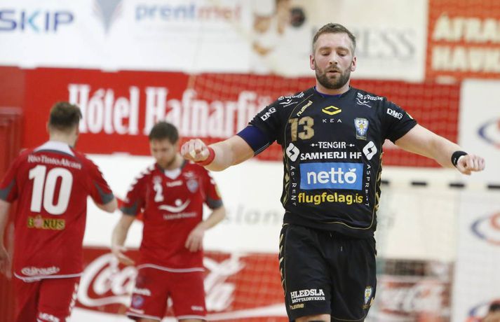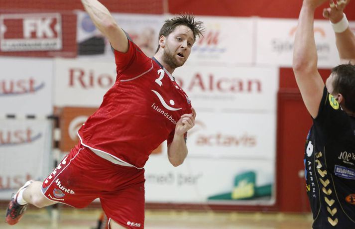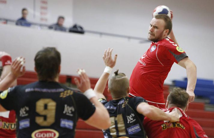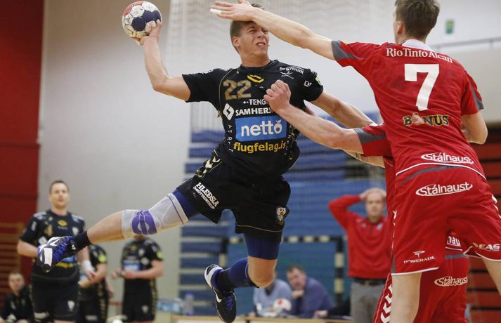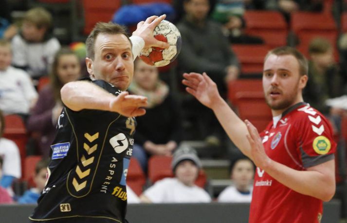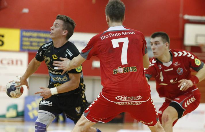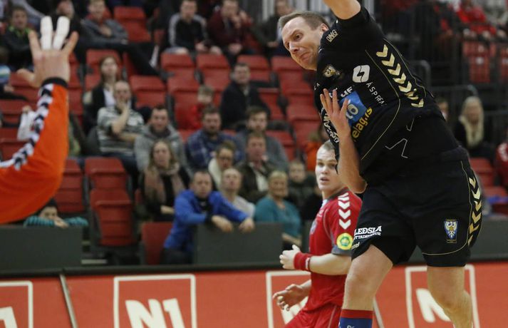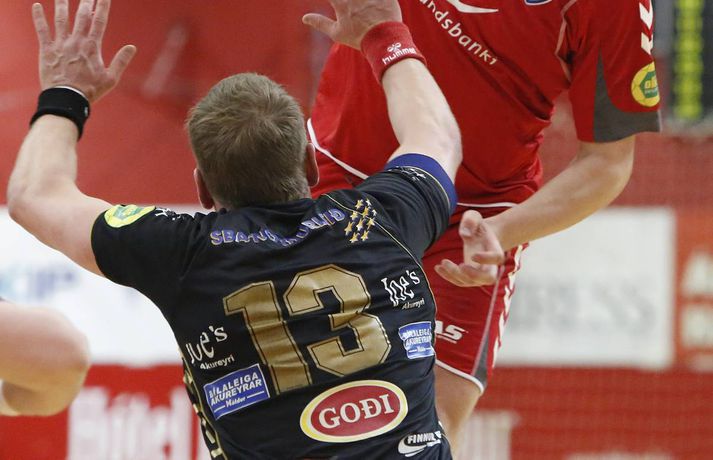 Umfjöllun, viðtöl og myndir: Haukar - Akureyri 26-20 | Auðvelt hjá toppliðinu Anton Ingi Leifsson á Ásvöllum skrifar 6. febrúar 2014 16:58 Sigurbergur lúðrar á markið í kvöld. vísir/valli Haukar styrktu stöðu sína á toppnum í kvöld þegar þeir sigruðu Akureyri 26-20. Giedrius Morkunas og varnarleikur Hauka voru lykillinn að því. Leikurinn var þó ekki mikið fyrir augað. Leikurinn var vel jafn í rúmar tuttugu og fimm mínútur í fyrri hálfleik. Liðin skiptust á að skora og bæði lið léku fínan varnarleik þó gestirnir hefðu þurft að hafa meira fyrir hverju marki ef svo mætti að orði komast. Þeir opnuðu þó vörn Hauka ágætlega oft á tíðum. Undir lok fyrri hálfleiks gáfu þó heimamenn í og breyttu stöðunni úr 8-8 í 12-9, þar af tvö hraðaupphlaupsmörk frá Árna Stein Steinþórssyni. Staðan 12-9 í hálfleik. Fyrri hálfleik var ekki mikið fyrir augað eins og tölurnar gefa kannski til að kynna. Eftir 26 mínútur var staðan einungis 8-8 sem gefur til að kynna skemmtanagildið, sem var ekki mikið. Heimamenn byrjuðu síðari hálfleik af krafti og náðu sex marka forystu eftir rúmar fimm mínútur í síðari hálfleik. Gestirnir spiluðu sig oft í góð færi í síðari hálfleik, en Morkunas var þeim erfiður. Lokaði vel og örugglega á þá. Giedrius Morkunas var maður leiksins í kvöld. Morkunas varði vel og þá sérstaklega í fyrri hálfleik, en eins og fyrr segir spiluðu gestirnir sig oft í færi. Sigurbergur Sveinsson og Árni Steinn Steinþórsson voru bestir í sóknarleik heimamanna, en Sigurbergur tók sig nokkrar mínútur í að hitna aðeins. Í liði gestanna báru þeir Bjarni Fritzson og Kristján Orri liði uppi. Örvhentu mennirnir skoruðu alls fjórtán af tuttugu mörkum gestanna og þurfa fleiri að stíga upp ætli liði sér að vinna eins sterkt lið og Haukanna. Með sigrinum ná Haukarnir sjö stiga forystu á topnum, þangað til í kvöld að minnsta kosti. Akureyri er enn í sjöunda sæti með átta stig, fimm stigum fyrir ofan HK sem er í því neðsta.Patrekur: Þetta eru flottir strákar ,,Ég er mjög ánægður. Þetta var ekkert auðveldur leikur eins og sást í byrjun og Akureyringarnir mættu öflugir til leiks. Þetta var hörkuleikur sérstaklega fyrstu tuttugu og fimm mínúturnar. Það var gott að vera með þriggja marka forystu í hálfleik," sagði Patrekur strax að leik loknum. ,,Einnig var ég mjög ánægður hvernig við komum inn í síðari hálfleikinn og líka hvað við náðum að nota vel breiddina. Það er það sem þjálfarar eru ánægðir með, margir stóðu sig vel." Aðspurður hvort hann hafi verið óánægður með eitthvað sagði Patrekur: ,,Það er alltaf eitthvað slæmt, en miðað við leikinn á móti ÍR þar sem ég var virkilega óánægður með hvernig við komum inn var ég mjög ánægður með þetta. Númer eitt, tvö og þrjú er það að ég sjái að leikmenn eru klárir. Auðvitað koma alltaf mistök, það gerist í hverjum einasta leik." ,,Í heildina var þetta flottur sigur hjá strákunum og maður sá svona Hauka-hjartað. Þó ég hafi verið úti í Austurríki og á Evrópumótinu var ég í góðu sambandi við mína aðstoðarmenn og strákarnir voru að æfa rosalega vel. Við unnum rosalega mikið í líkamlega þættinum og auðvitað í handboltanum líka, það er það sem er ánægjulegt. Það er orka og kraftur í strákunum. Þessi leikur er búinn og þá er það bara næsta verkefni." Haukarnir eru með sjö stiga forystu á toppnum. Er kampavínið komið í kælinn á Ásvöllum? ,,Nei, að byrja fagna snemma er það hættulegasta sem maður gerir. Við eigum að líta á okkur sjálfa og sjá hvað við getum bætt í okkar leik, alls ekki að fara á eitthvað flug. Þetta eru það flottir strákar, við höfum ekki byrjað að fagna hingað til og förum ekki að gera það núna." ,,Valsararnir eru með hörkulið og okkur hefur ekkert gengið alltof vel gegn þeim í vetur. Síðasti leikur gegn þeim fór jafntefli og þetta er önnur keppni, við þurfum að undirbúa okkur vel. Það er krefjandi verkefni, en við förum fullir sjálfstraust í það," sagði Patrekur að lokum, aðspurður út í KFUM-slaginn gegn Val í bikarnum á mánudag.Bjarni Fritzson: Mistökin dýr gegn svona góðu liði ,,Þetta var svona eins og seinasti leikur gegn Val. Við erum að spila rosalega vel á köflum, en svo koma bara slæm mistök þar sem við erum að tapa boltanum. Við fáum hraðaupphlaup í bakið og erum að skjóta illa á markmanninn," sagði Bjarni Fritzson, spilandi þjálfari Akureyrar, að leik loknum. ,,Á köflum erum við að standa þeim bara jafnfætis. Spila góða sókn og standa vörnina svona ágætlega. Hann varði örugglega fimm dauðafæri í fyrri hálfleik og það er ekki nógu gott. Við hefðum getað skorað þarna undir lok fyrri hálfleiks, en fáum í staðinn mark í bakið. Munurinn verður því þrjú mark í hálfleik í staðinn fyrir eitt." ,,Fyrri hálfleikurinn var bara jafn og við vorum bara góðir. Þessi mistök eru svo dýr gegn svona góðu liði, en þetta eru ungir strákar og ekkert óeðlilegt að þeir geri slík mistök." ,,Við vorum rosalega góðir á köflum í dag, en við gerðum það líka gegn Val í fyrri hálfleik í síðasta leik. Það er nátturlega ekkert gott að vera með svona mikið af opnunum, en að vera samt með markmann í tuttugu skotum. Það er jákvætt að við séum að ná opnunum, en við verðum að vera einbeittari í skotunum." Akureyri mætir FH næst í bikarnum. Bjarni er spenntur fyrir því að fá gömlu félagana í heimsókn: ,,Það er bara gaman og við erum bara ferskir. Okkur finnst gaman að fá FH í heimsókn, þeir eru með flott lið og það verður bara skemmtilegt verkefni," sagði Bjarni að lokum.vísir/vallivísir/valli Olís-deild karla Mest lesið Óskar Hrafn 