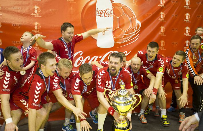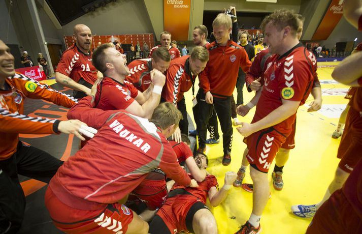 Haukar eru bikarmeistarar karla 2014 eftir 22-21 sigur á ÍR í rosalegum úrslitaleik í Laugardalshöll í dag. Leikurinn var æsispennandi allan tíman en ÍR fékk síðustu sókn leiksins til að jafna metin.Daníel Rúnarsson, ljósmyndari Vísis og Fréttablaðsins, var í Laugardalshöllinni í dag og tók þessar myndir hér fyrir ofan og neðan. Haukar voru yfir allan fyrri hálfleikinn þó aldrei hafi munað miklu á liðunum. ÍR náði þó að jafna metin fyrir hálfleik og staðan í hálfleik 11-11. Kristófer Fannar Guðmundsson kom sterkur inn í mark ÍR sem náði loks að komast yfir í upphafi seinni hálfleiks. ÍR komst í 15-13 en þá skoraði liðið ekki í rúmar 8 mínútur og Haukar skoruðu sex mörk í röð. ÍR gafst ekki upp. Liðið lék frábæra vörn og náði að jafna metin í 21-21 þegar skammt var til leiksloka. Við tók æsispennandi kafli þar sem Einar Pétur Pétursson skoraði sigurmarkið þegar rétt innan við mínúta var eftir. Bæði lið léku frábæra vörn í leiknum og var viðeigandi að vörn Hauka stöðvaði ÍR í síðustu sókninni og tryggði Haukum sjöunda bikarmeistaratitil félagsins og þann annan á þremur árum.Matthías Árni: Besta sem hægt er að gera í þessari íþrótt „Þetta var rosalegur úrslitaleikur og einn sá rosalegasti í einhvern tíma. Bæði lið voru ótrúlega öflug í vörn og sókn og áhorfendur geggjaðir. Þetta er einn skemmtilegasti úrslitaleikur sem ég hef tekið þátt í,“ sagði Matthías Árni Ingimarsson varnartröll sigurreifur í leikslok. „Við vorum aðeins lekir í fyrri hálfleik en náðum að þétta vörnina í seinni hálfleik. Þetta var ekki mikill markaleikur,“ sagði Matthías sem mundi ekki eftir síðustu fimm mínútum leiksins, slík var spennan og átökin. „Þetta er besta tilfinning í heimi. Ég er búinn að gera þetta nú tvisvar sem leikmaður og einu sinni sem kjúklingur í hóp. Þetta verður ekki betra, þetta er það besta sem hægt er að gera í þessari íþrótt.“Sigurbergur: Svakalegt síðustu fimm „Þetta verður ekki sætara en þetta, sérstaklega eftir svona leik sem er jafn allan tímann, er stál í stál allan leikinn,“ sagði Sigurbergur Sveinsson sem var öflugur að vanda í liði Hauka og þá ekki síst í vörninni. „Það er ólýsanleg tilfinning að vinna bikarinn. Það er vert að hrósa HSÍ. Umgjörðin í kringum þetta var alveg frábær, risaskjár og læti. „Leikurinn var mjög erfiður. Bæði lið að spila í gærkvöldi og þetta tekur á. Þú þarft að sækja í þína innri krafta til að klára leikinn og svo var þetta jafnt allan tímann og menn að berjast fyrir titlinum. „Þetta var svakalegt hérna síðustu fimm mínúturnar. Það var eitthvað í gangi en þetta féll með okkur. Þetta hefði getað fallið með þeim, þannig séð,“ sagði Sigurbergur.Tjörvi: Svona eiga úrslitaleikir að vera „Svona eiga úrslitaleikir að vera, það er bara þannig,“ sagði Tjörvi Þorgeirsson leikstjórnandi Hauka eftir leikinn í dag. „Þetta var bikar númar þrjú. Ég spilaði ekki mikið í fyrsta en þetta var alvöru leikur. Síðast var það rúst á móti Fram. „Báðar varnirnar voru öflugar og báðir markverðirnir. Goggi (Giedrius Morkunas) og Kristófer vörðu mikið. Það er ekki fallegasti handboltinn í úrslitaleikjum, þetta er barátta. „Vörnin kláraði leikinn. Ég hef aldrei séð Nonna (Jón Þorbjörn Jóhannsson) hreyfa sig eins mikið og síðustu tvo daga. Ég held að hann þurfi að fá frí alla næstu viku. Það er mjög líklegt. Mér fannst hann frábær og Beggi (Sigurbergu Sveinsson), hann gaf allt í þetta,“ sagði Tjörvi áður en henn hélt inn í klefa til að fagna með félögum sínum.Bjarki: Taktískir feilar fella okkur „Við vorum svo grátlega nálægt því að landa þessu eða jafna í lokin. Þetta var hörkuleikur, flott umgjörð og frábær stemning,“ sagði Bjarki Sigurðsson þjálfari ÍR. „Í heildina þá held ég okkar taktísku feilar hafi fellt okkur í dag. Við höfum verið að halda þessu í fimm, sex feilum í síðustu leikjum og þá höfum við verið vaxandi. Nú kom þetta á öllu bretti núna. „Það tekur mikla orku að jafna eftir að lenda fjórum mörkum undir. Vörnin var ágæt á köflum hjá okkur en sóknarlega vorum við ekki að skila því eins og við ætluðum okkur. „Þetta er töff leikur, úrslitaleikur. Því miður fór mikil orka í að vinna upp forskotið. Þetta eru frábær tvö lið og þetta féll þeirra megin,“ sagði Bjarki sem treysti ungum en hávöxnum leikmanni til að taka lokaskotið. „Hugsunin var að reyna að nýta hæðina. Skotið hans fór ekki með okkur. Við vorum búnir að jafna þegar mínúta er eftir og við í sókn. Við eigum möguleika á að komast yfir og þá töpum við boltanum og fáum hraðaupphlaup í bakið. Það er það sem fellir okkur,“ sagði Bjarki Sigurðsson.Vísir/DaníelVísir/DaníelVísir/DaníelVísir/DaníelVísir/DaníelVísir/DaníelVísir/DaníelVísir/DaníelVísir/DaníelVísir/DaníelVísir/DaníelVísir/DaníelVísir/DaníelPetr Baumruk með syni sínum Adam.Vísir/Daníel