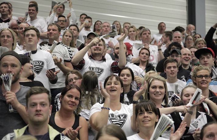Umfjöllun, viðtöl og myndir: ÍBV - Haukar 27-20 | Haukar komust ekki í gegnum Heimaklett Henry Birgir Gunnarsson í Eyjum skrifar 13. maí 2014 12:03 Það verður hreinn úrslitaleikur um Íslandsmeistaratitilinn í handbolta. ÍBV jafnaði einvígið gegn Haukum í kvöld í 2-2 og það verður því allt undir í oddaleik að Ásvöllum á fimmtudag. Vörn ÍBV í síðari hálfleik var hreint ótrúleg og Haukar áttu engin svör. Stemningin í íþróttahúsinu fyrir leik var með hreinum ólíkindum. Sturluð stemning og heyrðist vart í flautu dómaranna fyrir látum. Þessi mikla stemning virtist stressa leikmenn beggja liða upp og svo var auðvitað mikið undir. Varnarleikur beggja liða til mikillar fyrirmyndar en sóknarleikur ÍBV þó skárri. Það kom þó Haukum til bjargar að Morkunas var í banastuði í markinu og varði ellefu bolta. Hann var með 58 prósent markvörslu í hálfleiknum. ÍBV var að komast í færin en að skjóta afar illa. Adam fór mikinn í liði Hauka og hélt sóknarleik þeirra á floti lengi vel. Sigurbergur og Árni Steinn fundu sig ekki og þá sérstaklega Árni. Afar umdeilt atvik átti sér stað á 20. mínútu er Jón Þorbjörn Haukamaður fékk tveggja mínútna brottvísun. Harður dómur enda var Eyjamaðurinn Guðni Ingvarsson með leikaraskap. Jón brást illa við þessum leiktöktum og fór aðeins utan í Guðna. Dómararnir litu það einhverra hluta vegna mjög alvarlegum augum og gáfu Jóni beint rautt spjald. Fullkomlega galinn dómur. Eftir þetta atvik misstu dómararnir öll tök á leiknum og hver furðudómurinn rak annan. Þessir annars fínu dómarar - Gísli og Hafsteinn - réðu ekkert við verkefnið. Sóknarleikmenn liðanna voru heldur ekki beint í sínu besta formi og staðan í hálfleik 8-9 fyrir Hauka. Sjaldgæfar tölur í nútímahandbolta en varnarleikurinn frábær og kappið bar oft fegurðina ofurliði. Eyjamenn byrjuðu síðari hálfleik með miklum látum. Stressið farið úr þeim, þeir nýttu stemninguna og keyrðu í andlitið á Haukunum. Áður en varði voru heimamenn komnir með tveggja marka forskoti, 13-11. Þá fóru þeir að missa menn af velli en gerðu vel í að halda frumkvæðinu samt. Morkunas var reyndar hættur að verja í Haukamarkinu og Eyjamenn gengu heldur betur á lagið. Þgar síðari hálfleikur var hálfnaður var munurinn kominn í fjögur mörk, 16-12. Patrekur tók þá leikhlé enda hans menn algjörlega út á túni. Það leikhlé skilaði nákvæmlega engu. Leikmenn hans fundu ekki neinar lausnir á vörn ÍBV og Patti fékk ekki heldur neina markvörslu. Eyjamenn keyrðu áfram á fullu gasi og Haukar gátu ekki annað en fylgst með veislunni. Frábær leikur þeirra og handboltaunnendur fá oddaleik. Gæti ekki verið betra. Við þennan leik verður ekki skilið án þess að minnast á ótrúlega frammistöðu stuðningsmanna ÍBV. Þvílík og önnur eins stemning hefur vart sést í íþróttahúsi á Íslandi í mörg ár. Þetta fólk á mikið í þessum sigri í kvöld.Patrekur: Ég má ekki tjá mig um dómara "Ég vil þakka Eyjamönnum fyrir skemmtilegan leik. Fyrri hálfleikur var góður en við vorum klaufar að nýta hraðaupphlaupin ekki betur. Svo missum við Jón Þorbjörn af velli fyrir gífurlega gróft brot samkvæmt dómurunum," sagði Patrekur en það leyndi sér ekki á andliti hans að hann var mjög óánægður með dóminn. "Ég má ekkert segja. Þú færð ekkert upp úr mér. Það má ekkert tjá sig um dómara og ég ætla ekki að gera það. Þið fjölmiðlamenn getið tjáð ykkur um þetta en ekki ég. Ég vil vera með á fimmtudag þannig að ég segi ekki meira," sagði Patrekur þegar gengið var á hann um frammistöðu dómaranna. Hann lét þó hafa eftir sér að honum þætti furðulegt að Eyjamaður hefði verið eftirlitsdómari þó svo hann hefði staðið sig ágætlega. Það var ekki bara Jón Þorbjörn sem Haukar misstu í leiknum því Sigurbergur fékk í hnéð og gat ekki spilað í síðari hálfleik. "Við vildum ekki taka sénsinn og hann treysti sér ekki heldur. Vonandi verður hann kominn í lag fyrir oddaleikinn. Adam leysti hann ágætlega af hólmi þó svo ákvarðanirnar hafi ekki alltaf verið góðar. ÍBV komst svo á siglingu og við áttum ekki svör. "Auðvitað vildi ég klára þetta í dag en það er annar leikur. Ég vil þakka þessu frábæra fólki sem kom til Eyja og studdi okkur. Við eigum flotta stuðningsmenn sem mæta ekki bara í úrslitakeppninni."Sindri: Flottasta stemning sem sést hefur á Íslandi "Þetta var geðveikt. Algjörlega geggjað. Ég vil meina að þetta sé flottasta stemning sem hefur sést á Íslandi. Lætin, stemningin og gleðin. Það skilaði sínu því við unnum þetta á geðveikinni eins og svo oft áður," sagði línumaður ÍBV, Sindri Haraldsson, og brosti hringinn. "Það var ekkert stress í okkur en gæinn í markinu hjá þeim datt í gang í fyrri hálfleik. Það tók okkur tíma að stilla af skotin," segir Sindri en hvað gerist hjá þeim í síðari hálfleik? "Þegar það er jafnt í liðum þá á enginn möguleika gegn okkur. Það var geggjuð vinnsla á okkur í vörninni og það gerir gæfumuninn í þessum leik. Kolbeinn datt líka í gang í markinu en það hefur aðeins vantað. Ef við fáum þessa auka fimm til sex bolta þá vinnum við alla leiki." Sindra sagðist ekki geta lagt mat á rauða spjaldið þar sem hann hefði ekki séð atvikið almennilega. Olís-deild karla Mest lesið Vonast til að komast í Kórinn: „Menn hafa aldrei séð annað eins“ Fótbolti Fær þrjár milljónir á dag næstu sex árin fyrir að gera ekkert Sport Stöðufundur í Laugardal klukkan 10:30 Fótbolti Landsleiknum aflýst og framhaldið óljóst Fótbolti Enska úrvalsdeildin í jólaköttinn Enski boltinn Elsta konan til klára Járnkarlinn Sport Markvörður Inter banaði háöldruðum manni í hjól