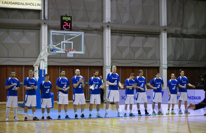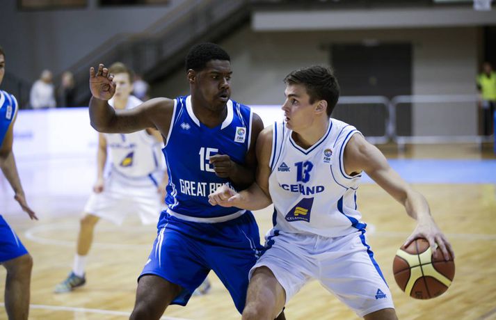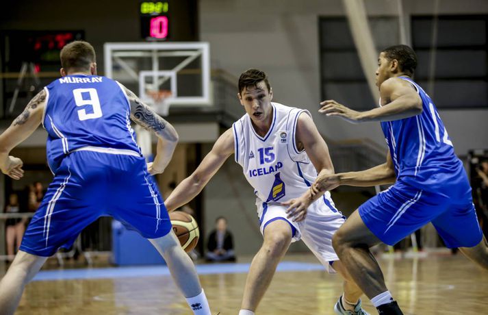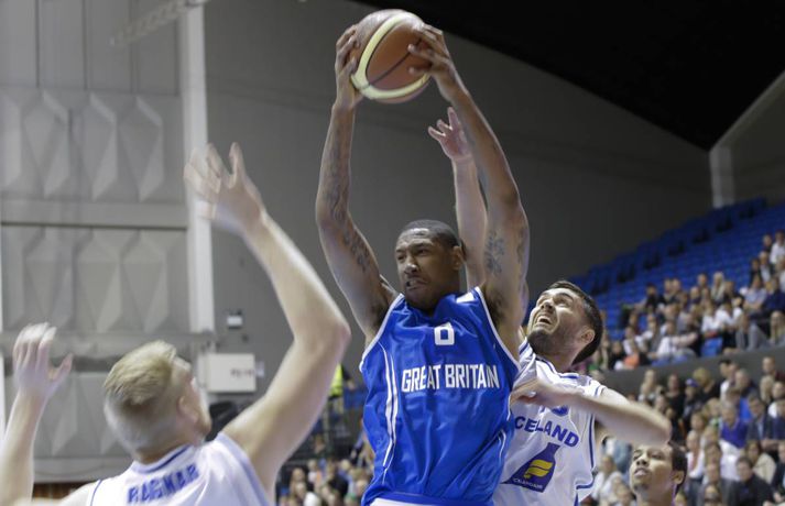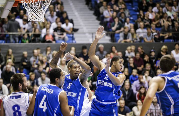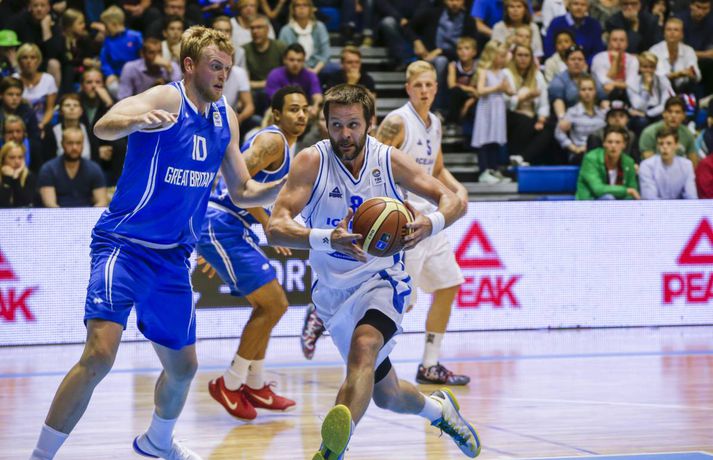 Grasið er grænt, himininn er blár og Martin Hermannsson er góður í körfubolta. Þetta eru staðreyndir lífsins. Það var mikið áfall að missa Jón Arnór Stefánsson, fánabera landsliðsins til margra ára, út, en með samstilltu átaki, (lengst af) góðum varnarleik, áræðni í sóknarleiknum og frábærri frammistöðu frá ungu mönnunum, Martin og Hauki Helga Pálssyni, hafðist 13 stiga sigur á Bretlandi í fyrsta leik A-riðils í undankeppni EM 2015. Íslendingar mættu ákveðnir til leiks; varnarleikurinn var frábær og Haukur fór fyrir sóknarleiknum, en hann skoraði sjö stig í fyrsta leikhluta. Íslendingar náðu mest 16 stiga forystu, 20-4, þegar 1:30 mínúta var eftir af fyrsta leikhluta. Bretar náðu að laga stöðuna aðeins, en þegar leikhlutinn var allur leiddi Ísland með tólf stigum, 22-10.Martin Hermannsson var frábær í leiknum.vísir/vilhelmBretar komu sterkir til leiks í öðrum leikhluta og þeir fóru að saxa á forskot Íslands. Gestirnir breyttu stöðunni úr 24-12 í 24-20 og þeir náðu loks að jafna leikinn, 31-31, þegar 1:30 mínúta var eftir af fyrri hálfleik.Hlynur Bæringsson kom Íslandi aftur yfir, 34-31, en Daniel Clark sá til þess að staðan væri jöfn í leikhléi þegar hann setti niður þriggja stiga skot í þann mund sem leikklukkan gall. Clark var stigahæstur Breta í fyrri hálfleik með 13 stig, auk þess sem hann tók sex fráköst. Haukur var stigahæstur Íslendinga með níu stig, en Logi Gunnarsson kom næstur með sjö stig. Þá skoraði Hlynur sex stig í fyrri hálfleik og tók níu fráköst. Bretarnir voru áfram með undirtökin í upphafi seinni hálfleiks. Sóknarleikur íslenska liðsins var stirður og gestirnir gengu á lagið. Þeir komust í fyrsta skipti yfir, 34-37, í upphafi seinni hálfleiks og þeir leiddu með sex stigum, 43-49, þegar 03:47 voru eftir af þriðja leikhluta.Jón Arnór Stefánsson var líflegur á hliðarlínunni.vísir/vilhelmEn þá sögðu Íslendingar hingað og ekki lengra. Það rann æði á Martin og Hauk og þeir skoruðu hverja körfuna á fætur annarri. Um leið opnaðist fyrir samherja þeirra og Íslendingar keyrðu upp hraðann. Hlynur kom Íslandi yfir, 59-58, með síðasta stigi þriðja leikhluta og Ísland hélt uppteknum hætti í lokaleikhlutanum. Íslendingar juku muninn jafnt og þétt og um miðjan fjórða leikhluta var munurinn kominn í tveggja stafa tölu. Vörnin var frábær á þessum tíma og Bretarnir áttu engin svör. Íslendingar náðu mest 18 stiga forystu, 81-63, en gestirnir frá Bretlandi náðu að laga stöðuna aðeins fyrir leikslok. Lokatölur 83-70, Íslandi í vil. Sigurinn var gríðarlega mikilvægur upp á framhaldið í riðlinum að gera og gefur leikmönnum íslenska liðsins eflaust mikið sjálfstraust fyrir næstu leiki. Haukur og Martin áttu báðir frábæran leik. Haukur skoraði 24 stig, tók níu fráköst, gaf fjórar stoðsendingar og stal þremur boltum. Martin skoraði 22 stig, en hann var gríðarlega mikilvægur á þeim kafla þegar íslenska liðið var að koma sér inn í leikinn á ný. Þá skal framlag Hlyns og Pavels Ermolinskij ekki vanmetið, en þeir áttu báðir afbragðs leik. Hlynur skoraði 14 stig, tók 15 fráköst og spilaði frábæra vörn. Pavel hitti ekki vel (23,1%), en hann gaf 14 stoðsendingar og stjórnaði sóknarleik íslenska liðsins af mikilli festu. Clark var atkvæðamestur í liði Breta með 20 stig og átta fráköst. Kieron Achara kom næstur með 16 stig. Ísland mætir Bosníu í öðrum leik sínum í riðlinum 17. ágúst næstkomandi.Hörður Axel Vilhjálmsson í sókn fyrir Ísland í kvöld.vísir/vilhelmArnar: Þeir eru góðir í körfubolta Arnar Guðjónsson, aðstoðarþjálfari Íslands, var að vonum sáttur eftir 13 stiga sigur á Bretlandi í Laugardalshöllinni í kvöld. Leikurinn var mjög sveiflukenndur, en hvernig fannst Arnari íslenska liðið spila? „Við hægðum aðeins of mikið á leiknum í öðrum leikhluta. Það gerði það að verkum að við klúðruðum nokkrum hraðaupphlaupum sem hleypti þeim aftur inn í leikinn. „Það var mjög dýrkeypt. Þegar við náðum tempóinu aftur upp í seinni hálfleik, þá leit þetta ágætlega út,“ sagði Arnar, en byrjunin á seinni hálfleik var Íslendingum erfið. „Byrjunin reyndist okkur strembin, en við breyttum áherslunum í sóknarleiknum um miðjan þriðja leikhluta og fórum að fórum að sækja meira á (Daniel) Clark og við það opnaðist völlurinn og við fengum auðveldari skot.“ Martin Hermannsson og Haukur Helgi Pálsson áttu báðir stórleik í kvöld. Hvað hafði Arnar um þeirra frammistöðu að segja? „Þeir eru góðir í körfubolta. Haukur var stórkostlegur í Evrópukeppninni í fyrra og allir Íslendingar vitu hversu megnugur Martin er. „Það er svo gaman að horfa á hann spila, því hann er svo öðruvísi leikmaður en flestir. Hann hefur stefnu- og hraðabreytingar sem unun er að horfa á,“ sagði Arnar og bætti við: „Þetta var lífsnauðsynlegur sigur upp á framhaldið að gera. Nú þurfum við að sigra Breta ytra og ef það gengur eftir er það vonandi EM sem bíður okkar.“Martin: Bjóst ekki við að skora svona mikið Martin Hermannsson var að vonum hæstánægður þegar blaðamaður Vísis náði af honum tali eftir sigurinn á Bretlandi í kvöld. „Sigurinn er hrikalega mikilvægur upp á framhaldið að gera. Þetta var akkúrat það sem við þurftum og við höfðum trú á þessu allan tímann,“ sagði Martin sem átti frábæran leik í kvöld. Hann skoraði 22 stig og átti hvað stærstan þátt í því að íslenska liðinu tókst að snúa erfiðri stöðu sér í vil. „Þetta gekk mjög vel. Ég bjóst ekki við að skora svona mikið, en ég ætlaði bara að leggja mitt af mörkum og hjálpa liðinu að vinna. „Mér leið vel inni á vellinum og fannst eins og ég gæti 
