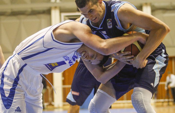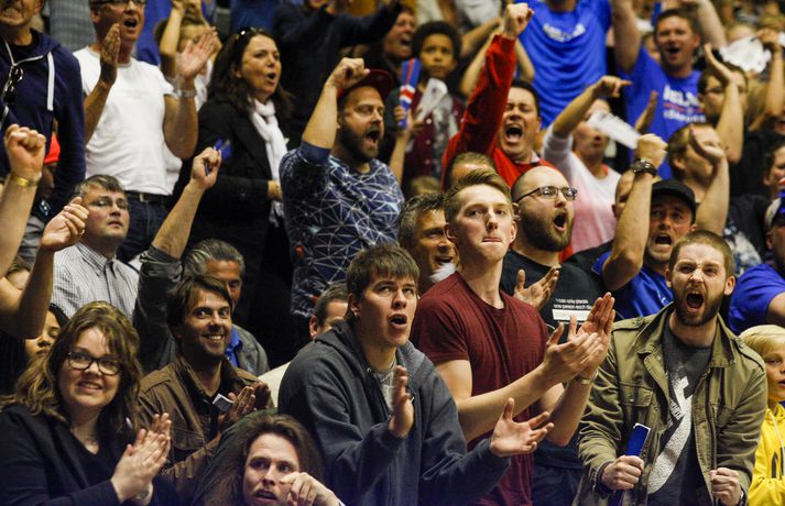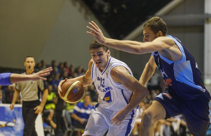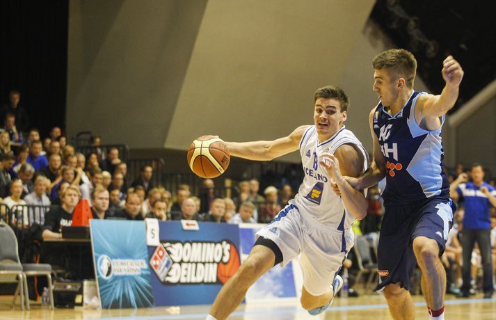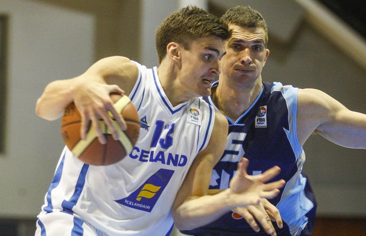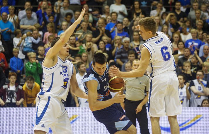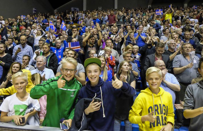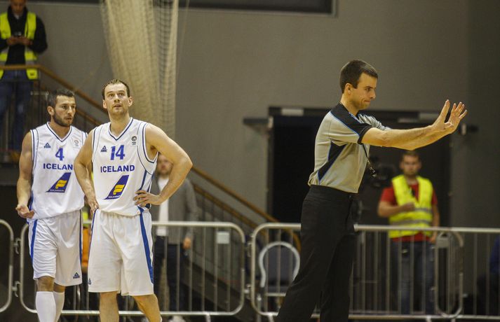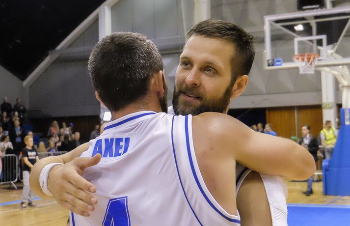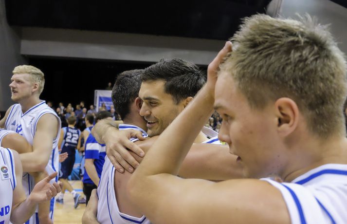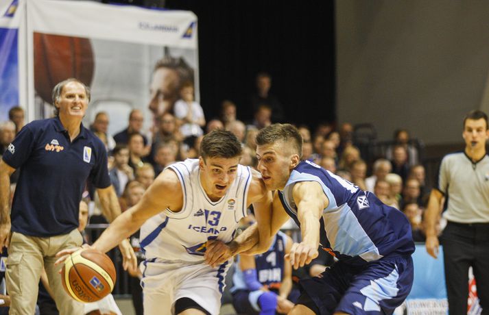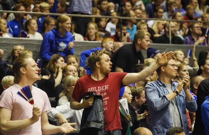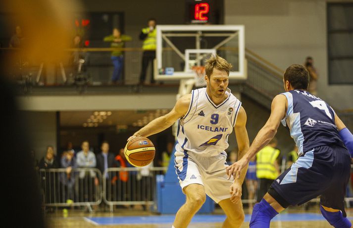 Umfjöllun, myndir og viðtöl: Ísland - Bosnía 70-78 | Ísland í fyrsta sinn á EM! Guðmundur Marinó Ingvarsson í Laugardalshöllinni skrifar 27. ágúst 2014 17:29 Leikmenn íslenska liðsins þökkuðu stuðninginn að leik loknum. Vísir/Anton Ísland er komið á Evrópumeistarmótið í körfuknattleik karla í fyrsta sinn þrátt fyrir 78-70 tap gegn Bosníu í Laugardalshöllinni í kvöld. Ísland hafnar í öðru sæti A-riðils. Það sást glögglega á íslenska liðinu í byrjun hversu mikið var í húfi. Spennustigið var allt of hátt og í raun aðeins Jón Arnór Stefánsson sem kom rétt stilltur inn í leikinn en hann skoraði 12 fyrstu stig Íslands. Bosnía hafði yfirhöndina í fyrsta leikhluta en strax í upphafi annars leikhluta voru íslensku strákarnir komnir niður á jörðina og sýndu hvað býr í liðinu.Hlynur Bæringsson var greinilega ekki heill heilsu og var í bullandi villuvandræðum en það kom ekki að sök því hver leikmaðurinn af fætur öðrum steig upp og þá ekki síst í varnarleiknum sem var frábær. Gríðarleg barátta skilaði því að Ísland var yfir í hálfleik 47-43. Sóknarleikurinn í öðrum leikhluta var stórbrotinn en segja má að nánast allt hafi gengið upp. Leikurinn var í járnum allan þriðja leikhluta og gríðarlega hart barist og lítið skorað. Baráttan á kostnað sóknarleiksins hélt áfram í fjórða leikhluta en Bosnía hafði náð að jafna 58-58 fyrir fjórða leikhluta. Bosnía komst yfir í fyrsta sinn í langan tíma þegar sex mínútur voru eftir af leiknum og íslenska liðið virtist hreinlega bensínlaust eftir hetjulega baráttu og frábæran leik. Ísland skoraði ekki í fjórar mínútur og Bosnía náði átta stiga forystu áður en Hörður Axel Vilhjálmsson fann leiðina í körfuna. Ísland náði að minnka muninn í fjögur stig en nær komst liðið ekki. Það kom þó ekki að sök því liðið hafnar í öðru sæti A-riðils sem dugar liðinu að komast á EM í fyrsta sinn. Frábær árangur hjá íslenska liðinu sem er búið að sýna að það getur staðið í frábærum liðum þó það hafi vantað herslumuninn í kvöld. Jón Arnór Stefánsson var frábær hjá íslenska liðinu og skoraði 21 stig. Hörður Axel Vilhjálmsson skoraði 12 stig og Logi Gunnarsson, Pavel Ermolinskij og Haukur Helgi Pálsson 9 en Haukur tók auk þess 9 fráköst.Jón Arnór Stefánsson: Adrenalínið var bara búið „Við erum að brjóta blað í íslenskri körfuboltasögu. Það verður seint toppað. Þetta er hátindurinn á ferlinum og gera það fyrir framan okkar fólk þrátt fyrir tap. Engu að síður var þetta mjög góður leikur heilt yfir,“ sagði Jón Arnór Stefánsson sem var frábær í íslenska liðinu þó dregið hafi af honum í seinni hálfleik. „Höllin var full. Fólkið svaraði kallinu. Ég vil þakka stuðninginn. Þetta var æðislegt og frábær upplifun að spila fyrir framan fulla höll. „Körfuboltinn var ekkert rosalega góður, í seinni hálfleik aðallega en ég held að þetta hafi verið mikil skemmtun. Ég held að fólk hafi séð okkur leggja sig fram til að vinna leikinn. Það skein held ég úr augunum á okkur,“ sagði Jón sem lék tvo síðustu leiki Íslands í undankeppninni eftir að hafa misst af tveimur fyrstu leikjunum þar sem hann er án samnings og vildi ekki taka áhættuna á að meiðast. „Það kom kannski í ljós æfingaleysið á mér. Ég var ekki búinn að spila neitt og adrenalínið var bara búið. Ég var þungur og lélegur í seinni hálfleik en þá fengum við körfur frá öðrum. Við náðum að hanga í þeim og hleyptum þeim aldrei langt frá okkur.“ Jón Arnór fór á kostum í byrjun leiksins og hélt íslenska liðinu hreinlega inni í leiknum á meðan aðrir leikmenn áttuðu sig á aðstæðum. „Ég var rétt stilltur í byrjun. Ég er búinn að æfa með Gunnari Einarssyni í Keflavík. Hann er búinn að hjálpa mér rosalega mikið með réttum æfingum og ég er í nokkuð góðu standi miðað við æfingaleysi. „Ég er búinn að vera að taka skot líka og var rétt stemmdur. Ég er búinn að spila helling í huganum þó ég hafi ekki verið með í mikið af þessum æfingum og leikjum. Ég var klár í þetta í kvöld. „Ég rann í byrjun og fann fyrir mjöðminni og svo rann ég hinum megin og þá fann ég fyrir mjöðminni hinum megin. Leiðindadúkur svona sleipur en ég er góður. Ég var aðallega bara þreyttur í lokin,“ sagði Jón Arnór. Craig Pedersen: Andinn í hópnum lykillinn„Ég er virkilega ánægður. Ég er sérstaklega ánægður fyrir hönd leikmanna sem hafa lagt mikla vinnu í þetta í mörg ár. Ég kom inn í þetta fyrir fimm mánuðum og það er ótrúlegt að upplifa þetta með þeim,“ sagði Craig Pedersen þjálfari Íslands. „Ástæðan fyrir árangrinum er andinn í hópnum. Auðvitað eru miklir hæfileikar í hópnum en mörg lið sem leika ekki eins vel eiga kannski fleiri og hæfileikaríkari leikmenn en þau lið búa ekki yfir þeim anda sem er í íslenska liðinu. Þeir vinna líka vel og er klárir leikmenn," sagði Pedersen sem var mjög ánægður með hvernig aðrir leikmenn stigu upp þegar ljóst var að Hlynur Bæringsson gat ekki beitt sér sem skildi „Það var mjög mikilvægt að Hlynur var í búningi í dag því hann er hjartað og sálin í liðinu. Hann hefur unnið frábærlega fyrir liðið og var frákastahæsti leikmaðurinn í undankeppninni fyrir leikinn í kvöld. Það er ótrúlegt fyrir leikmenn upp á 2 metra. En aðrir leikmenn komu inn og stóðu sig frábærlega. „Alveg sama hvernig gengur á EM þá er frábær árangur fyrir svona litla þjóð að komast í úrslitakeppni Evrópumótsins. Líka fyrir þjóð sem er svona lágvaxin á vellinum,“ sagði Pedersen. Haukur Helgi: Hefðum unnið með Hlyn„Ég vildi óska þess að við hefðum unnið þetta. 