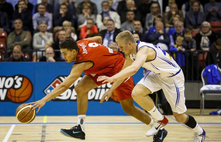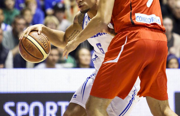 Strákarnir okkar í íslenska landsliðinu í körfubolta unnu í kvöld frábæran sextán stiga sigur á liði Sviss, 88-72, í fyrsta leik liðanna í undankeppni EM 2017.Ernir Eyjólfsson, ljósmyndari Fréttablaðsins og Vísis, var í Laugardalshöllinni í kvöld og tók meðfylgjandi myndir. Íslenska liðið hefur ekki spilað betur í langan tíma en ljóst er að það kemur mjög vel undirbúið til leiks og er varnarleikurinn sem það spilaði í kvöld ummerki um að góð undankeppni gæti verið í kortunum. Það er óhætt að segja að fyrsta sókn leiksins sem var Svisslendinga hafi sett tóninn fyrir það sem átti eftir að gerast. Leikstjórnandi gestanna bar upp boltann en var búinn að missa hann út af eftir nokkrar sekúndur vegna frábærs varnarleiks Harðar Axels Vilhjálmssonar. Íslenska liðið byrjaði af þvílíkum krafti jafnt í vörn sem sókn og gekk hreinlega allt upp. Ef Ísland ætlar að vinna körfuboltaleiki þarf þessi smávaxna vörn að vera aktív og á mikilli hreyfingu og á hinum enda vallarins þurfa skotin að detta. Strákarnir skutu 16 af 28 í fyrri hálfleik eða 57 prósent, þar af átta af 16 fyrir utan sem gerir 50 prósent. Þannig var fyrri hálfleikurinn hjá strákunum okkar allt að því fullkominn. Varnarleikurinn var á köflum magnaður þar sem hver einasta skipting á skríni heppnaðist og urðu Svisslendingarnir stundum svo ráðalausir að þeir tóku smá steppdans með boltann og fengu dæmd á sig skref. Sviss var búið að missa boltann sex sinnum í fyrsta leikhluta og leikmenn liðsins hittu nánast ekkert enda voru þeir trekk í trekk neyddir í erfið skot. Ísland komst í 14-5, 19-7 og 22-9. Þá gafst þjálfari gestanna upp og tók leikhlé. Hann gat ekki annað enda var íslenska liðið við það að stinga af með Höllina á bakvið sig. Stuðningsmennirnir vissu ekki alveg við hverju þeir áttu að búast og var rólegt í húsinu til að byrja með en þessi frammistaða íslenska liðsins var fljót að kveikja í fólkinu.Bakverðirnir frábærir Sviss minnkaði muninn í 24-16 fyrir leik annars leikhluta en lenti svo 26 stigum undir, 47-21, í öðrum leikhluta þar sem íslenska liðið var nánast óstöðvandi. Þar spilaði inn í frábær innkoma reynsluboltans Loga Gunnarssonar sem var alveg magnaður. Logi fór bara út í vinstra hornið sem honum líður svo vel í og plantaði niður þrettán stigum með þremur þristum og tveimur tveggja stiga körfum; allt af sama blettinum. Hann skoraði meira að segja tvær þriggja stiga körfur í sömu sókninni eftir að dæmd var villa inn í teig þegar fyrra skotið var í loftinu. Nýja bakvarðaparið var einnig mjög gott. Á æfingamótinu á dögunum voru Craig Pedersen og aðstoðarmenn hans að slípa saman þá Hörð Axel og Martin Hermannsson og það virðist hafa virkað. Martin hefur bætt sig gríðarlega í varnarleiknum eftir dvölina í Bandaríkjunum og allir vita hvað Hörður getur í vörninni. Í sókninni var Martin svo búinn að skila þrettán stigum og Hörður Axel fimm plús sjö stoðsendingum. Sextán stig, átta stoðsendingar og frábært varnarframlag á ekki nema 20 mínútur. Þetta er bakvarðapar framtíðarinnar. Eftir mikið bras í sóknarleiknum tókst þjálfara Sviss aðeins að berja smá lífi í sína menn sem skoruðu átta síðustu stig fyrri hálfleiks og fóru "ekki nema" 18 stigum undir til búningsklefa, 47-29.Sviss vaknaði Svisslendingarnir virtust vakna af vondum draumi í seinni hálfleiknum og skoruðu fyrstu fimm stig leiksins og voru tiltölulega fljótir að koma muninum á liðunum niður fyrir tuginn í níu stig, 50-41. Liðið sem virtist ekki geta hitt hlöðu né varist í fyrri hálfleik var mætt til leiks. Varnarleikur gestanna var miklu betri og tók það okkar menn smá tíma að komast aftur í takt eftir smá ráðleysi í byrjun þriðja leikhluta. En stórar körfur eins og þristur frá fyrirliðanum Hlyni Bæringsson og geggjað snúningssniðskot frá Herði Axel (og vítaskot að auki) héldu íslenska liðinu gangangi. Sviss minnkaði engu að síður muninn niður í tíu stig fyrir lokafjórðunginn, 64-54. Þar munaði gríðarlega um ömurlega vítanýtingu íslenska liðsins. Það hitti ekki bema úr sjö af fjórtán vítaskotum eða 50 prósent í fyrri hálfleik og aðeins tveimur af níu í þriðja leikhluta. Mörgum ókeypis stigum var kastað í ruslið. Sem betur fer urðu þau liðinu ekki að falli. Strákarnir voru ekkert á því að gefa frá sér sigurinn fyrir framan næstum fulla Laugardalshöllina. Martin Hermannsson kveikti næstum í kofanum með ruglaðri keyrslu að körfunni og fékk vítaskot að auki.Frábær endir Þar með var björninn unninn. Varnarleikurinn varð aftur frábær og þegar fimm mínútur voru eftir af fjórða leikhluta munaði 22 stigum á liðunum, 81-59. Það verður þó að gera svissneska liðinu það, að þegar það leit út fyrir að vera algjörlega dautt og grafið spýtti það í lófana, en sem betur fer of seint. Strákarnir okkar höfðu á endanum 16 stiga sigur, 88-72, sem hefði hæglega getað verið stærri. Leikmennirnir og þjálfarateymið fagnar þessum sigri í kvöld en grætur kannski að hafa ekki látið kné fylgja kviði og valtað yfir Svisslendingana því stigamunur getur skipt máli. En frábær sigur og ein besta frammistaða íslenska liðsins í langan tíma staðreynd. Framlag frá mörgum í sókninni og á löngum köflum einhver besti varnarleikur sem liðið hefur spilað. Hörður Axel Vilhjálmsson var stigahæstur hjá Íslandi í kvöld með 16 stig auk þess sem hann gaf átta stoðsendingar og spilaði frábæran varnarleik. Fyrirliðinn Hlynur Bæringsson skoraði fimmtán og Martin Hermannsson fjórtán. Sex leikmenn liðsins skoruðu yfir tíu stig. Liðssigur. Ísland mætir næst Kýpur 3. september ytra en frábær byrjun í kvöld.Log