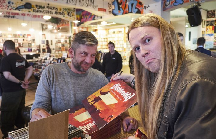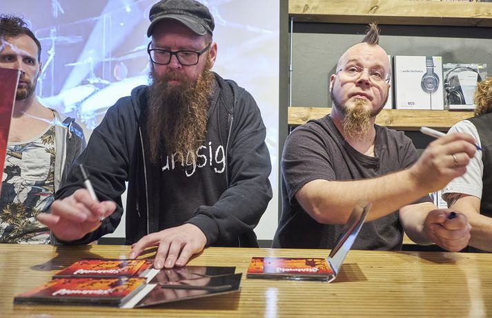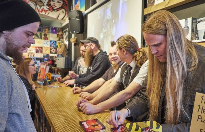 Hárprúðir rokkarar fjölmenntu í hlustunarpartý Skálmaldar - Myndir Sunna Kristín Hilmarsdóttir skrifar 2. október 2016 23:32 Hljómsveitin Skálmöld hélt hlustunar-og áritunarpartý fyrir aðdáendur sína síðastliðinn föstudag. vísir/anton brink Hjómsveitin Skálmöld gaf út sína fjórðu plötu, Vögguvísur Yggdrasils, síðastliðinn föstudag og hélt af því tilefni hlustunar- og áritunarpartý í verslun Lucky Records á Rauðarárstíg. Rokkarar landsins fjölmenntu í partýið þar sem meðlimir sveitarinnar tóku á móti þeim og árituðu nýju plötuna en var Anton Brink ljósmyndari Vísis og Fréttablaðsins var á staðnum og tók meðfylgjandi myndir. Mest lesið Aldrei of seint að prófa sig áfram Tíska og hönnun Meðalmennskan plagar Brján Gagnrýni Kynslóðabilið kom í ljós þegar umræðan beindist að blautbolakeppni Lífið Skein skært í sögulegum gleðikonukjól Lífið Troðningur á yfirfullri opnun: „Þetta var svolítið kreisí“ Lífið Fékk lífið til baka á korteri eftir tólf ár af sársauka Lífið „Fallegasti drengur í heimi“ er látinn Bíó og sjónvarp Upplifði stöðugan ótta við helvíti í samfélagi múslima í Svíþjóð Lífið Hótelstjóri Hótels Tindastóls er allur Bíó og sjónvarp Pétur Kr. og Ingibjörg selja 270 fermetra eign við Ægisíðu Lífið Fleiri fréttir Spila jólalög allan sólarhringinn fram að jólum Gervigreindarsvikarar reyna að hagnast á íslenskum stjörnum Katrín Odds og Þorgerður ástfangnar á frumsýningu Englar Birnis frumsýndir og heimildarmynd á leiðinni Sleppti tökunum á ástarsorgarplötu aldarinnar Lofar hlustendum jákvæðri og skemmtilegri stemmingu Þetta eru bestu lög 21. aldarinnar „Þetta er ömurleg fjárhagsleg ákvörðun“ Borgarstjóri og bombur í brjálaðri GusGus-gleði Sama hvað öllum finnst, nema mömmu og pabba Íslenskar stjörnur heiðra Bítlana Frumsýning á Vísi: Iceguys trylla þjóðina enn og aftur í nýju myndbandi Baunar á kókaða söngkonu fyrir baktal Djúpt snortinn yfir viðbrögðum samfélagsins Hneig niður í miðju lagi Joy Orbison treður upp í Austurbæjarbíói Samdi lag um ást sína á RIFF Söguleg rappveisla í Laugardalnum Laufey treður upp með Justin Bieber Árný Margrét ómaði á tískupöllum í New York Írar sniðganga Eurovision taki Ísrael þátt „Algjörlega út úr kortinu fyrir íslenskan listamann“ Uppselt á tónleika Laufeyjar og aukatónleikum bætt við Heiðra Arvo Pärt í Landakotskirkju Troðfull Þorlákskirkja minntist Karls Sighvatssonar Einvalalið kemur fram á Karlsvöku Laufey Lín endar Evróputúrinn á Íslandi Fjarsambandinu loksins lokið Frumsýning á Vísi: Fyrsta lag Valdimars í sjö ár og liðsmenn eru Bieber ævinlega þakklátir Raftónlistarhátíðin Extreme Chill haldin í sextánda sinn næstu helgi Sjá meira