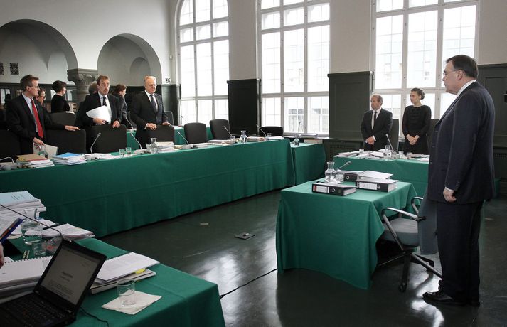 Landsdómur Tengdar fréttir Dómur felldur á fimmtudaginn í máli Geirs Haarde Mannréttindadómstóll Evrópu dæmir í máli Geirs Haarde gegn íslenska ríkinu næsta fimmtudag. 18. nóvember 2017 07:00 Mest lesið Veðurvaktin: Snjókoman rétt að byrja og víða erfið færð Veður Snjókoman rétt að byrja Innlent Bílar út af veginum á Reykjanesbraut Innlent Ráðgjafinn ráðinn í tímabundið starf eftir dýra skreppitúra Innlent Ungur Miðflokksmaður gengst við rasisma og segir af sér Innlent Skvísur geti virkað sem hálfgerðir þroskaþjófar Innlent Játar að hafa myrt Shinzo Abe Erlent Viðbragðsaðilar í mikilli hættu vegna bíla á sumardekkjum Innlent Búast við hamförum vegna Melissu Erlent Allur floti Vegagerðar úti að ryðja snjó Veður Fleiri fréttir Fjölmargir farþegar fastir í flugvélum á Keflavíkurflugvelli Ungur Miðflokksmaður gengst við rasisma og segir af sér Sturlað ástand og United vettlingar prjónaðir í bílnum Mesta snjódýpt í Reykjavík sem mælst hefur í október Viðbragðsaðilar í mikilli hættu vegna bíla á sumardekkjum Bílar út af veginum á Reykjanesbraut Vill heimila Samkeppniseftirlitinu að ráðast í húsleitir Snjókoman rétt að byrja Píratar berjist gegn „rísandi bylgju lýðskrums og fasisma“ Skvísur geti virkað sem hálfgerðir þroskaþjófar Ráðgjafinn ráðinn í tímabundið starf eftir dýra skreppitúra Misvægi atkvæða bitnar mest á Kraganum Heitavatnslaust á Suðurnesjum og rafmagnslaust víða um land Skreppiferðir í Jysk meðal þess sem ráðgjafi rukkaði fyrir „Ég tel ekki tilefni til að íhuga stöðu mína“ Áhyggjur af lánaframboði og ógnarlangar biðraðir Vara við ferðum á Fagradalsfjall þar sem aðstæður geti orðið hættulegar Kristmundur verður lögreglustjóri á Austurlandi „Vonandi klárast þetta á morgun“ Sá látni var á rjúpnaveiðum þegar hann varð fyrir voðaskotinu Kvartanir mannsins um ómannúðlega meðferð áður til skoðunar hjá NEL Ungi ökumaðurinn á Ísafirði úr lífshættu Nefnd SÞ gegn pyndingum skráir erindi hælisleitenda sem vísað var frá Íslandi Ófremdarástandi lýst: Þrír stjórar í leyfi, einelti og hrun í starfsánægju Bíða í allt að þrjá tíma: „Ætli það sé ekki bara helvítis veðurspáin“ Alger óvissa í lánamálum og margra tíma bið eftir dekkjaskiptum Kláfur á Ísafirði fari í opinbera kynningu Hófu ekki rannsókn á heimilisofbeldi fyrir misskilning Erfitt að segja til um viðbrögð við nýjum faraldri miðað við Covid-viðbrögð Allt að þriggja tíma bið í dekkjaskipti Sjá meira