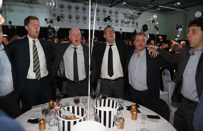 Mörg hundruð Vesturbæingar og KR-ingar úr öllum áttum skemmtu sér í DHL-höllinni á laugardagskvöldið þegar árlegt Þorrablót Vesturbæjar fór fram. Þetta er þriðja árið í röð sem blótið er haldið en það virðist komið til að vera. Það kom í hlut Vesturbæinga að sjá um skemmtiatriðin í ár. Sjónvarpsmaðurinn Gummi Ben var veislustjóri og Ari Eldjárn flutti uppistand. Stórsveitin Babies Flokkurinn lék síðan fyrir dansi. Kvöldið þótti heppnast virkilega vel og voru fjölmörg kunnuleg andlit í KR-heimilinu eins og sjá má hér að neðan. Erling Ó. Aðalsteinsson, ljósmyndari KR-inga, var með myndavélina á lofti og náði þessum skemmtilegu myndum af Vesturbæingum fagna þorranum.