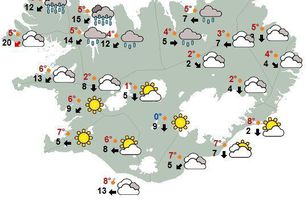 Veður Mest lesið Rændur fyrir utan Costco um hábjartan dag Innlent Kúgaðist og öskurgrét yfir lýsingum sonarins Innlent „Þetta er búið að ræna okkur innri ró“ Innlent Lögreglan vill ná tali af þessu fólki Innlent Reiði meðal lögreglumanna Innlent Valhöll auglýst til sölu Innlent Handtóku menn á tvítugsaldri vegna stórfelldrar fölsunar rafrænna skilríkja Innlent Verður líklega mikið eftir af snjó og klaka Veður Enn staðráðin í að lenda geimförum á tunglinu með Starship Erlent Fagnar komu Dags um borð í evrubátinn Innlent Fleiri fréttir Léttir til suðvestanlands Verður líklega mikið eftir af snjó og klaka Hvasst, hlýtt og von á asahláku eða glerhálku „Þetta verður allt saman stórvarasamt í fyrramálið“ Gular veðurviðvaranir víða um land Frostið náði næstum 20 stigum á Sandskeiði Djúp lægð nálgast landið úr suðri Nýtt snjódýptarmet í Reykjavík í október Hlýni á föstudag og snjórinn geti horfið í næstu viku Appelsínugular viðvaranir orðnar að gulum Miklar tafir hjá strætó og vagnar fastir Allur floti Vegagerðar úti að ryðja snjó Veðurvaktin: Allt á kafi í snjó á metdegi Mildari spá í kortunum Gular viðvaranir vegna snjókomunnar suðvestantil Um sautján stiga frost í Skagafirði í nótt Frost komst í fjórtán stig í nótt Norðanáttin gengur niður Klukkustunda bið eftir dekkjaskiptum í vetrarparadísinni Stormur eða hvassviðri suðaustantil Gul viðvörun á landinu sunnan- og austanverðu Svöl norðanátt og hálka á vegum Stefnir í fyrstu hálku haustsins á höfuðborgarsvæðinu Rigning eða slydda suðvestantil Kólnar í veðri næstu daga Hægviðri og þokusúld framan af degi Hæg breytileg átt og dálítil væta Vindur fyrir norðan og rigning og þokusúld vestanlands Dálítil væta og hiti að átján stigum Tuttugu stig á nokkrum stöðum Sjá meira