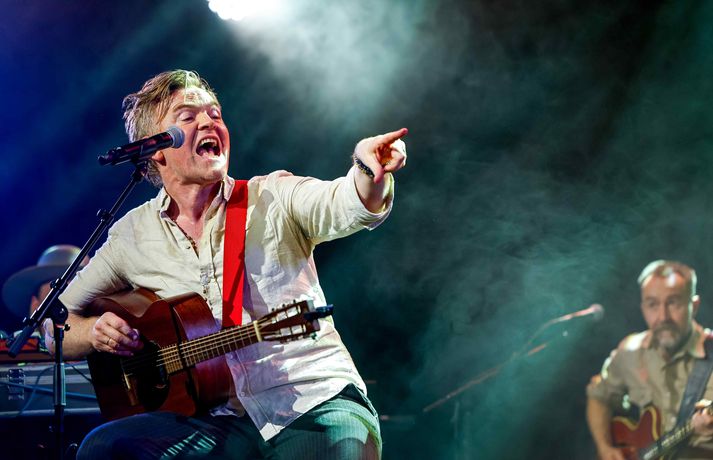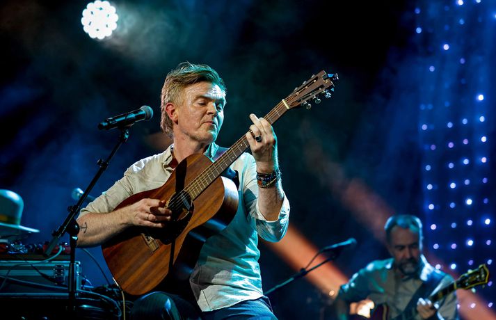 Er að vinna í því að hræra í orðin og hugmyndirnar Bylgjan 6. desember 2023 14:30 „Mig langaði að fókusa á lög með ákveðna frásögn sem mig langaði að koma til skila," segir Jónas Sig. Hann er næstur á svið í tónleikaröðinni Bylgjan órafmögnuð sem sýnd verður á morgun fimmtudag. Myndir/Hulda Margrét. Jónas Sig ásamt hljómsveit er næsti gestur Völu Eiríks í tónleikaröðinni Bylgjan órafmögnuð sem hófst í upphafi nóvember á Bylgjunni, Vísi og sjónvarpsstöðinni Stöð 2 Vísi. Tónleikarnir verða sýndir á morgun fimmtudag. Þetta er þriðja árið sem tónleikaröðin er haldin en allir tónleikarnir fara fram í Bæjarbíói í Hafnarfirði. Milli laga spjallar Vala Eiríks við Jónas um allt milli himins og jarðar en hann segir þetta fyrirkomulag vera áhugavert enda sé gaman að prófa eitthvað nýtt og öðruvísi en hann sé vanur. Vala Eiríks spjallaði við Jónas Sig á milli laga. „Það sem gerist í svona spjalli er auðvitað að tónleikarnir verða allt öðru vísi, opnari og sérstaklega þegar spjallið fer út og suður,“ segir Jónas. „Þá opnast á alls konar umræðu sem maður myndi annars aldrei hafa tekið upp á venjulegum tónleikum þegar maður er að tala við fólkið.“ Svona óformlegt og betra flæði sé því skemmtilegt. „Ég gæti trúað að það sé líka skemmtilegt fyrir tónleikagesti að brjóta tónleikana upp með spjalli og allt flæði sé aðeins meira eins og maður sé heima í stofu með tónlistarmanninum.“ Þegar Jónas valdi lög á tónleikana reyndi hann fyrst og fremst að hugsa um frásögnina þar sem bandið var órafmagnað að mestu leyti. „Mig langaði að fókusa á lög með ákveðna frásögn sem mig langaði að koma til skila. Til dæmis lög eins og Hleypið mér út úr þessu partýi, sem er bara gaman að taka í svona aðstæðum þó ekki nema til að geta farið í gegnum þennan texta eins og prósa og allir heyri og skilja orðin.“ Jónas Sig og hljómsveit voru í miklu stuði. Hann segist hugsa þetta alltaf mjög mikið út frá orðunum. „Það eru orðin og merking laganna. Síðan hvaða tilfinning býr að baki hverju lagi. Hvert langar mig að fara tilfinningarlega og hvernig langar mig að tengjast salnum og viðburðinum.“ Undanfarin ár hafa verið frekar róleg hjá Jónasi þegar kemur að útgáfu nýrra laga og tónleikum því hann kom að stofnun sportafyrirtækis með vinum sínum og hefur verið að rækta það undanfarin misseri. „Það er skemmtilegur heimur, alveg eins og tónlistin. Svo lengi sem það sé sköpun og flæði, þá er ég ánægður því það er bensínið í lífinu. Á komandi ári langar mig að gefa meira út af nýju efni og ég er að vinna í því að hræra í orðin og hugmyndirnar í rólegheitunum. Þetta þarf allt að fá að gerjast á sínum tíma.“ Gestir skemmtu sér konunglega á tónleikunum. Það voru Jóhanna Guðrún, Klara Elías, Friðrik Dór, Una Torfa og Ragga Gísla sem komu fram á fyrstu tónleikunum í tónleikaröðinni. Lokaþáttur tónleikaraðarinnar verður fimmtudaginn 14. desember en þá verður sýndur sérstakur jólaþáttur þar sem allir flytjendur koma fram. Tónlist Bylgjan Bylgjan órafmögnuð Menning Mest lesið Telur Sweeney hafa verið blekkta í kjólinn Tíska og hönnun Atli Steinn fann ástina á ný Lífið Fundin eftir sjö vikur á vergangi: „Takk hver sem þú ert“ Lífið „Síðasta flugtak“ Play í Gamla bíói Lífið Hrekkjavökubúningar sem er best að forðast Menning „Lélegur í að fela hvernig mér líður og bera harm minn í hljóði“ Tónlist Már Gunnars genginn út Lífið Steingleymdi að taka niður sólgleraugun Lífið Stjörnurnar skinu skært á sögulegum sjónvarpsverðlaunum Lífið Ískyggilega líkur ofurfyrirsætu: „Ég er með píku“ Lífið Fleiri fréttir Vetrartískan er mætt í Boozt með kósýheit Nýir réttir Serrano aðgengilegir í LifeTrack appinu Frank Sinatra, Dean Martin og Sammy Davis Jr. lifna við í Hörpu „Við eigum meira blóð en blóðbankinn!“ Flytja alla Springsteen slagarana í Hörpu Frábær árangur í meðferðarstarfi Kalklitir og Slippfélagið mála framtíðina saman Hárolía, vinur eða óvinur hársins? Dineout gjafabréf er jólagjöfin í ár Hjálpa öðrum að eignast lítil kraftaverk Þarf alltaf að vera vín? Trúði varla eigin augum þegar hún sá fyrir og eftir myndirnar Úrval Útsýn hefur svarað kalli um björgunarfargjöld Þessi litla breyting breytti í raun öllu! Eldhúspartý KVIK er á laugardaginn Hug-A-Lums þyngdarbangsar sem allir elska The Ultimate Eagles halda tónleika í Hörpu Ætla að syngja sig hás og dansa við Komdu um jólin Stjörnurnar flyktust á frumsýningu einnar mest spennandi bíómyndar ársins Serumið sem snýr öldrun húðarinnar við Heilbrigður hársvörður er lykillinn að fallegu hári Ógleymanlegar skíðaferðir með Bændaferðum Fékk sterkari bein án lyfja Sjö rétta líbönsk veisla sem þú mátt alls ekki missa af! Hlaupaæfing með Rakel Maríu á Heilsudögum í Hagkaup tókst afar vel Uppselt, uppselt og aukatónleikum bætt við Sumar á Sýrlandi Skapaðu góðar minningar með Heimsferðum Þróaði vörur sem breyttu hans eigin lífi Lærðu að tala við gervigreindina og fá svör sem virka! Þykkari augnhár og augabrúnir – vísindin á bak við UKLASH Sjá meira