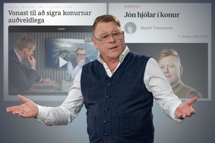 Orðinn „kokhraustur kvenhatari“ og tækifærissinni Magnús Jochum Pálsson skrifar 7. október 2024 19:06 Jón Gnarr furðar sig á fréttaflutningi um sigurvissu sína fyrir prófkjör Viðreisnar í Reykjavík fyrir næstu Alþingskosningar. Hann sé enginn kvenhatari. Vísir/Vilhelm/Grafík Jón Gnarr segir fréttamiðla mála ranga mynd af sér og snúa sigurvissu hans fyrir prófkjör Viðreisnar upp í yfirgang. Þingmaður Viðreisnar hafi tekið fréttaflutninginn gagnrýnilaust upp, skammað hann og gefið í skyn að hann væri tækifærissinni. Þetta kemur fram í færslu Jóns á Facebook í dag þar sem hann svarar fyrir yfirlýsingar sínar í Spursmálum hjá Stefáni Einari Stefánssyni í síðustu viku. „Ég er ekki orðinn pólitíkus, bara búinn að tilkynna ákvörðun og strax farinn að vekja áhuga og jafnvel ugg. Þarf greinilega að muna eftir Miranda aðvöruninni,“ segir hann í færslunni. Þar vísar hann til Miranda-réttinda sem bandarískir lögreglumenn lesa upp fyrir þá sem þeir handtaka. Hinn grunaði er þá varaður við því að hann hafi rétt á að þaga og að allt sem hann segi megi nota gegn honum fyrir dómi. Í færslunni segir Jón að hann sé skyndilega orðinn „kokhraustur kvenhatari sem ræðst á konur með yfirgangi og frekju“ og telur hann það ólíkt sér. Óánægður með flokksfélaga sinn En Jón virðist ekki bara óánægður með fyrirsagnir fréttamiðlanna heldur einnig viðbrögð flokksfélaga síns, Hönnu Katrínar Friðrikssons, Reykjavíkurþingmanns og þingflokksformanns Viðreisnar, við fréttunum. „Starfandi þingmaður er búinn að senda mér tóninn líka og snupra mig, segir að ég sé nú ekki fyrsti freki kallinn sem vill fá rauðan dregil og allt gert fyrir sig og gefur líka í skyn að ég sé tækifærissinni sem sé að reyna að nýta mér þann gríðarlega meðbyr sem sé með Viðreisn núna,“ segir Jón. Þá tekur hann sérstaklega fram að hann sé bara sjálfstætt starfandi listamaður ekki forstjóri fyrirtækis, forsvarsmaður samtaka, þingmaður eða í annarri opinberri valdastöðu. Þar að auki séu kosningar ekki áætlaðar fyrr en eftir átta til tíu mánuði. „Kannski kall en samt bara kall útí bæ,“ segir hann svo. Allt í lagi að kitla en ekki að hrinda Færsluna endar hana svo á leikritsuppsetningu á hluta viðtalsins í Spursmálum þar sem Stefán Einar spurði hann út í væntanlegar Alþingiskosningar og prófkjör. „Blaðamaður: Heldur þú að þú vinnir þetta auðveldlega? Ég: Ég vonast til þess já. Og ég vil reyna að komast út úr þessu, gegnum þetta án þess að valda einhverjum sárindum eða stíga á einhverjar tær. Mér finnst allt í lagi að pikka í fólk og kitla það en mér finnst annað að hrinda fólki. Ég geri stóran mun þarna á. Mér finnst þetta bara spennandi. Ég hef aldrei tekið þátt í svona.“ Jón spyr svo hvað felist í þessum orðum sem gefi tilefni til slíkra viðbragða. Viðreisn Fjölmiðlar Alþingiskosningar 2024 Mest lesið Fátækari eftir að hafa svindlað á ferðakonum Innlent Hvar er opið á aðfangadag? Innlent Tveir lögreglumenn sprengdir í loft upp Erlent Blússandi hagvöxtur í Bandaríkjunum Erlent Minni rekstrarkostnaður fyrir eigendur bensínháka Innlent Bæta við allt að 200 íbúðum og mathöll í Spöngina Innlent Einn fluttur á sjúkrahús eftir bílslys Innlent Foreldrar skipverjans fá áheyrn í Hæstarétti Innlent Maður í umferðarslysi reyndist fíkniefnasali Innlent Arion banki varar við svikaherferð Innlent Fleiri fréttir Gleðileg jól, kæru lesendur Einn fluttur á sjúkrahús eftir bílslys Skiluðu hagnaði á kosningaári Hátíðarveisla á kaffistofu Samhjálpar: „Það er ró og friður yfir fólki“ Björgunarsveitin kölluð út í fokverkefni Grjóthrun undir Eyjafjöllum Fátækari eftir að hafa svindlað á ferðakonum Arion banki varar við svikaherferð Innanlandsflugi aflýst Foreldrar skipverjans fá áheyrn í Hæstarétti Hvar er opið á aðfangadag? Innflytjendamálin almenningi efst í huga Bæta við allt að 200 íbúðum og mathöll í Spöngina Maður í umferðarslysi reyndist fíkniefnasali Minni rekstrarkostnaður fyrir eigendur bensínháka Hafnar „jólakveðju“ ríkisins Hefði þurft hjólbörur undir öll verðlaunin sín Ýmis ráð til taugatrekktra á Þorláksmessu Ekkert því til fyrirstöðu að Ásthildur Lóa verði aftur ráðherra Óvissa um ráðherraskipan og skata fyrir byrjendur Maðurinn fundinn Sigríður Halldórsdóttir nýr ritstjóri Kastljóss Íslendingur í gæsluvarðhaldi í Kólumbíu vegna gruns um kynferðisbrot Forsætisráðuneytið eyddi meiru í almannatengla í fyrra en í ár Inkalla snuð vegna of mikils magns BPA-plastefna Svanhildur Sif heiðruð Falskar netverslanir: Auglýsir rýmingarsölu nokkrum dögum eftir opnun Meðallaun upplýsingafulltrúa hækkuðu hlutfallslega mest Skötuilmurinn leggst yfir landið og Samkeppniseftirlitið ætlar að fylgjast vel með bensínverðinu Áfram auknar líkur á eldgosi Sjá meira