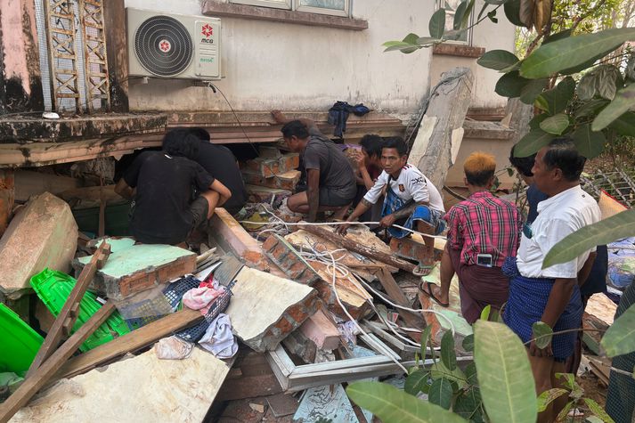 Mjanmar Náttúruhamfarir Eldgos og jarðhræringar Taíland Tengdar fréttir Á annað hundrað látnir í Mjanmar Að minnsta kosti 144 eru látnir og 732 særðir eftir að jarðskjálftar af stærðinni 7,7 og 6,4 riðu yfir Mjanmar í morgun. Níu hið minnsta eru látnir í nágrannaríkinu Taílandi og í höfuðborg þess Bangkok hrundi háhýsi í byggingu. 28. mars 2025 22:07 Óttast að mörg hundruð séu látin Að minnsta kosti 20 eru látnir eftir að jarðskjálftar af stærðinni 7,7 og 6,4 riðu yfir Mjanmar í morgun. Skjálftarnir hafa valdið gríðarlegri eyðileggingu, bæði í Mjanmar og í Bangkok á Taílandi. 28. mars 2025 10:44 43 saknað eftir 7,7 stiga skjálfta í Mjanmar Jarðskjálfti af stærðinni 7,7 skók Mjanmar í morgun. 28. mars 2025 07:27 Mest lesið „Ég hef aldrei upplifað annan eins harm“ Innlent Gaf fingurinn á Miklubraut Innlent Breiddi út faðminn fyrir rasista: „Þið þurfið ekki að biðjast afsökunar á að vera hvít lengur“ Erlent Hrindir af stað söfnun fyrir móður stúlkunnar sem lést í Suður-Afríku Innlent Hundrað og fjörutíu milljarða bótakrafa á Samherja sé súrrealísk Innlent „Þetta hefur verið þungur tími“ Innlent Ný könnun Maskínu: „Væri alveg ný staða í íslenskum stjórnmálum“ Innlent Ársæll hringdi beint í utanríkisráðherra eftir fundinn Innlent Sprengdu rússneskan hershöfðingja í loft upp í Moskvu Erlent Nýr ritstjóri stöðvaði umfjöllun um brottvísanir Trump Erlent Fleiri fréttir Nýr ritstjóri stöðvaði umfjöllun um brottvísanir Trump Breiddi út faðminn fyrir rasista: „Þið þurfið ekki að biðjast afsökunar á að vera hvít lengur“ Sprengdu rússneskan hershöfðingja í loft upp í Moskvu Undirbúningur árásarinnar stóð yfir í marga mánuði Trump skipar sendifulltrúa fyrir Grænland Segir unnið að því að móta sameiginlega nálgun Bandaríkjanna, Úkraínu og Evrópu Sýknaður af nauðgun eftir að hafa verið skimaður fyrir sjaldgæfri svefnröskun Málið sem Trump getur ekki losað sig við Grunaður um manndráp eftir að tveggja ára drengur féll úr blokk Fóru um borð í vélvana rússneskt skip Baulað á Albanese á minningarathöfn á Bondi-strönd Kvarta yfir ritskoðun Epstein-skjala: „Við vitum ekki hvað við vitum ekki“ Níu skotnir til bana á krá Sextán ára fékk greitt fyrir að færa Epstein stúlkur Ljósmyndir horfnar úr Epstein-skjölunum, þar á meðal ein af Trump Vilja dauðarefsingu af borðinu vegna hagsmunaáreksturs ráðherra Pútín sagður hafa valið Witkoff Gerðu umfangsmiklar árásir gegn ISIS í Sýrlandi Það helsta úr fyrsta skammti Epstein-skjalanna Epstein-skjölin birt Draga tilvist neðanjarðarhafs á Títan í efa Réðust á skip úr skuggaflotanum þúsundir kílómetra frá Úkraínu Enn fleiri myndir úr safni Epsteins: „En hún vill þúsund dali fyrir hverja stúlku“ Trump vill til tunglsins fyrir 2028 Herða reglur og ráðast í endurkaup á skotvopnum Morðinginn í Brown háskóla fannst látinn Evrópa samþykkir 90 milljarða evra lán til Úkraínu Rannsaka tengsl skotárásarinnar við annað morð Sex um borð í einkaþotu sem hrapaði Beita dómara ICC refsiaðgerðum vegna Ísrael Sjá meira