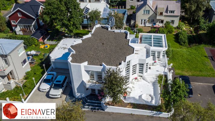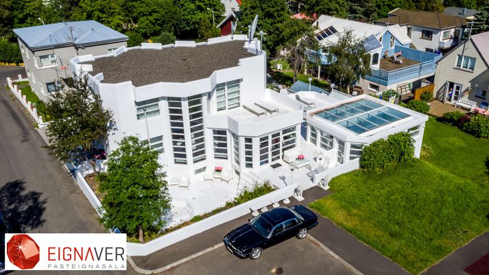 Centro-hjónin selja Beverly Hills-villuna Svava Marín Óskarsdóttir skrifar 2. október 2025 13:56 Húsið er byggt árið 1985 í anda Beverly Hills. Hjónin, Vilborg Jóhannsdóttir og Úlfar Gunnarsson, eigendur tískuvöruverslunarinnar Centro, hafa sett tæplega fimm hundruð fermetra einbýlishús sitt við Helgamagrastæti á Akureyri á sölu. Um er að ræða eitt glæsilegasta hús bæjarins, reist árið 1985. Ásett verð er 259,5 milljónir. Húsið er sérstakt fyrir margar sakir og minnir í raun frekar á eign í Beverly Hills í Bandaríkjunum en hefðbundið heimili á Íslandi. Úlfar reisti það sjálfur á sínum tíma og hugaði vandlega að hverju smáatriði með innblástur úr vinsælu sjónvarpsþáttunum Dallas. Fjölmiðlamaðurinn Sindri Sindrason heimsótti Úlfar í sjónvarpsþættinum Heimsókn árið 2022, þar sem hann kynnti sér sögu hússins og hönnun þess. Klippu úr þættinum má sjá hér að neðan. Lúxusvilla með partýhúsi Húsið er 428 fermetrar, þar af 51 fermetra tvöfaldur bílskúr, og stendur á þremur hæðum. Við hlið hússins er sérhannað partýhús með innandyra heitum potti, auk líkamsræktar- og hobbýherbergis. Aðalhæðin skiptist í hol, snyrtingu, stofu og borðstofu, sjónvarpsstofu, eldhús og þvottahús. Glæsilegur stigi liggur upp á efri hæðina. Útgengi er á verandir á fleiri en einum stað og steyptur pallur liggur austan- og sunnanmegin við húsið. Flísar eru á öllum gólfum. Á efri hæðinni er hjónaherbergi með fataherbergi, sérbaðherbergi og útgengi á stórar svalir. Þar eru einnig tvö barnaherbergi og rúmgott baðherbergi. Í kjallara er fullbúin 120 fermetra íbúð með sérinngangi. Í heildina telur eignin sjö svefnherbergi og fjögur baðherbergi. Nánari upplýsingar um eignina má nálgast á fasteignavef Vísis. Akureyri Fasteignamarkaður Hús og heimili Mest lesið „Rúrik Gíslason hefur sagt hæ við mig“ Lífið Jafet Máni selur íbúð með ræktarsal Lífið Centro-hjónin selja Beverly Hills-villuna Lífið Ertu sauður? Fimm ráð sem geta forðað þér frá hjarðhegðun Lífið Ástarsenur í viku tvö með stórleikaranum Lífið Segir spjallmenni Meta herja kynferðislega á börn Lífið Kókaínklásúla í kaupmálanum tryggir Keith rúman milljarð Lífið Rússar meina kvikmyndagerðarmanni að koma til Íslands Bíó og sjónvarp Eitt rými sem má alls ekki mynda í Alþingishúsinu Lífið „Þarf ekkert að klífa Everest til að finnast ég einhvers virði“ Lífið Fleiri fréttir Eitt rými sem má alls ekki mynda í Alþingishúsinu Centro-hjónin selja Beverly Hills-villuna Ástarsenur í viku tvö með stórleikaranum Segir spjallmenni Meta herja kynferðislega á börn „Rúrik Gíslason hefur sagt hæ við mig“ Jafet Máni selur íbúð með ræktarsal „Þarf ekkert að klífa Everest til að finnast ég einhvers virði“ Ertu sauður? Fimm ráð sem geta forðað þér frá hjarðhegðun Hvenær verður afbrýðisemi út í fortíð maka að þráhyggju? Samhengið með Sif: „Það má blanda saman hámenningu og dægurmenningu“ Hefðbundið ítalskt „Pesto Alla Genovese“ Úrslitaspurningin var um letigarð „Amma mín, ert þú nokkuð dáin?“ Ómar Örn og Nanna selja á eftirsóttum stað í miðbænum Í miðjum tökum kom í ljós að Ragnhildur og Halldór voru náskyld Kókaínklásúla í kaupmálanum tryggir Keith rúman milljarð Friðarsúlan tendruð í nítjánda sinn 9. október Sindri og Albert selja Skerjafjarðarslotið Skrýtið næturlíf og ævintýri sem fylgja partýjunum „Ég er mjög hrædd um að einhver ræni mér“ Var á klóinu þegar skilaboðin bárust og hélt að ferlinum væri lokið Leið yfir hana umkringd nöktum konum Herra Skepna sló Hafþór utan undir Danir taka ekki afstöðu gegn Ísrael Aðstoðarþjálfarinn reyndist ekki vera transkona Hnetukjúklingurinn hennar Höllu Kristrún meðal hundrað rísandi stjarna Time Er hún með „Bennifer“ hálsmen? Páskaungi á leiðinni hjá Kristínu og Sverri Hefur engan áhuga á góðlátlegum orðum Watson Sjá meira