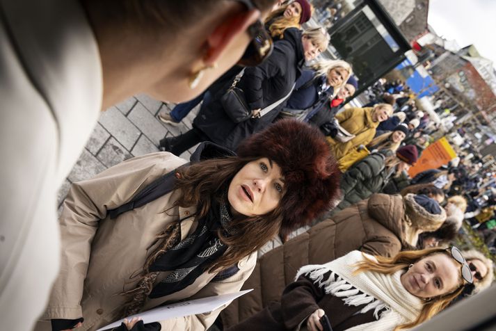 Elskar að klæðast klútum Svava Marín Óskarsdóttir skrifar 7. nóvember 2025 15:29 Aldís Páls „Klúturinn er algjört trend núna, og notkun hans hefur tekið alveg nýja stefnu. Sem tískuáhugakona er ég svo peppuð og stolt að sjá alls konar íslenskar konur bera þennan klút,“ segir tískudrottningin Elísabet Gunnarsdóttir um tískubylgjuna sem Halla Tómasdóttir hrinti af stað í kosningabaráttunni síðasta sumar. Á kvennafrídaginn, 24. október síðastliðinn, hófu þær Andrea Magnúsdóttir fatahönnuður, Elísabet Gunnarsdóttir, Aldís Pálsdóttir ljósmyndari og Nanna Kristín Tryggvadóttir, framkvæmdastjóri Bestseller á Íslandi — vinkonur og konurnar á bak við góðgerðarverkefnið Konur eru konum bestar — sölu á sérstökum silkiklút til styrktar Hollvinum Grensás. Klúturinn er 90x90 sentímetrar úr silki. Nýstárlega tískubylgja „Ég hef notað klúta í gegnum árin á marga mismunandi vegu og finnst þeir frábærir – bæði fyrir mig sjálfa og sem falleg gjöf. Ég er sérlega montin af því að selja klút í ár, því hann gefur mikið fyrir peninginn. Þetta er bæði fylgihlutur og hárskraut, sem belti – bæði yfir blazer og buxur – á töskuna og um hálsinn, en líka sem bol þegar veðrið leyfir. Klúturinn fer aldrei úr tísku,“ segir Elísabet. „Við sjáum hann sem flík sem konur geta klæðst með stolti á næsta kvennafrídegi, 17. júní eða öðrum hátíðisdögum. Hann sameinar klassíska íslenska einfaldleika og alþjóðlegan tískusmekk,“ bætir hún við. Spurð hvaðan hugmyndin að hönnuninni komi, segir Elísabet að þær hafi viljað stíga út fyrir hið hefðbundna í tilefni þess að 50 ár voru liðin frá fyrsta kvennafrídeginum: „Við ákváðum að hafa klútinn hvítan, þar sem liturinn vísar til táknrænnar merkingar samstöðu kvenna í gegnum tíðina. Fánalitirnir í jaðri klútsins ramma inn þann kraft og elju sem íslenskar konur hafa sýnt í baráttunni síðustu 50 ár, og talan 50 prýðir tvö horn klútsins til að minna á afmæli dagsins.“ Elísabet segir að þær hafi áður hannað boli fyrir verkefnið, en nú hafi verið kominn tími til að breyta til:„Við höfum alltaf lagt upp úr því að gera góðgerðarfatnað sem er jafnframt tískuvænn og með notagildi. Að þessu sinni vildum við gera eitthvað öðruvísi — og klúturinn átti svo sannarlega vel við núna. Hann er bæði trend í dag og klassískt tískuatriði sem fer aldrei úr tísku; það fer bara eftir tímabilinu hvernig hann er notaður.“ Hér að neðan má sjá myndir frá þesum sögulega degi: Aldís Páls Aldís Páls Aldís Páls Aldís Páls Aldís Páls Aldís Páls Aldís Páls Aldís Páls Mest lesið Valdi fallegasta karlmanninn Lífið „Innsýn í djammlífið og hvernig Gugga í gúmmíbát djammar“ Lífið Ástin blómstrar hjá Ara Edwald og Ingibjörgu Lífið Kynþokkafyllstu karlmenn landsins Lífið Algjör óvissa með Söngvakeppnina Lífið „Veit að pabbi væri stoltur af mér“ Lífið Íslenskur Taskmaster kemur í vor Bíó og sjónvarp Ólafur og Hildur selja í Vesturbænum Lífið „Ekkert of gott að vera of grannur“ Lífið „Þegar ég var átján ára gömul fæ ég aðra ábendingu“ Lífið Fleiri fréttir Elskar að bera klúta Valdi fallegasta karlmanninn Algjör óvissa með Söngvakeppnina Ólafur og Hildur selja í Vesturbænum „Ekkert of gott að vera of grannur“ Góð fjölskyldustund öll föstudagskvöld Nýsjálenskur James Bond-leikstjóri látinn Fundaði með rabbína til að biðjast afsökunar á gyðingaandúðinni „Þegar ég var átján ára gömul fæ ég aðra ábendingu“ „Innsýn í djammlífið og hvernig Gugga í gúmmíbát djammar“ Ástin blómstrar hjá Ara Edwald og Ingibjörgu „Veit að pabbi væri stoltur af mér“ Kynþokkafyllstu karlmenn landsins Love Island bomba keppir í Eurovision „Við vitum í raun ekkert hvað bíður okkar“ Finnur fyrir skoðunum fólks á aldursmuninum Öskraði „pegga“ og salurinn grét úr hlátri „Ég vil verða eins og þú þegar ég verð stór“ Yfirgáfu salinn þegar gæslunni var sigað á „heimska“ ungfrú Mexíkó Nablinn ræðir um naflann fræga: Enginn gröftur en stundum skvört Sóldís Vala hafnaði í öðru sæti í Miss Earth Klettaskóli og Langholtsskóli áfram í úrslit Skrekk Hálft ár af hári Draumur að vinna í listrænum heimi Stokkhólms Einstök ástarsaga: „Ástin okkar var nógu sterk til að yfirstíga hindranir“ Sköpunarkrafturinn var allsráðandi í Höfuðstöðinni Taka einbýlishús í Garðabænum í gegn Hélt að allir væru ættleiddir Rjóminn gleymdist en guð var að fylgjast með Bað fjóra menn um lífssýni en fékk föðurinn óvænt í fangið Sjá meira