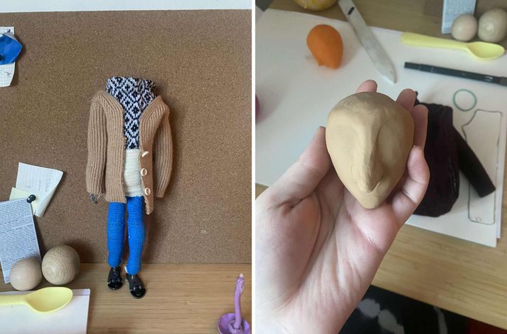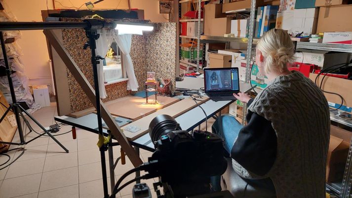 Lagið „Það sem jólin snúast um“ er af jólalagaplötunni Nokkur jólaleg lög eftir GDRN og Magnús Jóhann sem kom út í fyrra. Tónlistarmyndbandið er hins vegar nýkomið út en þar fá áhorfendur fallega, sorglega jólasögu beint í æð líkt og sjá má hér að neðan. Sagan á bak við tónlistarmyndbandið er nokkuð skemmtileg en blaðamaður heyrði hljóðið í Kristnýju til að forvitnast hvernig myndbandið kom til og hvernig ferlið var. Stillumyndagerð, verðlaunamynd og skiptidíll „Ég hef alltaf haft mikinn áhuga á stillumyndagerð þar sem flestar af mínum uppáhalds myndum eru annað hvort teiknimyndir eða stillumyndir, til dæmist hefur Coraline alltaf verið í uppáhaldi þó ég hafi fengið martraðir þegar ég fór fyrst á hana í bíó sem barn,“ segir Kristný Eiríksdóttir um innkomu sína inn í stillumyndagerð (e. stop motion). Vínylspilarinn hreyfður. Kristný fór í fornám í Myndlistarskóla Reykjavíkur árið 2021 og heillaðist þar af hinum ýmsu fögum: teikningu, ljósmyndun og skúlptúrgerð. „Það var ekki fyrr en ég átti að finna hugmynd að útskriftarmynd fyrir Kvikmyndaskólann þegar ég fékk smá klikkaða hugmynd í kollinn: „Hvað ef ég myndi bara gera stillumynd?“ Ég hugsaði með mér að það væri í raun ekki betri tíma til að læra þetta og eftir það var ekki aftur snúið. Ég hafði aldrei áður gert neitt þessu líkt, ákvað að henda mér út í djúpu laugina og rak mig oft á,“ segir hún. Lokaverkefni Kristnýjar var stillustuttmyndin Allir hundar deyja einir sem fjallar um stúlkuna Tíu og hundinn Snata. Við gerð myndarinnar vantaði Kristnýju hjálp með tónlistina sem átti að hljóma undir. „Ég hafði samband við Magnús Jóhann því mig vantaði tónlist fyrir útskriftarmyndina mína og vantaði líka einhvern til að hjálpa mér með að útsetja lag sem ég samdi fyrir myndina. Karin Rós Wiium, framleiðandi og kær vinkona, hvatti mig til að hafa samband við hann. Magnúsi leist svo vel á myndina að hann var til í að koma inn í það verkefni í staðinn fyrir að ég myndi gera tónlistarmyndband við lag hans og Guðrúnar sem var bara „win-win“ fyrir alla,“ segir Kristný. Myndin hlaut afar góðar viðtökur, var sýnd á bæði Alþjóðlegri kvikmyndahátíð í Reykjavík og síðan á kvikmyndahátíðinni PIFF á Ísafirði. Á þeirri seinni hlaut Kristný verðlaun fyrir bestu leikstjórn íslenskra stuttmynda. Allir hundar vilja deyja einir var útskriftarverkefni Kristnýjar úr Kvikmyndaskólanum. Allt í rammanum handgert Stillumyndagerð er yfirleitt nokkuð tímafrek og getur tekið langan tíma að gera hverja senu þó stutt sé. Gerð tónlistarmyndbandsins teygði sig því alla leið aftur að sumri. „Þetta tók smá tíma, hugmyndavinnan fór í gang um sumarið og svo byrjaði hröð framleiðsla í september. Tökurnar sjálfar byrjuðu ekki fyrr en í nóvember en ég myndi segja að þetta tók þrjá mánuði þegar allt er saman lagt. Ein mínúta á mánuð sirka. En ég var í vinnu til hliðar svo þetta var unnið smá slitrótt,“ segir Kristný. Stjörnurnar þrjár: Guðrún Ýr Eyfjörð, Kristný Eiríksdóttir og Magnús Jóhann Ragnarsson. Stillumyndagerð er ekki fyrir óþolinmóða að sögn Kristnýjar. „Þetta er heldur betur tímafrekt og kannski ekki fyrir óþolinmóða. Ég get sagt að þetta var miklu erfiðara en ég hélt og ég tek ofan af öllu ótrúlega flottu listamönnum sem hafa hafa búið til heilu bíómyndinar. En mér finnst þetta vera svo mikið listaverk þessi stillugerð. Þetta sameinar allt frá sögugerð, kvikmyndatöku, skúlptúrgerð, arkitektúr, smíðum, málun. Allt sem þú sérð í rammanum var skapað og handgert af einhverjum,“ segir hún. Hvað tók lengstan tíma? „Leikmyndin tók lengstan tíma og að skipta um leikmyndir milli sena. Það er bæði tímafrekt og styrkleikar mínir liggja ekki þar. Það krefst smíðavinnu og verkfæranotkunar því það er mikilvægt að allt sé pikkfast því ekkert má hreyfast milli mynda. Ég er lánsöm að eiga frábæran pabba sem gat hjálpað mér mjög mikið og er mjög flinkur í leikmyndagerð. Hefði ekki getað gert þetta án hans,“ segir Kristný. Búningar og leirhöfuð úr myndbandinu. Út fyrir þægindarammann á nýju ári Útskriftarmynd Kristnýjar komst á þrjár kvikmyndahátíðir og bíður hún enn svara frá nokkrum hátíðum til viðbótar. Næst á dagskrá er að taka sér smá hvíld frá verkefnum en handan við sjóndeildarhringinn stefnir hún á tónlistarútgáfu á nýju ári. „Ég er rosalega til í að hvíla mig smá eftir þetta verkefni og njóta jólanna. En á sama tíma er ég mjög bjartsýn og spennt fyrir næsta ári,“ segir hún. Leikstjóri og tökumaður að störfum. „Ég er nú reyndar aðeins búin að vera að dýfa tánum í tónlistarheiminn og stefni á að reyna komast aðeins út úr þægindarammanum þar og fara kannski að gefa út einhver lög. Ég stefni allavega á að gefa út lagið sem ég samdi og Magnús útsetti á næsta ári,“ bætir hún við. „Svo er aldrei að vita hvort ég vinni eitthvað annað stilluverkefni á næstu árum. Maður er alltaf opin fyrir verkefnum.“