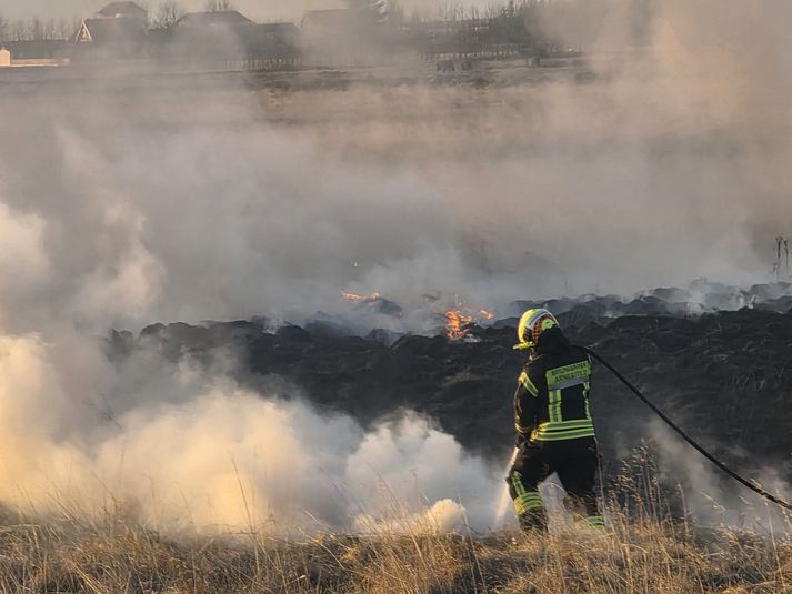 Berjast við talsverðan sinueld við Selfoss Elín Margrét Böðvarsdóttir skrifar 6. janúar 2026 14:57 Slökkviliðsmenn hjá Brunavörnum Árnessýslu berjast við sinueld sunnan við Selfoss. Vísir/Magnús Hlynur Brunavarnir Árnessýslu vinna nú að slökkvistarfi rétt sunnan við Selfoss þar sem töluverður sinueldur brennur. Tilkynning barst um eldinn þegar klukkan var um korter yfir tvö í dag. Þetta staðfestir Pétur Pétursson, slökkviliðsstjóri Brunavarna Árnessýslu í samtali við Vísi. „Þetta er talsverður eldur. Það er þurrt úti núna og létt gola þannig að þó að jörð sé frosin þá brennur nú sinan glatt. Það er trjárækt þarna ekki langt frá þannig ég hef nú trú á að það takist að leysa þetta hratt og örugglega. En það er þó ekki á vísan að róa í því, ef að það er einhver gustur með og sinan er þurr og frostið gerir okkur svolítið erfitt fyrir stundum varðandi vinnu með vatn,“ segir Pétur. Slökkvistarf stendur yfir á vettvangi sinubrunans á Selfossi.Vísir/Magnús Hlynur „En alla veganna erum við með sveit vaskra manna að vinna í þessu núna og vonum að það skili góðum árangri,“ segir Pétur. Hvorki, fólki, mannvirkjum né skepnum ætti að stafa hætta af eldinum líkt og staðan er nú að sögn Péturs. Ekki liggur ljóst fyrir hvað olli upptökum eldsins að svo stöddu, en samkvæmt upplýsingum fréttamans á vettvangi leikur grunur á um að kviknað hafi í út frá skoteldi. Í dag er þrettándinn, sem er jafnframt síðasti dagurinn í bili þar sem leyfilegt er að sprengja flugelda. Pétur biðlar til almennings og þeirra sem hyggjast sprengja flugelda eða fara með eld í tilefni þrettándans að fara varlega, ekki síður í ljósi aukinnar hættu á sinubruna. Þónokkurn reyk leggur einnig upp frá glóandi jörðinni.Vísir/Magnús Hlynur Fréttin hefur verið uppfærð. Árborg Slökkvilið Mest lesið Gerðu áhlaup á rússneskt skuggaskip í efnahagslögsögu Íslands Erlent Rússar senda herskip til móts við olíuskip elt af Bandaríkjunum Erlent „Ég efa að NATO yrði til staðar fyrir okkur“ Erlent Börnin verði heima einn og hálfan dag í viku Innlent Útlendingastofnun tilkynnir starfsmanninn til lögreglu Innlent Björg blandar sér í oddvitaslaginn í borginni Innlent Kosningavaktin 2026: Landsmenn kjósa sér sveitarstjórnir Innlent Allra augu á Íslandi og Atlantshafinu Erlent Tuddi hlaut dóm fyrir að níðast á nautgripum sínum Innlent „Svartir sauðir misnoti réttindin“ og Reykjavík ræðst í aðgerðir Innlent Fleiri fréttir „Svartir sauðir misnoti réttindin“ og Reykjavík ræðst í aðgerðir Hildur hlýtur Íslensku bjartsýnisverðlaunin Rússneskt skip í íslenskri lögsögu og nemendur eiga erfitt með símabann Kleip og sparkaði í fjölda lögreglumanna og látin dúsa í einangrun mánuðum saman Árekstur á Álftanesvegi Tvennu vísað úr landi Munu skoða hvort tilefni sé til að hægja á inntöku nýrra barna Útlendingastofnun tilkynnir starfsmanninn til lögreglu Hægt að skíða í Ártúnsbrekku síðar í dag Börnin verði heima einn og hálfan dag í viku Mikill áhugi á fyrsta sæti hjá Viðreisn Stefán vill verða varaformaður Vara við norðaustan hríð á sunnanverðu landinu Jónas Már vill leiða Samfylkingu í Kópavogi Tuddi hlaut dóm fyrir að níðast á nautgripum sínum Björg blandar sér í oddvitaslaginn í borginni Ekkert nema hégómi hjá Trump að vilja setja bandaríska fánann á Grænland Eldur kveiktur í lyftu Segir skynsamlegt að anda með nefinu varðandi Grænland Sami oddviti í fyrsta sinn í tæp þrjátíu ár Skautasvell á Stokkseyri slær í gegn Vill lækka veikindahlutfall opinberra starfsmanna Týnda göngufólkið reyndist vera í Reykjavík Engir símar á neyðarfundi og ráðherrar bregðast við skaupinu Hildur Björnsdóttir óskoraður oddviti í Reykjavík Viðreisn býður fram á Akureyri í fyrsta sinn Án leyfis en titlar sig enn sem lækni Áfram auknar líkur á eldgosi Rafmagn komið á að nýju í Garðabæ Berjast við talsverðan sinueld við Selfoss Sjá meira
