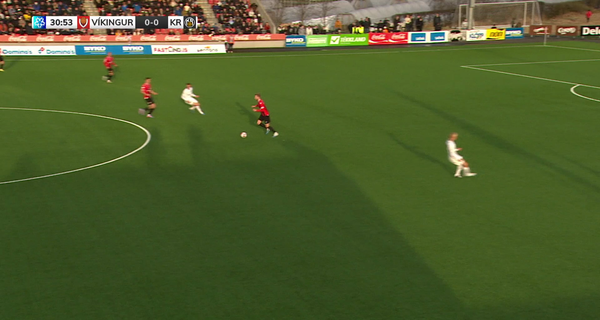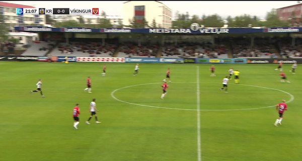 KR-ingurinn Arnþór Ingi Kristinsson fékk þrumuskot á mjög viðkvæman stað í leik KR og Grindavíkur í 15. umferð Pepsi Max deildar karla í fótbolta.