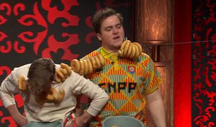 Safna kleinuhringjum með höfðinu Í síðasta þætti af Taskmaster fengu keppendur heldur skrautlegt verkefni og var það að safna saman kleinuhringjum. Eina reglan var að það var ekki í boði að nota hendur. Taskmaster
