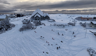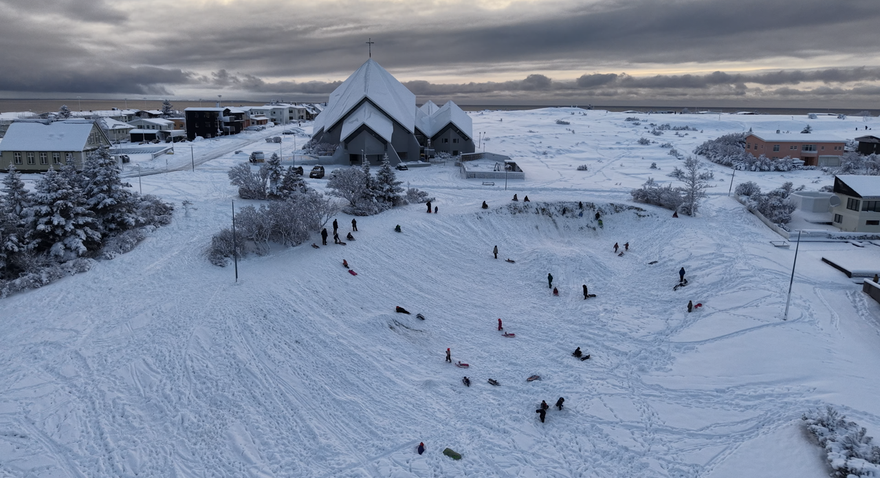 Paradís á Seltjarnarnesinu Börnin á Seltjarnarnesinu og víðar njóta þess að renna sér í Plútó-brekku á Nesinu. Það hreyfir varla vind, nýfallinn snjór - sannkölluð paradís. Fréttir