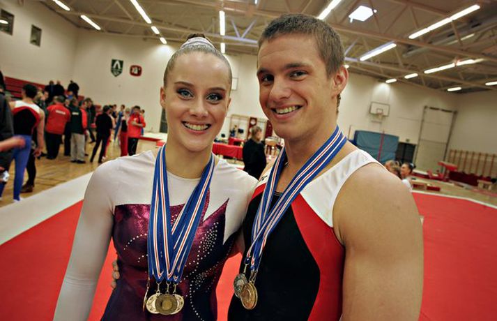 Íslandsmótið í áhaldafimleikum fór fram í Versölum í Kópavogi um helgina en Viktor Kristmannsson og Thelma Rut Hermannsdóttir, bæði úr Gerplu, stóðu uppi sem sigurvegarar helgarinnar. Bæði urðu þau Íslandsmeistarar í fjölþraut á laugardaginn en keppt var í einstökum greinum í gær. Viktor fékk þar gull í tveimur greinum og silfur í seinni. Thelma Rut fékk eitt gull og tvö silfur. Daníel Rúnarsson, ljósmyndari Vísis og Fréttablaðsins, var á staðnum og tók þessar myndir.