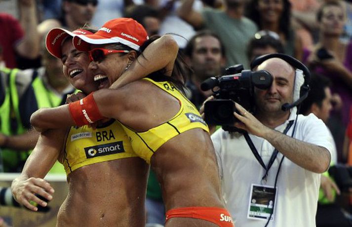 Tvöfaldur sigur hjá Brasilíu á HM í strandblaki, myndir 20. júní 2011 12:00 Heimsmeistaramótinu í strandblaki í karla og – kvennaflokki lauk í Róm á Ítalíu um helgina. AFP Heimsmeistaramótinu í strandblaki í karla og – kvennaflokki lauk í Róm á Ítalíu um helgina. Larissa Franca og Juliana Felisberta Silva frá Brasilíu sigruðu í kvennaflokknum og Brasilía fagnaði einnig sigri í karlaflokknum þar sem að Emanuel Rego og Alison Cerutti stóðu uppi sem sigurvegarar. Rego og Cerutti léku gegn löndum sínum Ricardo Santos og Marcio Araujo í úrslitum í karlaflokknum og höfðu betur 21-16 og 21-15. Í kvennaflokknum léku Misty May-Treanor og Kerri Walsh frá Bandaríkjunum til úrslita gegn Franca og Silva. Sá leikur fór 21-17, 13-21 og 16-14.AFP Erlendar Mest lesið Bíll Shaquille O'Neal enn ófundinn Körfubolti Óskar Hrafn fer ekki fet Íslenski boltinn Hákon Rafn hélt hreinu þegar Brentford flaug áfram Enski boltinn Epicbet sýni handboltann í leyfisleysi: „Enda ólöglegar síður“ Handbolti Arteta óttast ekki að keppinautarnir steli undrabarninu frá honum Enski boltinn FH bíður með að tilkynna nýjan þjálfara Íslenski boltinn Spánn og Þýskaland mætast í úrslitum Fótbolti Dagskráin í dag: Íslenskur körfubolti í sviðsljósinu Sport Verstappen telur sig ekki geta barist um titilinn Formúla 1 Anguissa hetja meistaranna Fótbolti Fleiri fréttir Sú leikjahæsta leggur skóna á hilluna og klárar læknanámið Stuðningsmaður RB Leipzig lést á bikarleiknum í gærkvöldi Epicbet sýni handboltann í leyfisleysi: „Enda ólöglegar síður“ Arteta óttast ekki að keppinautarnir steli undrabarninu frá honum FH bíður með að tilkynna nýjan þjálfara Bíll Shaquille O'Neal enn ófundinn Dagskráin í dag: Íslenskur körfubolti í sviðsljósinu Óskar Hrafn fer ekki fet Spánn og Þýskaland mætast í úrslitum Anguissa hetja meistaranna Hákon Rafn hélt hreinu þegar Brentford flaug áfram Martin öflugur í góðum sigri Verstappen telur sig ekki geta barist um titilinn Jón Dagur gulltryggði sigurinn með sínu fyrsta marki Leikið á Þróttaravelli á miðvikudag Vinícius Júnior íhugar að yfirgefa Real Madríd Kaupir sér tveggja milljarða króna hús Alexander Máni með fimm mörk í tveimur leikjum og Ísland áfram Birnir frá Akureyri í Garðabæ Klobbaði íslensku strákana og fór á flug á netmiðlum Teitur inn í landsliðið Hættir með Fram Landsliðskonur aðstoðuðu ökumenn í vanda Öllum leikjum Bónus-deildar kvenna í kvöld frestað Arnar skilur ekkert í Tottenham Landsleiknum aflýst og framhaldið óljóst Bardagakapparnir vilja ólmir fá að keppa í Hvíta húsinu Segir að Slot verði að taka tvo leikmenn út úr Liverpool-liðinu Vonast til að komast í Kórinn: „Menn hafa aldrei séð annað eins“ Markvörður Inter banaði háöldruðum manni í hjólastól Sjá meira