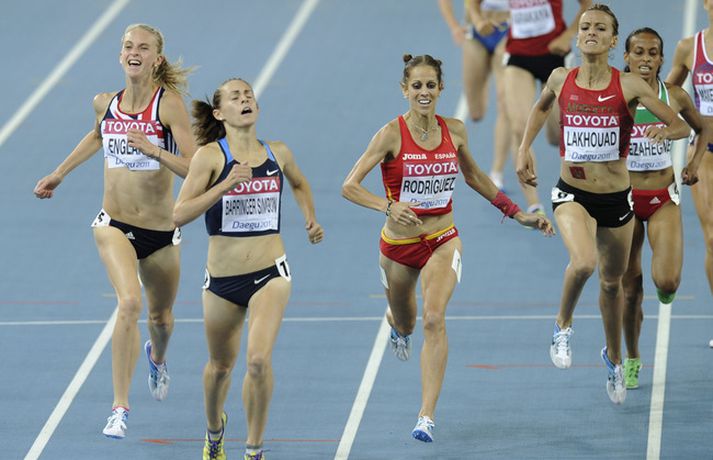Sjötta keppnisdegi Heimsmeistaramótsins i frjálsum í Daegu í Suður-Kóreu er lokið en úrslitin réðust í sex greinum í dag og þar á meðal var 400 metra grindarhlaup hjá bæði konum og körlum. Heimsmeistarar dagsins komu frá fjórum þjóðum en Bandaríkjamenn unnu þrjá heimsmeistaratitla í dag. Heimsmeistarar dagsins voru eftirtaldir: Ezekiel Kemboi frá Keníu í 3000 metra hindrunarhlaupi karla Olha Saladukha frá Úkraínu í þrístökki kvenna Jesse Williams frá Bandaríkjunum í hástökki karla Jennifer Barringer Simpson frá Bandar. í 1500 metra hlaupi kvenna Lashinda Demus frá Bandaríkjunum í 400 metra grindarhlaupi kvenna David Greene frá Bretlandi í 400 metra grindarhlaupi karla Vísir hefur tekið saman myndasafn af heimsmeisturum dagsins og fagnaðarlátum þeirra en myndirnar koma frá AP myndaþjónustunni. Myndirnar má sjá í albúminu hér að neðan. Hægt er að sjá myndirnar stærri með því að smella á þær.
