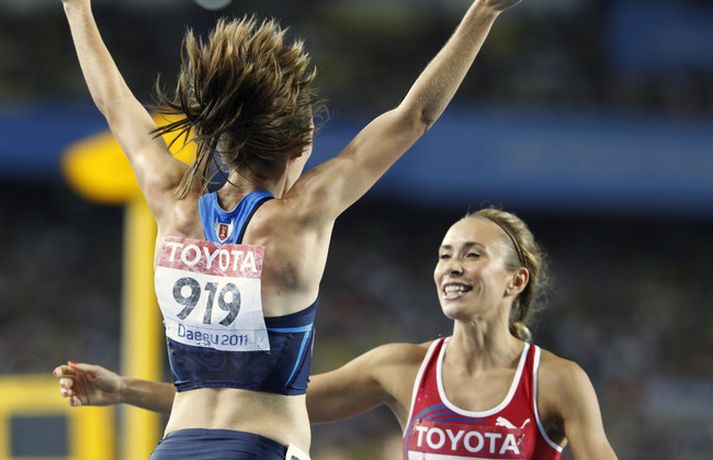 Heimsmeistarar sjötta dagsins á HM í frjálsum í Daegu - myndir Óskar Ófeigur Jónsson skrifar 1. september 2011 16:00 Olha Saladukha og Olga Rypakova fagna saman gull og silfri í þrístökki kvenna. Mynd/AP Sjötta keppnisdegi Heimsmeistaramótsins i frjálsum í Daegu í Suður-Kóreu er lokið en úrslitin réðust í sex greinum í dag og þar á meðal var 400 metra grindarhlaup hjá bæði konum og körlum. Heimsmeistarar dagsins komu frá fjórum þjóðum en Bandaríkjamenn unnu þrjá heimsmeistaratitla í dag. Heimsmeistarar dagsins voru eftirtaldir: Ezekiel Kemboi frá Keníu í 3000 metra hindrunarhlaupi karla Olha Saladukha frá Úkraínu í þrístökki kvenna Jesse Williams frá Bandaríkjunum í hástökki karla Jennifer Barringer Simpson frá Bandar. í 1500 metra hlaupi kvenna Lashinda Demus frá Bandaríkjunum í 400 metra grindarhlaupi kvenna David Greene frá Bretlandi í 400 metra grindarhlaupi karla Vísir hefur tekið saman myndasafn af heimsmeisturum dagsins og fagnaðarlátum þeirra en myndirnar koma frá AP myndaþjónustunni. Myndirnar má sjá í albúminu hér að neðan. Hægt er að sjá myndirnar stærri með því að smella á þær. Erlendar Mest lesið Óskar Hrafn fer ekki fet Íslenski boltinn Hákon Rafn hélt hreinu þegar Brentford flaug áfram Enski boltinn Spánn og Þýskaland mætast í úrslitum Fótbolti Anguissa hetja meistaranna Fótbolti Martin öflugur í góðum sigri Körfubolti Verstappen telur sig ekki geta barist um titilinn Formúla 1 Leikið á Þróttaravelli á miðvikudag Fótbolti Jón Dagur gulltryggði sigurinn með sínu fyrsta marki Fótbolti Fær þrjár milljónir á dag næstu sex árin fyrir að gera ekkert Sport Vonast til að komast í Kórinn: „Menn hafa aldrei séð annað eins“ Fótbolti Fleiri fréttir Óskar Hrafn fer ekki fet Spánn og Þýskaland mætast í úrslitum Anguissa hetja meistaranna Hákon Rafn hélt hreinu þegar Brentford flaug áfram Martin öflugur í góðum sigri Verstappen telur sig ekki geta barist um titilinn Jón Dagur gulltryggði sigurinn með sínu fyrsta marki Leikið á Þróttaravelli á miðvikudag Vinícius Júnior íhugar að yfirgefa Real Madríd Kaupir sér tveggja milljarða króna hús Alexander Máni með fimm mörk í tveimur leikjum og Ísland áfram Birnir frá Akureyri í Garðabæ Klobbaði íslensku strákana og fór á flug á netmiðlum Teitur inn í landsliðið Hættir með Fram Landsliðskonur aðstoðuðu ökumenn í vanda Öllum leikjum Bónus-deildar kvenna í kvöld frestað Arnar skilur ekkert í Tottenham Landsleiknum aflýst og framhaldið óljóst Bardagakapparnir vilja ólmir fá að keppa í Hvíta húsinu Segir að Slot verði að taka tvo leikmenn út úr Liverpool-liðinu Vonast til að komast í Kórinn: „Menn hafa aldrei séð annað eins“ Markvörður Inter banaði háöldruðum manni í hjólastól „Alltaf gaman að fá nýjar raddir inn“ Gleðifréttir fyrir Argentínumenn: Messi vill spila á HM „Sagan hefur sýnt það að ég er góður að þjálfa unga og efnilega leikmenn“ Stöðufundur í Laugardal klukkan 10:30 Enska úrvalsdeildin í jólaköttinn Nýi íþróttastjóri Kjartans stal mörgæs og endaði í fangelsi í Singapúr Tyrkneska sambandið segir dómara hafa veðjað á þúsundir leikja Sjá meira