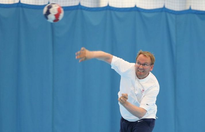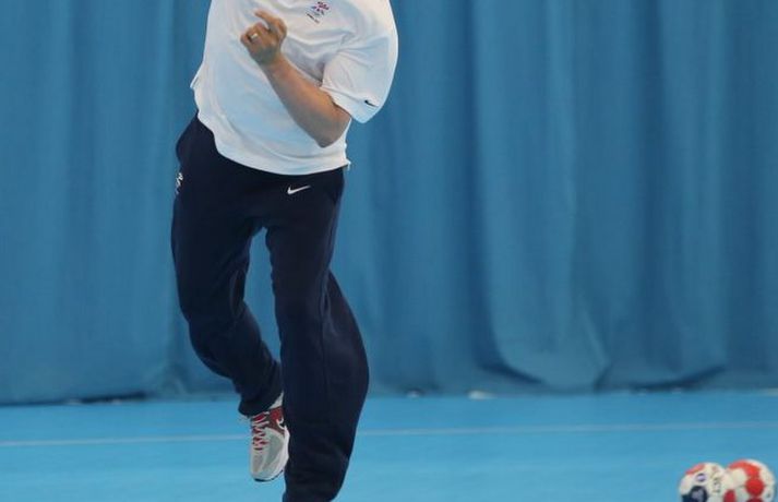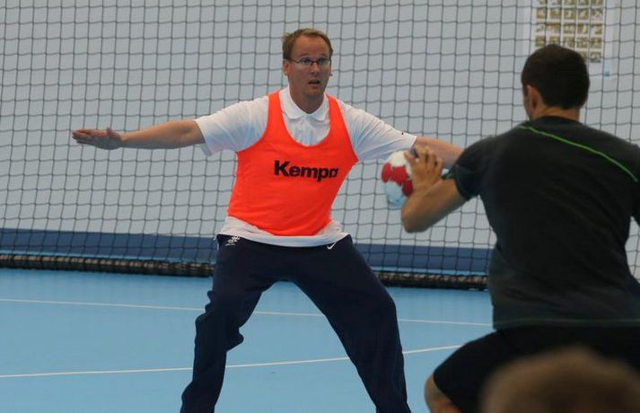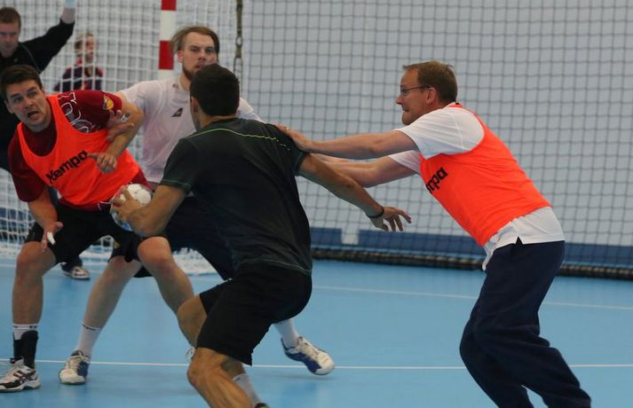 Óskar Bjarni Óskarsson, aðstoðarlandsliðsþjálfari, tók þátt í æfingu íslenska landsliðsins í gærmorgun af fullum krafti og virtist engu hafa gleymt frá árum sínum sem leikmaður. „Ég viðurkenni að ég var kannski ekki besti varnarmaðurinn á æfingunni. Það fóru ekki margir í gegn - kannski þrír eða fjórir. En það var gaman að vera með," sagði hann en viðtalið má sjá hér fyrir neðan. „Þetta var svipað og á æfingunum með Óla í gamla daga," bætti hann við. „Það er auðvitað slæmt að hafa ekki alla með á æfingum, sérstaklega þar sem við erum fáir fyrir. Enda er ég mest með á Ólympíuleikunum - þetta er mitt mót." Óskar Bjarni stóð vörnina gegn Ásgeiri Erni sem bar honum söguna vel. „Hann var mjög erfiður. Það var erfitt að finta hann og hann var góður að hjálpa. Hann var alveg með þetta. Hann kann þetta allt saman - enda þjálfari og á að kunna þetta." Ísland mætir Argentínu í fyrsta leik á morgun og viðurkennir Óskar Bjarni að staða liðsins sé ekki eins góð og hann hefði vonast til, enda hafa leikmenn verið meiddir í sumar - nú síðast Snorri Steinn Guðjónsson sem gat ekki æft í gær. „Við vitum að þetta er þarna og það hafa komið kaflar inn á milli sem hafa verið fínir. En mér finnst við eiga smá í land - ég verð að viðurkenna það," sagði Óskar Bjarni að lokum.