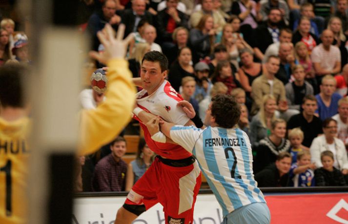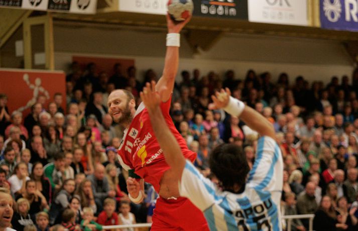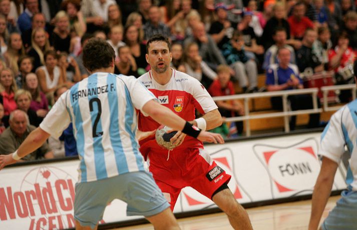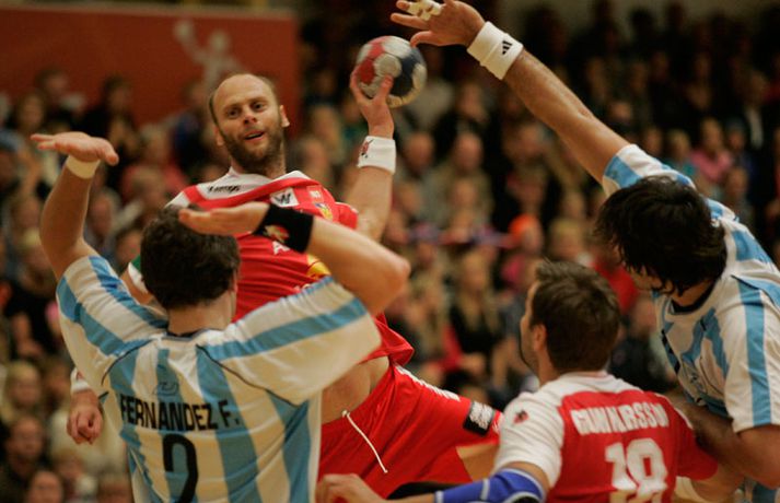Kveðjuleikur Guðmundar í Kaplakrika | Myndir Eiríkur Stefán Ásgeirsson skrifar 23. júlí 2012 23:49 Mynd/Daníel Ísland vann í kvöld sjö marka sigur á Argentínu en það var síðasti leikur íslenska landsliðsins undir stjórn Guðmundar Guðmundssonar hér á landi. Liðið heldur nú til Lundúna þar sem Ólympíuleikarnir verða settir á föstudaginn. Samningur Guðmundar rennur út eftir leikana og hefur þegar verið tilkynnt að hann muni ekki halda áfram til að geta einbeitt sér að starfi sínu hjá Rhein-Neckar Löwen. Ólafur Stefánsson mun væntanlega einnig kveðja landsliðið eftir Ólympíuleikana og því óvíst hvort hann spili aftur hér á landi, að minnsta kosti í treyju íslenska landsliðsins. Daníel Rúnarsson, ljósmyndari Vísis og Fréttablaðsins, var í Kaplakrika í kvöld og tók þessar myndir. Handbolti Mest lesið Féll úr skíðalyftu og lést Fótbolti Býst ekki við að spila aftur fyrir landsliðið Íslenski boltinn Kynntu Sigurð á slaginu sex á aðfangadag Íslenski boltinn Van de Ven bað Isak afsökunar: „Vildi ekki meiða hann“ Enski boltinn Síðasti dansinn hjá Kelce? Sport Var frústreraður vegna landsliðsins Fótbolti Hvers vegna heillast stórliðin svo af Semenyo? Enski boltinn Ruglaðar lokamínútur í Afríkukeppninni Fótbolti Stefndi á ÓL en fannst látinn á hótelherbergi Sport Viðurkenna að VAR hafi bilað Fótbolti Fleiri fréttir Ekkert spilað í vetur en gæti mætt Íslandi í fyrsta leik á EM Arnar Daði rekinn frá Stjörnunni en áfram þjálfari kvennaliðsins Öll höllin æpti nafn Gísla í spennutrylli Sakaður um niðurlægingu: „Við viljum ekki hafa hann sem þjálfara“ Haukur getur náð hundrað plús hundrað fyrir EM-fríið Rúnar sótti sinn fyrsta sigur sem þjálfari Wetzlar Haukur með sjö mörk og Magdeburg rétt marði botnliðið Rúmlega áttræður Moustafa endurkjörinn forseti IHF með yfirburðum Slæm fjárhagsstaða HSÍ kemur ekki niður á EM Donni fagnaði EM vali með skotsýningu Sigvaldi Björn fjarri góðu gamni í sjaldséðu tapi Kolstad Eva Björk með stórleik í fyrsta sigri Stjörnunnar „Hann er ein stærsta ástæðan fyrir því“ KA-menn fengu góða jólagjöf Flautumark hjá FH og ÍR með þeim í Höllina KA í undanúrslit á kostnað bikarmeistaranna Stærsti leikur ársins í Eyjum fer fram í kvöld „Er því miður kominn í jólafrí“ „Þetta var mjög skrítinn leikur“ Haukakonur í fjórða sætið KA/Þór - Valur 23-30 | Ótrúlegur viðsnúningur gestanna Ómar óstöðvandi og Magdeburg í undanúrslit Ómar Ingi fær meiri ábyrgð og tekur við kyndlinum af Aroni Ekkert stríð við Porto og einstakur Þorsteinn nítjándi maður Síðasta verkefni reyndist dýrt fyrir Sigvalda Teitur fer á EM sem hornamaður í stað Sigvalda Snorri kynnti EM-strákana okkar Hleyptu Þorsteini ekki heim og vilja ekki að hann fari á EM Kári og Logi vilja henda Ými út úr landsliðinu Sagður utan hóps fyrir Bjarka og Orra Sjá meira