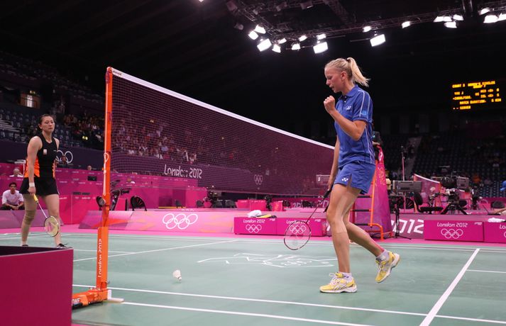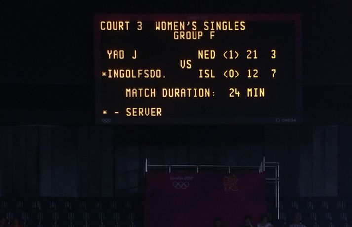 Badmintonkonan Ragna Ingólfsdóttir hefur lagt spaðann á hilluna. Þetta tilkynnti hún blaðamönnum að loknu tapi gegn Jie Yao á Ólympíuleikunum í London í kvöld. „Nú er ég búin að leggja spaðann á hilluna. Ég er mjög sátt við ferilinn og þessa Ólympíuleika. Þetta var síðasti leikurinn minn," sagði Ragna í samtali við Eirík Stefán Ásgeirsson, blaðamann Fréttablaðsins og Vísis, í London. Leikurinn í kvöld var æsispennandi og þurfti að framlengja aðra lotu þar sem jafnt var á öllum tölum. Sú hollenska hafði þó betur að lokum og tryggði sér sæti í 16 manna úrslitum badmintonkeppninnar. Valgarður Gíslason, ljósmyndari Fréttablaðsins og Vísis, fylgdist grannt með gangi mála og náði þessum myndum.