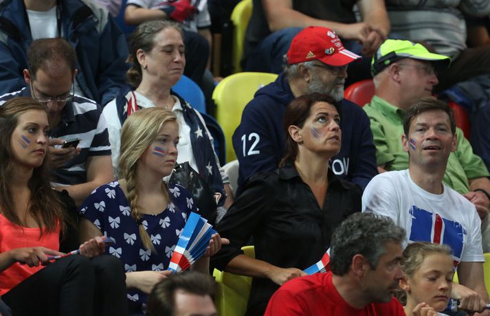 Afríkumeisturunum pakkað saman | Myndir Eiríkur Stefán Ásgeirsson í London skrifar 31. júlí 2012 14:30 Íslendingar eru komnir á mikið og gott skrið á Ólympíuleikunum í London eftir tvo sigra í fyrstu tveimur leikjum íslenska handboltalandsliðsins. Strákarnir okkar sýndu heimsklassaframmistöðu gegn Túnisum nú í morgunsárið. Staðan eftir 20 mínútur var orðin 13-3 og Túnisar einfaldlega búnir á því. Íslenska vörnin var sem ókleifur múr í fyrri hálfleik enda vissu leikmenn Túnis ekki sitt rjúkandi ráð. Niðurstaðan var tíu marka sigur, 32-22, en strákarnir gátu leyft sér að slaka aðeins á klónni í seinni hálfleik og spara aðeins kraftana fyrir næsta leik, sem er gegn Svíum á fimmtudagskvöldið. Valgarður Gíslason, ljósmyndari Vísis og Fréttablaðsins, var í Koparboxinu í London og tók þessar myndir.Mynd/Valli Tengdar fréttir Umfjöllun: Túnis - Ísland 22-32 | Túnisar kláraðir á mettíma Íslenska karlalandsliðið í handbolta átti ekki í vandræðum með að leggja Túnis að velli á Ólympíuleikunum í London í morgun. Ísland var með mikla yfirburði og staðan var 19-8 í hálfleik. Lokatölur 32-22. 31. júlí 2012 00:01 Mest lesið Ekkert bit í snáknum: „Hörmulegur og ætti að hætta“ Sport „Þú birtir falsfrétt um mig, þú ert í banni“ Fótbolti United horfir til Þýskalands eftir höfnun Semenyo Enski boltinn Kynntu Sigurð á slaginu sex á aðfangadag Íslenski boltinn Goðsögn fallin frá Enski boltinn Þessi tíu eru tilnefnd sem Íþróttamaður ársins 2025: 23 ára aldursmunur Sport Zidane sá soninn spila á Afríkumótinu Fótbolti Féll úr skíðalyftu og lést Fótbolti „Ég elska peninga“ Sport Kærður af knattspyrnusambandinu Enski boltinn Fleiri fréttir Ekkert spilað í vetur en gæti mætt Íslandi í fyrsta leik á EM Arnar Daði rekinn frá Stjörnunni en áfram þjálfari kvennaliðsins Öll höllin æpti nafn Gísla í spennutrylli Sakaður um niðurlægingu: „Við viljum ekki hafa hann sem þjálfara“ Haukur getur náð hundrað plús hundrað fyrir EM-fríið Rúnar sótti sinn fyrsta sigur sem þjálfari Wetzlar Haukur með sjö mörk og Magdeburg rétt marði botnliðið Rúmlega áttræður Moustafa endurkjörinn forseti IHF með yfirburðum Slæm fjárhagsstaða HSÍ kemur ekki niður á EM Donni fagnaði EM vali með skotsýningu Sigvaldi Björn fjarri góðu gamni í sjaldséðu tapi Kolstad Eva Björk með stórleik í fyrsta sigri Stjörnunnar „Hann er ein stærsta ástæðan fyrir því“ KA-menn fengu góða jólagjöf Flautumark hjá FH og ÍR með þeim í Höllina KA í undanúrslit á kostnað bikarmeistaranna Stærsti leikur ársins í Eyjum fer fram í kvöld „Er því miður kominn í jólafrí“ „Þetta var mjög skrítinn leikur“ Haukakonur í fjórða sætið KA/Þór - Valur 23-30 | Ótrúlegur viðsnúningur gestanna Ómar óstöðvandi og Magdeburg í undanúrslit Ómar Ingi fær meiri ábyrgð og tekur við kyndlinum af Aroni Ekkert stríð við Porto og einstakur Þorsteinn nítjándi maður Síðasta verkefni reyndist dýrt fyrir Sigvalda Teitur fer á EM sem hornamaður í stað Sigvalda Snorri kynnti EM-strákana okkar Hleyptu Þorsteini ekki heim og vilja ekki að hann fari á EM Kári og Logi vilja henda Ými út úr landsliðinu Sagður utan hóps fyrir Bjarka og Orra Sjá meira