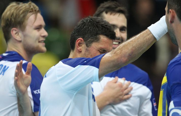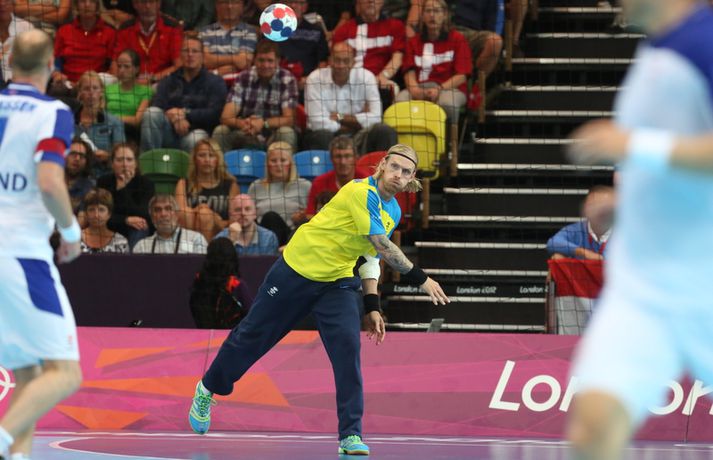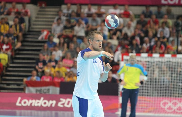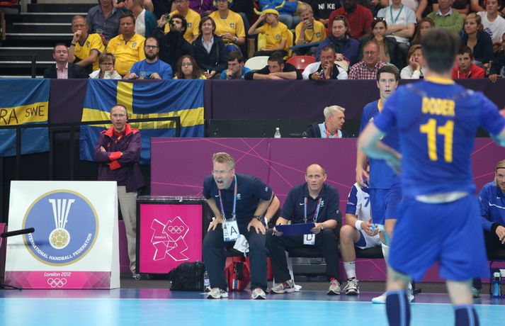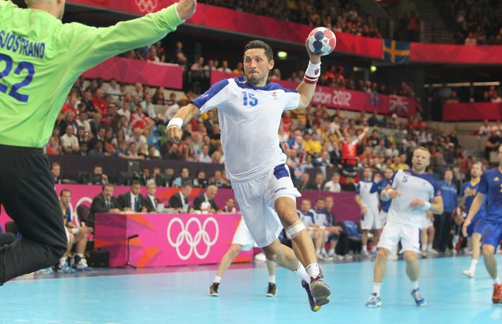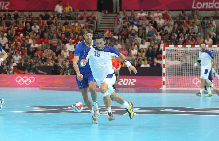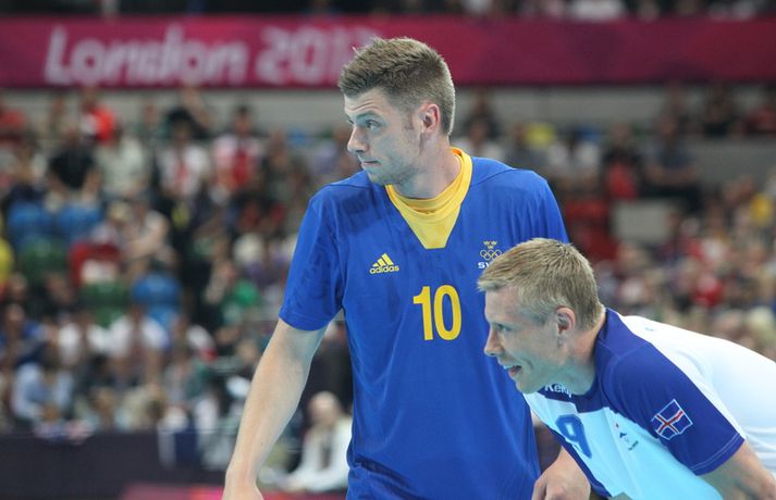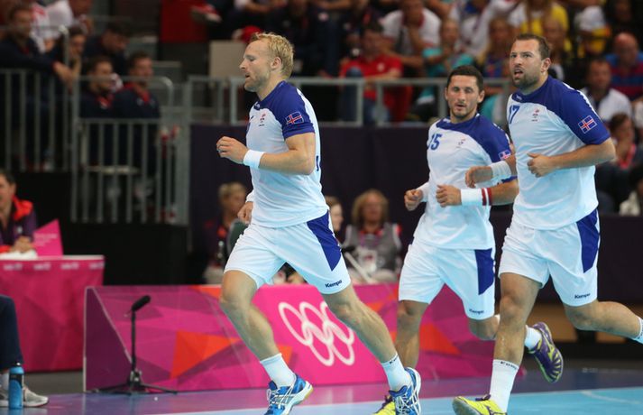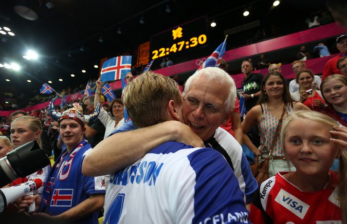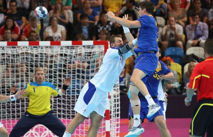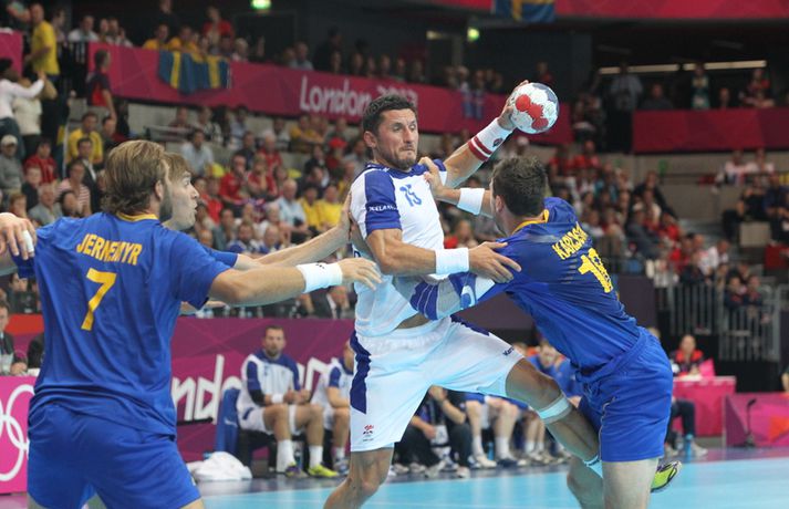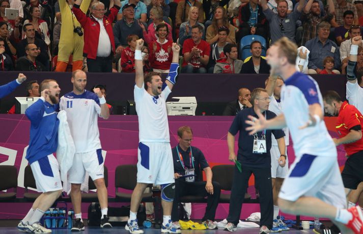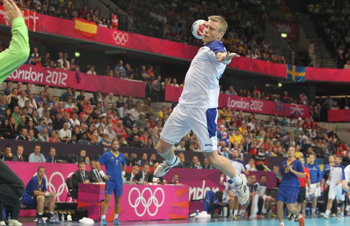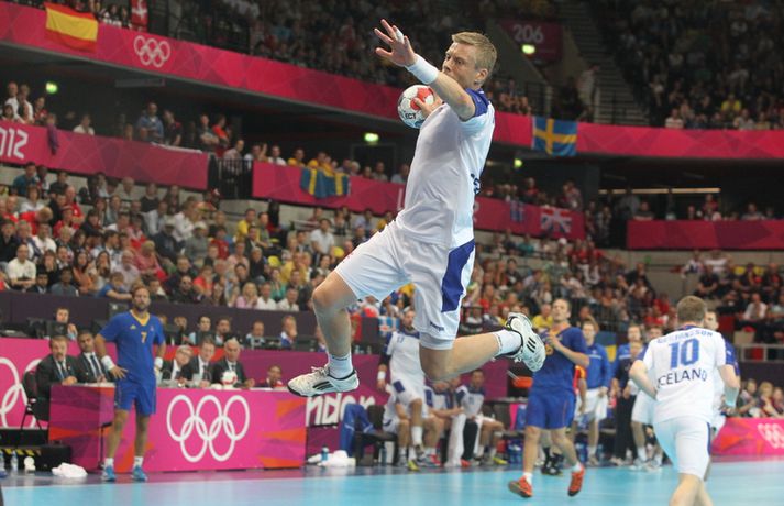 Hundrað myndir af sögulegum sigri Íslendinga Kolbeinn Tumi Daðason skrifar 2. ágúst 2012 23:33 Alexander Petersson faðmar Ásgeir Örn Hallgrímsson sem innsiglaði sigur Íslands í kvöld. Mynd/Valli Íslenska karlalandsliðið í handknattleik vann í kvöld langþráðan sigur á Svíum á stórmóti í handknattleik. Sigurinn var þó mun tæpari en hann hefði þurft að vera en strákarnir okkar sluppu með skrekkinn undir lokin. Íslenskir stuðningsmenn voru líklega færri en þeir sænsku í Koparhöllinni í London í kvöld en létu þó vel í sér heyra. Þeir urðu líka vitni að sögulegum sigri en Ísland hafði ekki lagt Svía að velli í níu viðureignum þjóðanna á stórmóti. Síðast vannst sigur á Svíum á HM í Tékkóslóvakíu 1964 12-10. Eins og lokatölurnar gefa til kynna hefur margt breyst í handboltanum síðan þá og til marks um hve langþráður sigurinn í dag var. Valgarður Gíslason, ljósmyndari Fréttablaðsins og Vísis, varð þess heiðurs aðnjótandi að fylgjast með leiknum í kvöld og náði þessum fínu myndum. Handbolti Mest lesið Ekkert bit í snáknum: „Hörmulegur og ætti að hætta“ Sport Stoltur af stráknum en ætlar ekki að kaupa hann aftur Handbolti „Þú birtir falsfrétt um mig, þú ert í banni“ Fótbolti United horfir til Þýskalands eftir höfnun Semenyo Enski boltinn Haaland stóðst vigtun eftir jólin Enski boltinn Goðsögn fallin frá Enski boltinn Þessi tíu eru tilnefnd sem Íþróttamaður ársins 2025: 23 ára aldursmunur Sport Zidane sá soninn spila á Afríkumótinu Fótbolti Kynntu Sigurð á slaginu sex á aðfangadag Íslenski boltinn „Ég elska peninga“ Sport Fleiri fréttir Stoltur af stráknum en ætlar ekki að kaupa hann aftur Ekkert spilað í vetur en gæti mætt Íslandi í fyrsta leik á EM Arnar Daði rekinn frá Stjörnunni en áfram þjálfari kvennaliðsins Öll höllin æpti nafn Gísla í spennutrylli Sakaður um niðurlægingu: „Við viljum ekki hafa hann sem þjálfara“ Haukur getur náð hundrað plús hundrað fyrir EM-fríið Rúnar sótti sinn fyrsta sigur sem þjálfari Wetzlar Haukur með sjö mörk og Magdeburg rétt marði botnliðið Rúmlega áttræður Moustafa endurkjörinn forseti IHF með yfirburðum Slæm fjárhagsstaða HSÍ kemur ekki niður á EM Donni fagnaði EM vali með skotsýningu Sigvaldi Björn fjarri góðu gamni í sjaldséðu tapi Kolstad Eva Björk með stórleik í fyrsta sigri Stjörnunnar „Hann er ein stærsta ástæðan fyrir því“ KA-menn fengu góða jólagjöf Flautumark hjá FH og ÍR með þeim í Höllina KA í undanúrslit á kostnað bikarmeistaranna Stærsti leikur ársins í Eyjum fer fram í kvöld „Er því miður kominn í jólafrí“ „Þetta var mjög skrítinn leikur“ Haukakonur í fjórða sætið KA/Þór - Valur 23-30 | Ótrúlegur viðsnúningur gestanna Ómar óstöðvandi og Magdeburg í undanúrslit Ómar Ingi fær meiri ábyrgð og tekur við kyndlinum af Aroni Ekkert stríð við Porto og einstakur Þorsteinn nítjándi maður Síðasta verkefni reyndist dýrt fyrir Sigvalda Teitur fer á EM sem hornamaður í stað Sigvalda Snorri kynnti EM-strákana okkar Hleyptu Þorsteini ekki heim og vilja ekki að hann fari á EM Kári og Logi vilja henda Ými út úr landsliðinu Sjá meira