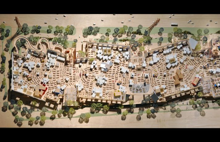 Nýjar höfuðstöðvar Facebook slá öllu við 26. ágúst 2012 00:01 Stjörnuarkitektinn Frank Gehry sýnir Mark Zuckerberg módelið af höfuðstöðvunum. Facebook heldur áfram að vaxa, en í þetta sinn eru það híbýli fyrirtækisins sem stækka. Nýverið tilkynnti fyrirtækið að stjörnu-arkitektinn Frank Gehry myndi hanna nýjar höfuðstöðvar Facebook ætlaðar fyrir 3.400 starfsmenn. Höfuðstöðvarnar verða „klæðskerasniðnar" að þörfum Facebook. Þær verða í raun ein risavaxin skrifstofa. Þar ofan á verður þakgarður og auk þess verða ýmiss konar ráðstefnusalir og lokuð rými hér og þar í byggingunni. En fyrst og fremst er um eitt risastórt rými að ræða. Arkitektinn Frank Gehry er þekktur fyrir að fara að óskum viðskiptavina sinna án þess að kostnaðurinn fari fram úr öllu valdi. „Ég er mjög spenntur fyrir því að vinna með Gehry. Hugmyndin er að skapa hið fullkomna vinnusvæði: eitt risavaxið herbergi sem rúmar þúsundir manna, þar sem nándin verður nægilega mikil til að allir geti unnið saman. Þetta verður stærsta vinnusvæðið af þessari tegund í heimi. En auk þess verða hljóðlátari herbergi. Að utan mun húsið svo líta út nokkurn veginn eins og venjulegur hóll í náttúrunni," segir Mark Zuckerberg, stofnandi Facebook. Zuckerberg gerir líka ráð fyrir að samstarfið við Gehry muni spara fyrirtækinu fjármuni þar sem Gehry er þekktur fyrir gott skipulag. „Svo við búumst við að þessi bygging verði ótrúleg en samt ekki sérlega dýr," segir hann. Mest lesið Finna meira gull á Grænlandi Viðskipti innlent Sér ljós við enda ganganna: „Kannski þurfti svona stóra truflun til“ Viðskipti innlent Jónas Már til Réttar Viðskipti innlent Umfangsmiklar uppsagnir hjá Amazon Viðskipti erlent „Ekki bara smá eyða, þetta er risastórt gat“ Viðskipti innlent Hætt við að vextir hækki Viðskipti innlent „Það verða fjöldagjaldþrot“ Viðskipti innlent Mun leiða svið markaðsmála og þjónustuupplifunar hjá Advania Viðskipti innlent „Niðursveifla í byggingariðnaði er hafin“ Viðskipti innlent Hafi áhrif á innan við tíu prósent fyrstu kaupenda Viðskipti innlent Fleiri fréttir Umfangsmiklar uppsagnir hjá Amazon Framkvæmdastjórnin beinir spjótunum að Meta og TikTok Kæra FIFA fyrir miðasölubrask fyrir HM á næsta ári Þrír Kaupþingsstjórar sektaðir í Lúxemborg eftir fimmtán ára málaferli Stjórn Warner Bros. segir félagið til sölu Svona lögðu Kínverjar framtíðina undir sig Snapchat og Duolingo í basli vegna bilunar hjá Amazon Smáríki græða á tá og fingri á þjóðarlénum í lénaleikjum Skoða hvort miðasölubrask FIFA sé ólögleg veðmálastarfsemi Paramount ber víurnar í Warner Bros Kínverjar hóta frekari hefndum, standi Trump við tollana Deila Nóbelnum fyrir að varpa ljósi á tengsl nýsköpunar og hagvaxtar Bein útsending: Hver hlýtur hagfræðiverðlaun sænska seðlabankans? Rafmyntir hrynja í verði eftir tollahótanir Herða hreðjatakið á birgðakeðjum Vesturlanda Virði gulls í methæðum Fyrrverandi forstjóri félags í eigu Íslendinga dæmdur fyrir fjárdrátt Strava stefnir Garmin AMD upp um fjórðung eftir risasamning við OpenAI Boeing sagt byrjað að þróa arftaka 737 max-þotunnar Rúmlega þriðjungs samdráttur í olíuvinnslu í Rússlandi Burger King opnar fyrsta staðinn á Grænlandi Eigandinn hættir sem forstjóri Trump setur tolla á lyf, vörubíla og húsgögn Murdoch-feðgar verði meðal kaupenda TikTok Ben kveður Jerry Nálgast samkomulag um TikTok Breytingar hjá Microsoft koma fyrirtækinu hjá sektum Ellison klórar í hælana á Musk Danski lyfjarisinn að baki Ozempic segir upp þúsundum manna Sjá meira