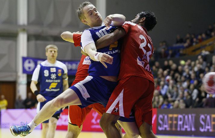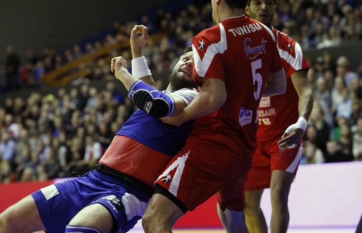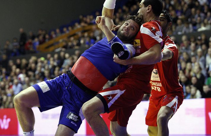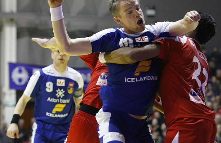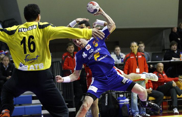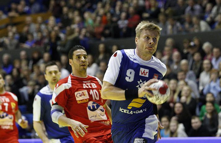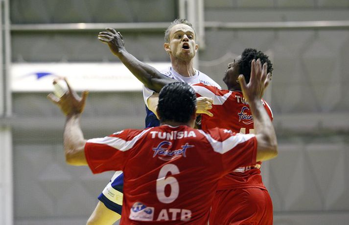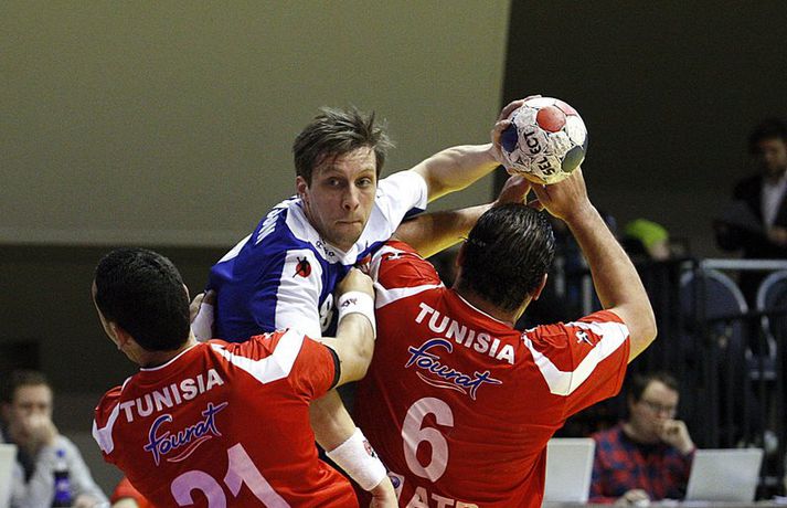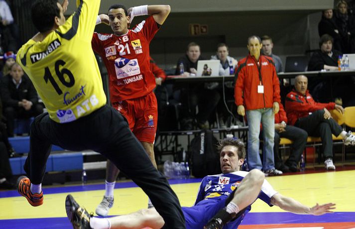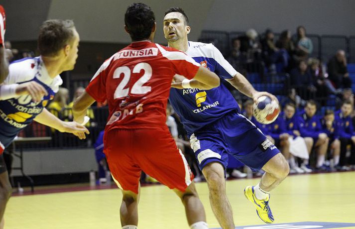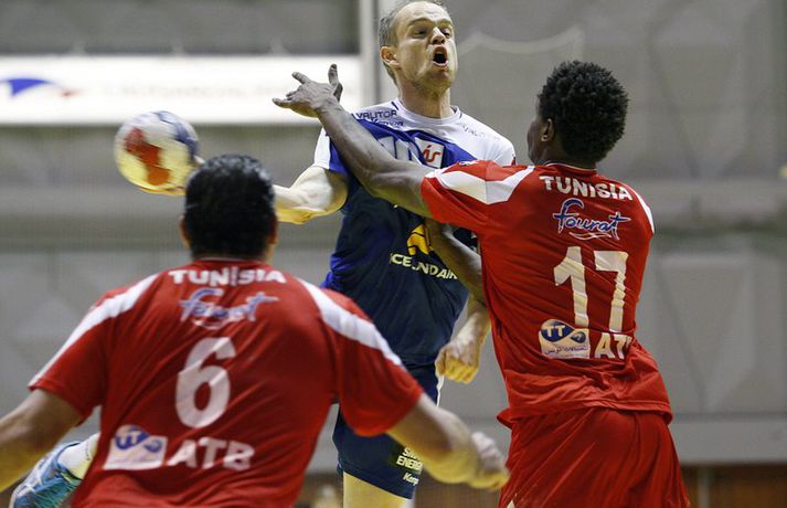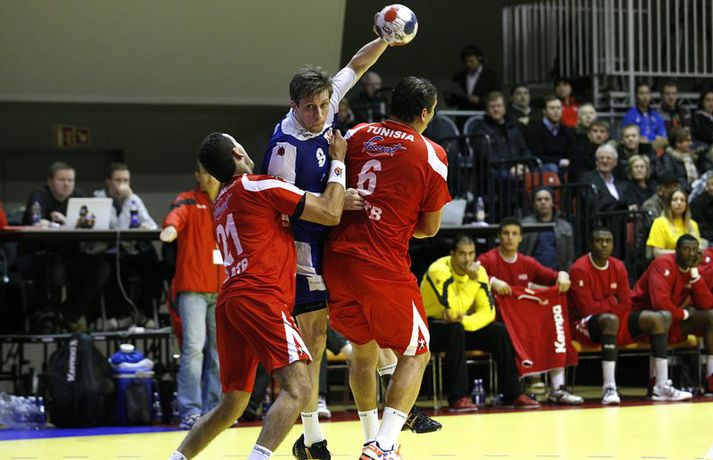 Umfjöllun, viðtöl og myndir: Ísland - Túnis 33-26 | Sannfærandi sigur Elvar Geir Magnússon í Laugardalshöllinni skrifar 28. desember 2012 19:15 Íslenska handboltalandsliðið átti ekki í miklum vandræðum með slakt Túnislið í Höllinni í kvöld. Ísland vann leikinn með sjö marka mun, 33-26, eftir að hafa náð mest fjórtán marka forskoti í seinni hálfleiknum. Íslenska liðið tók öll völd á vellinum um miðjan fyrri hálfleik þegar liðið skoraði níu mörk í röð og breytti stöðunni úr 6-5 í 15-5. Íslenska liðið var 19-9 yfir í hálfleik og var síðan komið í 24-10 eftir sex mínútna leik í seinni hálfleik. Aron Kristjánsson, þjálfari íslenska liðsins, leyfði öllum að spreyta sig og liðið var að fá flott framlag frá mörgum mönnum í þessum leik. Guðjón Valur Sigurðsson var markahæstur með sjö mörk og Aron Pálmarsson kom næstur honum með fimm mörk. Báðir nýttu þeir öll skotin sín í leiknum. Alls skoruðu sjö leikmenn íslenska liðsins þrjú mörk eða fleira í kvöld. Túnis er reyndar ekki lið sem er líklegt til afreka á HM á Spáni en liðið náði þó aðeins að laga stöðuna á lokamínútum leiksins. Varnarleikurinn gekk lengstum vel og íslenska liðinu gekk vel að fá auðveld mörk úr hraðaupphlaupum í kvöld en hraðaupphlaupsmörkin urðu alls tólf talsins. Frekari umfjöllun og viðtöl við strákana koma inn á Vísi seinna í kvöld. Snorri Steinn: Borgar sig ekki að lesa of mikið í þetta„Það kom mér á óvart hversu auðveld bráð þeir voru. Við erum með breytt lið en það eru þeir líka," sagði Snorri Steinn Guðjónsson eftir sigurinn örugga gegn Túnis í kvöld. „Ég veit ekki hvenær þeir byrjuðu að æfa en við erum ekki búnir að æfa mikið saman. En þetta var góður leikur. Vörnin small vel og við leystum báðar varnirnar sem þeir spiluðu mjög vel. Það borgar sig samt ekki að vera að lesa of mikið í þetta. Undirbúningurinn er stutt á veg kominn." Snorri segir gott að byrja á öruggum sigri en hann ætlar að undirbúa sig fyrir leikinn á morgun eins og hann verði öðruvísi. „Ég ætla að búa mig undir það. Þeir eru alveg þekktir fyrir að vera fastir fyrir og harðir í horn að taka. Þeir voru það ekkert svakalega mikið í dag. Þeir geta ekki verið ánægðir með sína frammistöðu og ég býst við þeim grimmari á morgun." „Það eru ný andlit í hópnum hjá okkur og eðlilega var tækifærið notað til að skoða menn. Það eru nýir póstar að taka við og það þarf að taka stórar ákvarðanir þegar velja skal liðið," sagði Snorri Steinn. Aron Kristjáns: Viljum vinna alla leiki„Í fyrri hálfleik var sóknarleikurinn mjög öflugur og við vorum að finna margar góðar lausnir. Þá var varnarleikurinn lengi vel leikinn af miklum krafti," sagði landsliðsþjálfarinn Aron Kristjánsson eftir öruggan sigur á Túnis í Höllinni. „Við vorum komnir með stórt forskot og duttum of mikið niður í seinni hálfleik. Við fórum á hælana í vörninni og þeir náðu að saxa á þetta." Aron segir að markmiðið fyrir morgundaginn sé meðal annars að fá leikmenn til að leika af krafti allar 60 mínúturnar „Við þurfum á því að halda. Svo eru viss leikatriði sem við prófum á morgun, þar á meðal verður Ólafur Guðmunds notaður í hægri skyttu. Við spilum af krafti og viljum vinna alla leiki en það eru viss atriði sem þarf að skoða." Hinn leikurinn gegn Túnis verður strax á morgun. „Nú fara leikmenn bara beint í háttinn en undirbúningur hjá okkur þjálfurunum fyrir leikinn fer á fullt," sagði Aron Kristjánsson. Aron Pálmars: Vonandi verður fært í Höllina á morgunAron Pálmarsson skoraði fimm mörk fyrir Ísland sem vann sigur gegn Túnis 33-26 í æfingaleik í Laugardalshöll í kvöld. „Við vorum komnir með mikla forystu og það var erfitt að pumpa sig upp fyrir síðasta korterið. Mér fannst þeir ekki koma 100% inn í þetta og við eigum ekki að leyfa neinum að koma með hangandi haus á okkar heimavöll," sagði Aron. „Við kláruðum þetta í fyrri hálfleik og gerðum það vel. Þegar lið eru komin 15 mörkum yfir gerist það sjálfkrafa kannski að menn slaka á. Þeir voru ekki það sterkir í dag að þeir næðu að snúa því við." Liðin mætast aftur 13:30 á morgun svo það er skammur tími til stefnu. „Ég held að morgunmaturinn sé alveg að byrja hjá okkur," sagði Aron kíminn. „Það er svefn og svo bara strax aftur leikur. Ég vona að bæði lið mæti stemmdari á morgun og það verði meiri hörkuleikur. Það væri líka gaman fyrir áhorfendur að fá jafnari leik." Laugardalshöllin var talsvert frá því að vera full í kvöld. „Vonandi verður fært í Höllina. Ég vona að færðin hafi verið ástæðan fyrir því að við fengum ekki fleiri áhorfendur," sagði Aron Pálmarsson. Vignir Svavars: Duttum niður á hælana„Við erum með miklu betra lið en þeir. Það eru margir flottir strákar að koma inn í þetta," sagði varnarjaxlinn Vignir Svavarsson eftir sigur Íslands gegn Túnis í kvöld. Íslenska liðið gerði út um leikinn í fyrri hálfleik en lék ekki eins vel í þeim síðari. „Við vorum of passífir varnarlega í seinni hálfleik. Ef við ætlum að spila aggressíva vörn þá verðum við að vera frammi og fíflast í þeim. Við duttum niður á hælana og þar af leiðandi söxuðu þeir aðeins á þetta." „Það jákvæða sem við getum tekið út úr þessu er fyrri hálfleikurinn varnarlega og sóknarlega. Við vorum að gera nákvæmlega það sem við lögðum upp með og það virkaði." „Vonandi náum við að spila góðan bolta á morgun og við verðum að passa það að við dettum ekki niður á hælana í seinni hálfleik. Ég býst við að Túnis komi með breytingar á sínum sóknarleik sem við þurfum að 