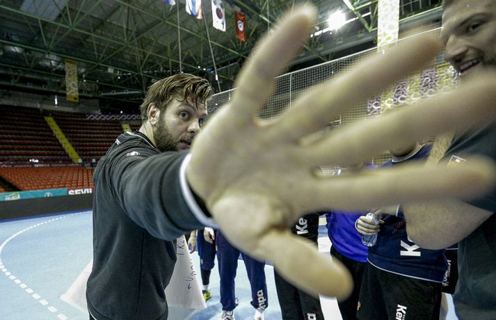 Strákarnir í íslenska handboltalandsliðinu spila ekki á HM í handbolta í dag en notuðu hinsvegar daginn vel til þess að undirbúa sig fyrir mikilvægan leik á móti Makedóníu á morgun. Íslenska landsliðið reif sig upp eftir tap á móti Rússum í fyrsta leik og vann sannfærandi sigur á Sílebúum í gær þar sem margir leikmenn liðsins fengu tækifæri og nýttu það flestir mjög vel. Vilhelm Gunnarsson, ljósmyndari Fréttablaðsins og Vísis, er í Sevilla og náði skemmtilegu myndum frá æfingu liðsins í dag en einnig eru myndir frá hóteli liðsins. Myndirnar má sjá í albúminu hér að neðan. Hægt er að sjá myndirnar stærri með því að smella á þær.