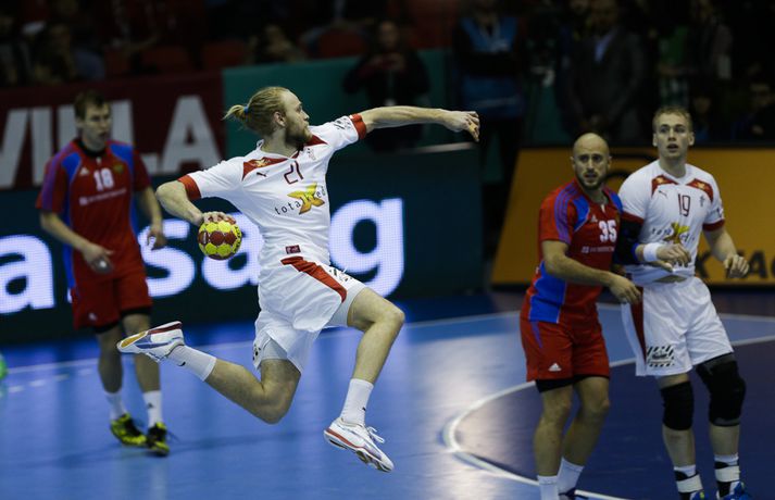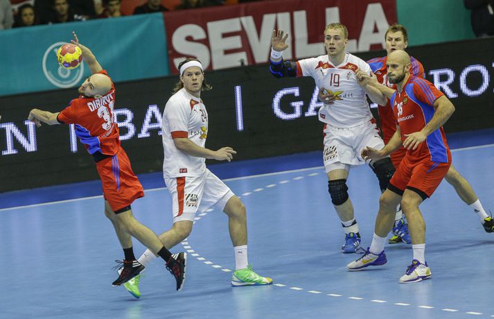 Danir unnu í kvöld góðan sigur á Rússum, 31-27, í B-riðli HM í handbolta í kvöld. Danmörk er því með fullt hús stiga eftir fyrstu tvo leikina í Sevilla. Danir byrjuðu betur og náðu snemma ágætri forystu. En Rússar komu til baka og var munurinn í hálfleik eitt mark, 14-13. Jafnræði var með liðunum framan af seinni hálfleik en Danir náðu að síga fram úr á lokakaflanum og tryggja sér sigur. Niklas Landin átti stórleik í marki Dana og varði oft á tíðum glæsilega. Nikolaj Markussen átti einnig góðan leik og skoraði sex mörk. Markahæstur hjá Rússum var Timur Dibirov með sjö mörk. Danmörk og Makedónía eru á toppi B-riðils með fjögur stig en Ísland og Rússland eru með tvö. Ísland mætir Makedóníu á þriðjudag.Úrslit, staða og næstu leikir á HM 2013.