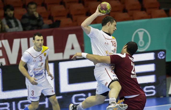 HM 2013 | Makedónía líka í basli með Katar Eiríkur Stefán Ásgeirsson skrifar 13. janúar 2013 18:41 Myndir / Vilhelm Gunnarsson Makedónía vann í dag fjögurra marka sigur á Katar, 34-30, og eru því með fullt hús stiga eftir fyrstu tvo leikina í B-riðli á HM í handbolta. Makedónía vann einnig sigur á Síle í gær, 30-28, en hafa nú lent í basli með tvö lægst skrifuðustu liðin í riðlinum. Ísland mætir næst Makedóníu á þriðjudaginn og er ljóst að leikurinn skiptir miklu máli fyrir íslenska liðið. Makedónía byrjaði miklu betur og var með átta marka forystu í hálfleik, 21-13. Katarbúar létu þó ekki slá sig af laginu og náðu að minnka muninn mest í tvö mörk í seinni hálfleik. En þar við sat. Leikur Íslands og Makedóníu hefst klukkan 17.00 á þriðjudaginn.Úrslit, staða og næstu leikir á HM 2013. Mest lesið Þreytt á umræðu um líkamann sinn: „Á ekki að tjá sig um það“ Sport Hneysklaður á ósönnum orðrómum Fótbolti Ekkja Jota þakklát: „Hefur meiri þýðingu en orð geta lýst“ Enski boltinn Hættir ekki fyrr en hann skorar þúsund mörk Fótbolti Yfirgefur Keflavík vegna komu Martins Körfubolti Skynjar stress hjá Arsenal Enski boltinn Segja að Wirtz græði á fjarveru Salah: „Sé hann fljúga í gang“ Enski boltinn Enn kvarnast úr liði Blika Íslenski boltinn Ótrúleg tölfræði Jokic Körfubolti Dagskráin í dag: Pílukast og Íslandsmeistarar Sport Fleiri fréttir Óðinn bikarmeistari fjórða árið í röð Kolstad tapaði bikarúrslitaleiknum í vítakeppni Segir starfið í húfi hjá Alfreð Haukur náði hundrað og hundrað fyrir EM Íslendingarnir í miklum ham fyrir EM Handarbrotinn og missir af úrslitaleiknum Reynir farinn að láta til sín taka í þýsku deildinni Elín Klara atkvæðamikil og sigursæl í jólaleiknum Birgir byrjaði rólega eftir jólafrí en fagnaði sigri Stoltur af stráknum en ætlar ekki að kaupa hann aftur Ekkert spilað í vetur en gæti mætt Íslandi í fyrsta leik á EM Arnar Daði rekinn frá Stjörnunni en áfram þjálfari kvennaliðsins Öll höllin æpti nafn Gísla í spennutrylli Sakaður um niðurlægingu: „Við viljum ekki hafa hann sem þjálfara“ Haukur getur náð hundrað plús hundrað fyrir EM-fríið Rúnar sótti sinn fyrsta sigur sem þjálfari Wetzlar Haukur með sjö mörk og Magdeburg rétt marði botnliðið Rúmlega áttræður Moustafa endurkjörinn forseti IHF með yfirburðum Slæm fjárhagsstaða HSÍ kemur ekki niður á EM Donni fagnaði EM vali með skotsýningu Sigvaldi Björn fjarri góðu gamni í sjaldséðu tapi Kolstad Eva Björk með stórleik í fyrsta sigri Stjörnunnar „Hann er ein stærsta ástæðan fyrir því“ KA-menn fengu góða jólagjöf Flautumark hjá FH og ÍR með þeim í Höllina KA í undanúrslit á kostnað bikarmeistaranna Stærsti leikur ársins í Eyjum fer fram í kvöld „Er því miður kominn í jólafrí“ „Þetta var mjög skrítinn leikur“ Haukakonur í fjórða sætið Sjá meira