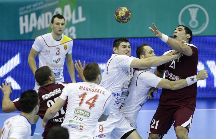 Makedónía vann í dag fjögurra marka sigur á Katar, 34-30, og eru því með fullt hús stiga eftir fyrstu tvo leikina í B-riðli á HM í handbolta. Makedónía vann einnig sigur á Síle í gær, 30-28, en hafa nú lent í basli með tvö lægst skrifuðustu liðin í riðlinum. Ísland mætir næst Makedóníu á þriðjudaginn og er ljóst að leikurinn skiptir miklu máli fyrir íslenska liðið. Makedónía byrjaði miklu betur og var með átta marka forystu í hálfleik, 21-13. Katarbúar létu þó ekki slá sig af laginu og náðu að minnka muninn mest í tvö mörk í seinni hálfleik. En þar við sat. Leikur Íslands og Makedóníu hefst klukkan 17.00 á þriðjudaginn.Úrslit, staða og næstu leikir á HM 2013.