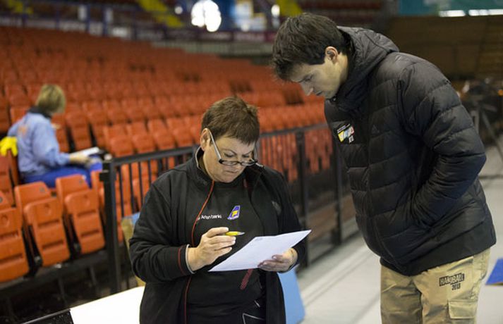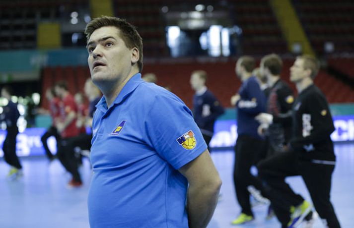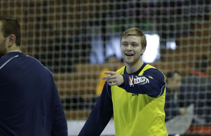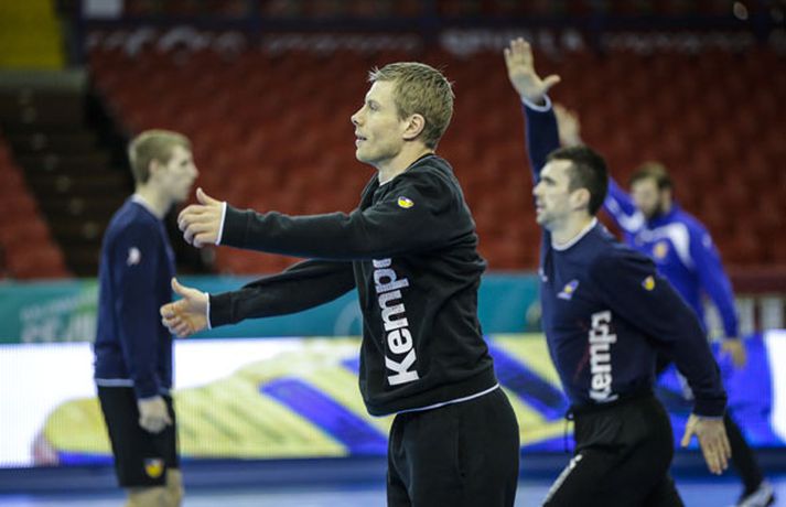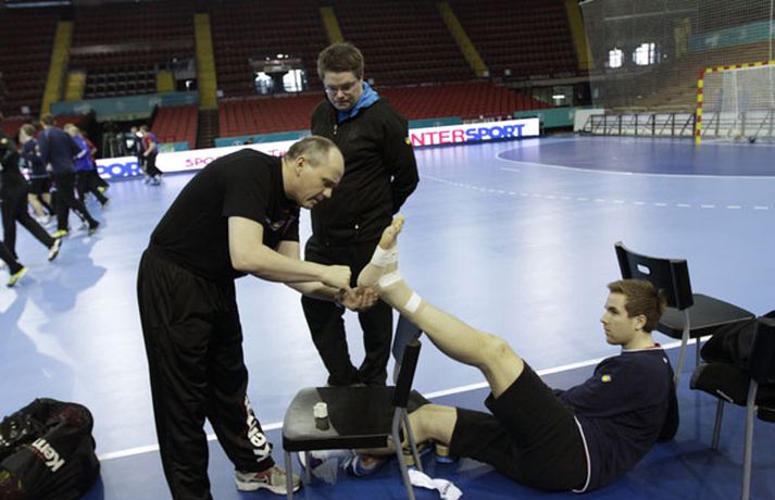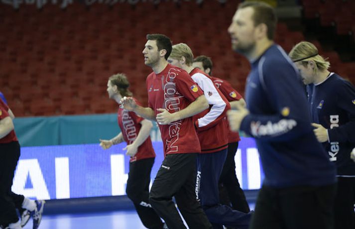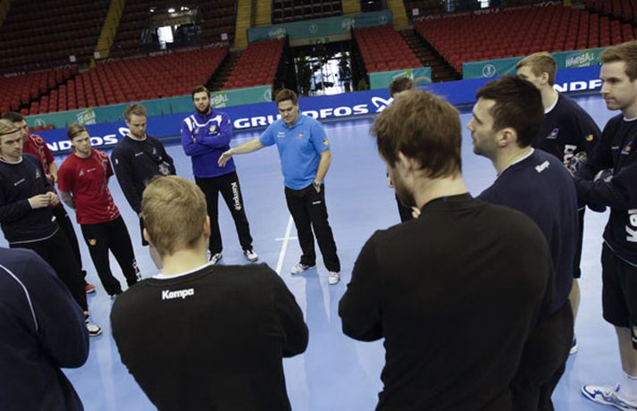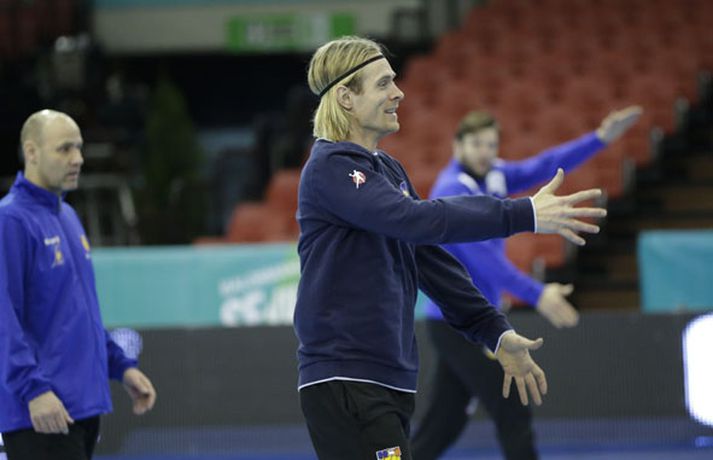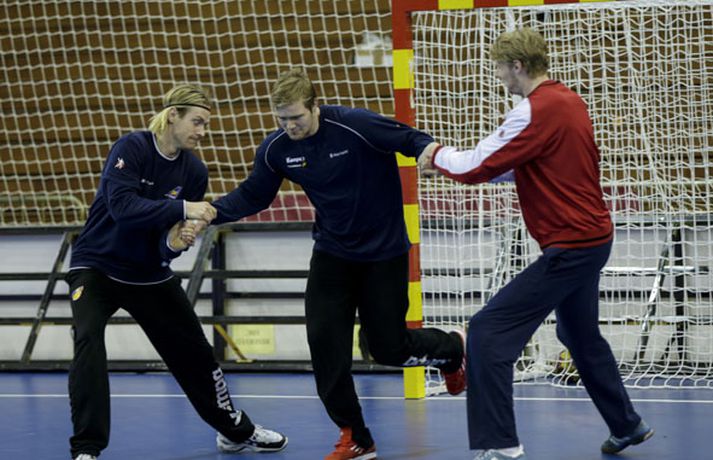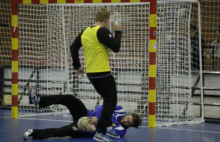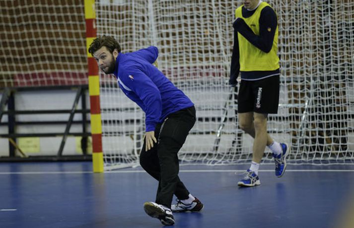 Íslenska landsliðið í handbolta æfði í fyrsta sinn í keppnishöllinni í Sevilla í morgun. Vilhelm Gunnarsson ljósmyndari Fréttablaðsins og Vísis tók þessar myndir af æfingunni. Fyrsti leikur Íslands er á morgun, laugardag, gegn Rússum og hefst hann kl. 17.00 að íslenskum tíma.Guðjón Valur Sigurðsson og Vignir Svavarsson voru einbeittir þegar þeir hituðu upp í kaldri íþróttahöllinni í Sevilla.Vilhelm