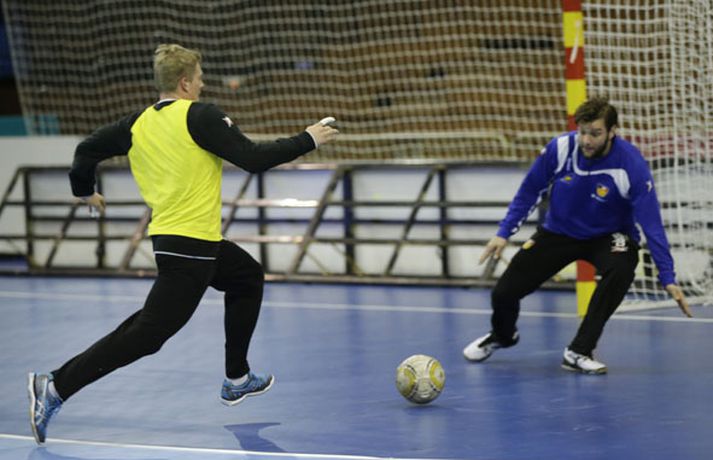 HM 2013: Myndasyrpa frá æfingu hjá Stákunum okkar í Sevilla Sigurður Elvar Þórólfsson í Sevilla skrifar 11. janúar 2013 13:45 Íslenska landsliðið í handbolta æfði í fyrsta sinn í keppnishöllinni í Sevilla í morgun. Vilhelm Gunnarsson ljósmyndari Fréttablaðsins og Vísis tók þessar myndir af æfingunni. Fyrsti leikur Íslands er á morgun, laugardag, gegn Rússum og hefst hann kl. 17.00 að íslenskum tíma.Guðjón Valur Sigurðsson og Vignir Svavarsson voru einbeittir þegar þeir hituðu upp í kaldri íþróttahöllinni í Sevilla.Vilhelm Mest lesið Yfirgefur Keflavík vegna komu Martins Körfubolti Ótrúleg tölfræði Jokic Körfubolti Enn kvarnast úr liði Blika Íslenski boltinn „Ég mun ekki keppa við Rússa á meðan stríð er í gangi“ Sport Hafnaði 34 milljónum: „Vil ekki styðja kerfi sem býr til fíkn og eyðileggur líf“ Sport Segir starfið í húfi hjá Alfreð Handbolti Jafnt í stórleiknum Fótbolti Gray hetja Tottenham Enski boltinn Spennutryllir eftir tvö burst Sport Jöfnuðu 128 ára gamalt met Enski boltinn Fleiri fréttir Óðinn bikarmeistari fjórða árið í röð Kolstad tapaði bikarúrslitaleiknum í vítakeppni Segir starfið í húfi hjá Alfreð Haukur náði hundrað og hundrað fyrir EM Íslendingarnir í miklum ham fyrir EM Handarbrotinn og missir af úrslitaleiknum Reynir farinn að láta til sín taka í þýsku deildinni Elín Klara atkvæðamikil og sigursæl í jólaleiknum Birgir byrjaði rólega eftir jólafrí en fagnaði sigri Stoltur af stráknum en ætlar ekki að kaupa hann aftur Ekkert spilað í vetur en gæti mætt Íslandi í fyrsta leik á EM Arnar Daði rekinn frá Stjörnunni en áfram þjálfari kvennaliðsins Öll höllin æpti nafn Gísla í spennutrylli Sakaður um niðurlægingu: „Við viljum ekki hafa hann sem þjálfara“ Haukur getur náð hundrað plús hundrað fyrir EM-fríið Rúnar sótti sinn fyrsta sigur sem þjálfari Wetzlar Haukur með sjö mörk og Magdeburg rétt marði botnliðið Rúmlega áttræður Moustafa endurkjörinn forseti IHF með yfirburðum Slæm fjárhagsstaða HSÍ kemur ekki niður á EM Donni fagnaði EM vali með skotsýningu Sigvaldi Björn fjarri góðu gamni í sjaldséðu tapi Kolstad Eva Björk með stórleik í fyrsta sigri Stjörnunnar „Hann er ein stærsta ástæðan fyrir því“ KA-menn fengu góða jólagjöf Flautumark hjá FH og ÍR með þeim í Höllina KA í undanúrslit á kostnað bikarmeistaranna Stærsti leikur ársins í Eyjum fer fram í kvöld „Er því miður kominn í jólafrí“ „Þetta var mjög skrítinn leikur“ Haukakonur í fjórða sætið Sjá meira