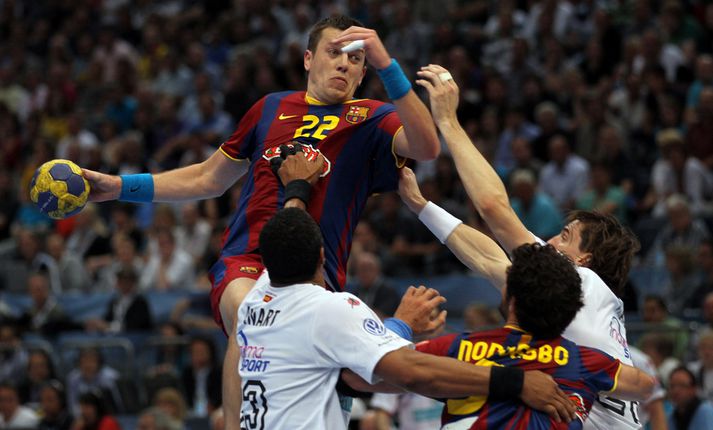 Barcelona tryggði farseðilinn til Kölnar Eiríkur Stefán Ásgeirsson skrifar 27. apríl 2013 18:37 Nordic Photos / Getty Images Barcelona hafði betur gegn erkifjendum sínum í Atletico Madrid í fjórðungsúrslitum Meistaradeildar Evrópu í handbolta. Atletico vann fyrri leikinn á heimavelli, 25-20, en Barcelona tók forystuna strax í upphafi leiks í dag. Það var þó spenna á lokamínútunum þar sem að Atletico hefði nægt fimm marka tap til að komast áfram í undanúrslitin. En Barcelona spilaði frábærlega á lokamínútunum og vann að lokum átta marka sigur, 32-24. Siarhei Rutenka átti stórleik í liði Barcelona og skoraði ellefu mörk. Þá var markvörðurinn Danijel Saric frábær í markinu og varði til að mynda þrjú vítaköst. Hjá Atletico Madrid var línumaðurinn Julen Aguinagalde öflugur með ellefu mörk. En þeir Ivano Balic og Kiril Lazarov hafa oft spilað betur en í þessum leik. Undanúrslitin og úrslitin fara fram í Köln í Þýskalandi eins og venjulega. Fyrr í dag tryggði Kiel sér sæti þar en á morgun fara fram hinir tveir leikirnir í fjórðungsúrslitum keppninnar. Handbolti Mest lesið „Feginn að þú lifðir krabbameinið af svo þú gætir séð skítaliðið þitt fara niður“ Handbolti Farin frá Braga eftir aðeins hálft ár Fótbolti „Mér var bara tjáð að þeir ætluðu að leita eitthvað annað“ Íslenski boltinn Segir dómarana bara hafa verið að giska Enski boltinn Réttlætti Zirkzee-skiptinguna: „Stundum sækirðu betur með færri framherja“ Enski boltinn Neyðarlegt jafntefli United gegn Úlfunum Enski boltinn Mest lesið í innlenda sportinu: Danskar bullur, oddaleikur á Króknum og miskátir hlauparar Sport Segir Ísland eiga tvo af tíu bestu í heimi Handbolti Alls ekki síðasti leikur Semenyo Enski boltinn Arsenal rústaði Villa og náði fimm stiga forskoti Enski boltinn Fleiri fréttir „Feginn að þú lifðir krabbameinið af svo þú gætir séð skítaliðið þitt fara niður“ Einar Bragi og félagar áfram á toppnum Fara inn í nýja árið á toppnum Segir Ísland eiga tvo af tíu bestu í heimi Hetjuleg barátta dugði ekki gegn heimsmeisturunum Arnór stoðsendingahæstur þegar Karlskrona hoppaði upp í áttunda Elín Klara endaði árið með hundrað prósent skotleik Strákarnir komnir í úrslit á Sparkassen Óðinn bikarmeistari fjórða árið í röð Kolstad tapaði bikarúrslitaleiknum í vítakeppni Segir starfið í húfi hjá Alfreð Haukur náði hundrað og hundrað fyrir EM Íslendingarnir í miklum ham fyrir EM Handarbrotinn og missir af úrslitaleiknum Reynir farinn að láta til sín taka í þýsku deildinni Elín Klara atkvæðamikil og sigursæl í jólaleiknum Birgir byrjaði rólega eftir jólafrí en fagnaði sigri Stoltur af stráknum en ætlar ekki að kaupa hann aftur Ekkert spilað í vetur en gæti mætt Íslandi í fyrsta leik á EM Arnar Daði rekinn frá Stjörnunni en áfram þjálfari kvennaliðsins Öll höllin æpti nafn Gísla í spennutrylli Sakaður um niðurlægingu: „Við viljum ekki hafa hann sem þjálfara“ Haukur getur náð hundrað plús hundrað fyrir EM-fríið Rúnar sótti sinn fyrsta sigur sem þjálfari Wetzlar Haukur með sjö mörk og Magdeburg rétt marði botnliðið Rúmlega áttræður Moustafa endurkjörinn forseti IHF með yfirburðum Slæm fjárhagsstaða HSÍ kemur ekki niður á EM Donni fagnaði EM vali með skotsýningu Sigvaldi Björn fjarri góðu gamni í sjaldséðu tapi Kolstad Eva Björk með stórleik í fyrsta sigri Stjörnunnar Sjá meira