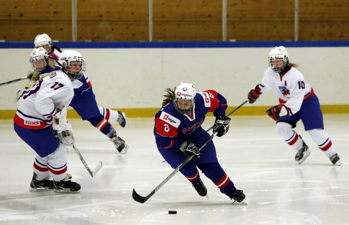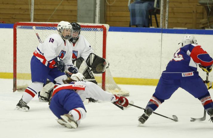 Íslenska kvennalandsliðið í íshokkí fékk skell, 2-5, er liðið mætti Slóvakíu í 2. deild heimsmeistaramótsins. Þetta var annar leikur íslenska liðsins en liðið lagði Tyrki í gær.Linda Sveinsdóttir og Guðrún María Viðarsdóttir skoruðu mörk Íslands í kvöld að því er fram kemur á mbl.is. Ísland á næst leik gegn Króatíu á fimmtudag. Hér að ofan má sjá myndir úr leik kvöldsins sem Valgarður Gíslason, ljósmyndari Fréttablaðsins og Vísis, tók.