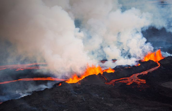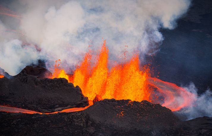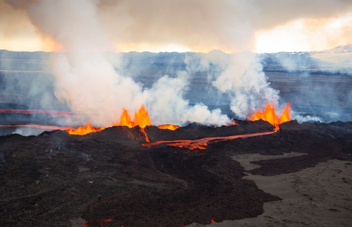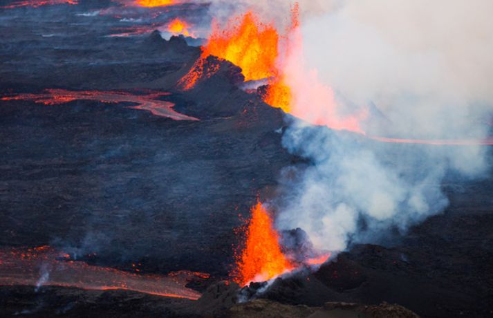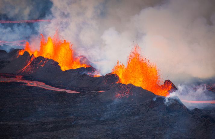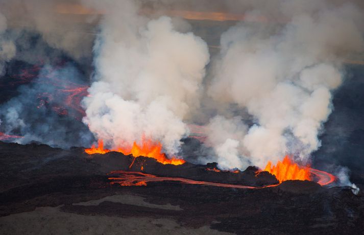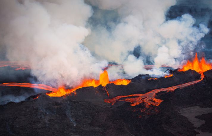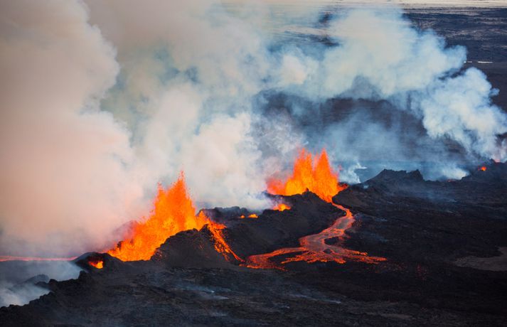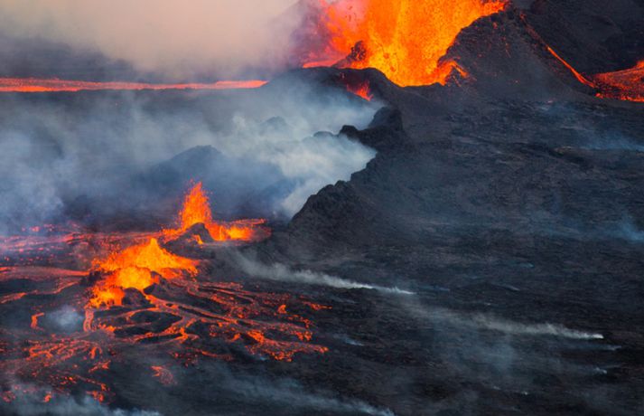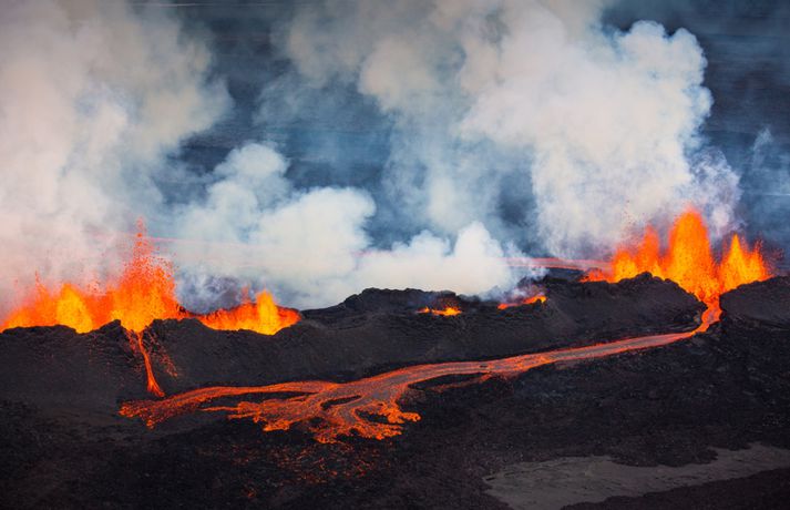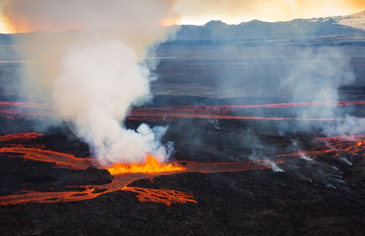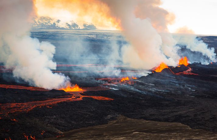Stórfenglegt eldgos - Myndasyrpa frá Holuhrauni Samúel Karl Ólason skrifar 4. september 2014 07:16 Vísir/Auðunn Eldgosið sem nú stendur yfir í Holuhrauni, norðan við Vatnajökul, hefur nú staðið yfir í rúma fimm sólarhringa. Það hófst aðfararnótt sunnudagsins. Í gærkvöldi hafði hraunið úr eldgosinu þakið 9,1 kílómetra svæði Svæðið er enn lokað fyrir umferð, en ákvörðun um áframhaldandi lokun á svæðinu verður tekin síðar í dag. Sá órói sem mældist við gosstöðvarnar dó út í gærkvöldi og ekki hefur borið á honum aftur. Auðunn Níelsson, ljósmyndari Fréttablaðsins og Vísis, flaug yfir svæðið í gær og tók meðfylgjandi myndir og má með sanni segja að eldgosið sé stórfenglegt. Bárðarbunga Tengdar fréttir Ferðaþjónustuaðilar skipuleggja ferðir á gosstöðvar Lokanir vega vegna eldgoss norðan Vatnajökuls hafa kostað ferðaþjónustufyrirtæki allt að tvær milljónir á dag. Mesta tjónið af lokun Dettifossvegar að vestan. Byrjað er að skipuleggja ferðir að gosstöðvum í Holuhrauni. 2. september 2014 08:15 Hætta á gosi undir jökli minnkar ekki Þeirri atburðarás fylgir bráð flóðahætta á flæðum framan við Dyngjujökul. 3. september 2014 12:40 Hraunið um níu ferkílómetrar að stærð Magnús Tumi Guðmundsson segir ekkert draga úr eldgosinu í Holuhrauni. 3. september 2014 19:38 Lokað fyrir alla umferð inn að gosstöðvunum Ákvörðunin er tekin í ljósi aukins óróa á gosstöðvunum í dag. 3. september 2014 20:47 Atburðarásin í Bárðarbungu frá A til Ö Þróun jarðhræringanna við Bárðarbungu undanfarnar tvær vikur leiða af sér ótal spurningar og tilgátur um hvað sé í raun að gerast. 2. september 2014 11:06 Dregur úr óróa á gosstað Stærsti skjálfti næturinnar mældist 4,8 stig að stærð og reið hann yfir rétt fyrir klukkan fjögur nyrst í Bárðarbunguöskju. 4. september 2014 06:52 Mest lesið Veðurvaktin: Snjókoman rétt að byrja og víða erfið færð Veður Ungur Miðflokksmaður gengst við rasisma og segir af sér Innlent Snjókoman rétt að byrja Innlent Flugmaðurinn sem fórst millilenti oft í Reykjavík Innlent Eldur í blokk við Ljósheima Innlent Bílar út af veginum á Reykjanesbraut Innlent Ráðgjafinn ráðinn í tímabundið starf eftir dýra skreppitúra Innlent Hvatt til varúðar vegna snjóflóðahættu á suðvesturhorninu Innlent Skvísur geti virkað sem hálfgerðir þroskaþjófar Innlent Fjölmargir farþegar fastir í flugvélum á Keflavíkurflugvelli Innlent Fleiri fréttir Kærðu umdeildar framkvæmdir allt of seint Skellt í lás í sundlaugum borgarinnar vegna veðurs Reglur brotnar og þjónusta sem bjóða ætti út Þarf að borga bætur þrátt fyrir breytingar á hlaupahjólinu Hvatt til varúðar vegna snjóflóðahættu á suðvesturhorninu Meiri kvika en í síðasta gosi Eldur í blokk við Ljósheima Flugmaðurinn sem fórst millilenti oft í Reykjavík Halla leiðir krabbameinsráð ráðherra Snjókomumet og umferðaröngþveiti Segir sameiginlegum gildum Norðurlanda ógnað Fjölmargir farþegar fastir í flugvélum á Keflavíkurflugvelli Ungur Miðflokksmaður gengst við rasisma og segir af sér Sturlað ástand og United vettlingar prjónaðir í bílnum Mesta snjódýpt í Reykjavík sem mælst hefur í október Viðbragðsaðilar í mikilli hættu vegna bíla á sumardekkjum Bílar út af veginum á Reykjanesbraut Vill heimila Samkeppniseftirlitinu að ráðast í húsleitir Snjókoman rétt að byrja Píratar berjist gegn „rísandi bylgju lýðskrums og fasisma“ Skvísur geti virkað sem hálfgerðir þroskaþjófar Ráðgjafinn ráðinn í tímabundið starf eftir dýra skreppitúra Misvægi atkvæða bitnar mest á Kraganum Heitavatnslaust á Suðurnesjum og rafmagnslaust víða um land Skreppiferðir í Jysk meðal þess sem ráðgjafi rukkaði fyrir „Ég tel ekki tilefni til að íhuga stöðu mína“ Áhyggjur af lánaframboði og ógnarlangar biðraðir Vara við ferðum á Fagradalsfjall þar sem aðstæður geti orðið hættulegar Kristmundur verður lögreglustjóri á Austurlandi „Vonandi klárast þetta á morgun“ Sjá meira