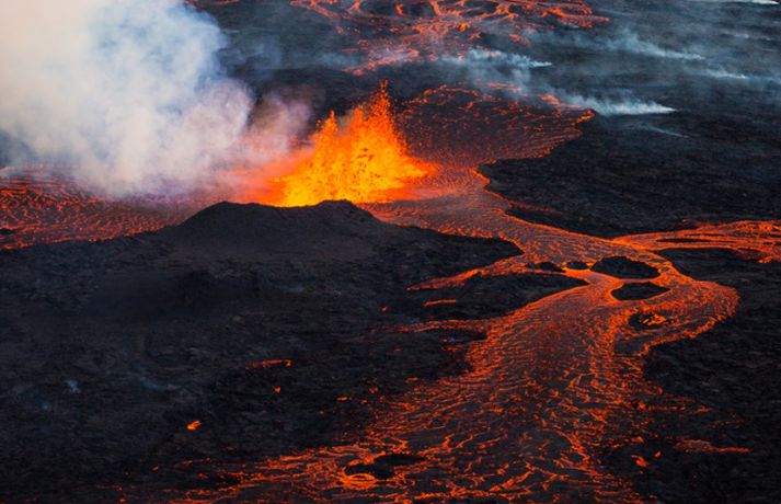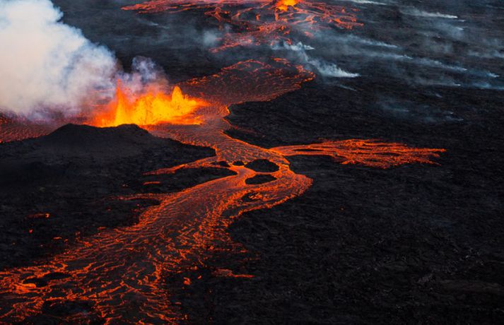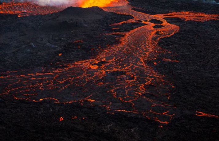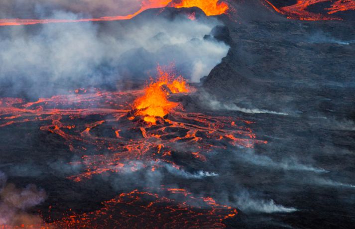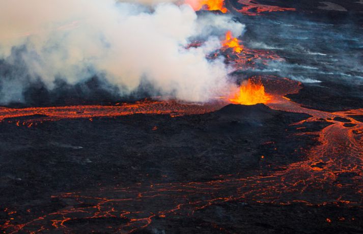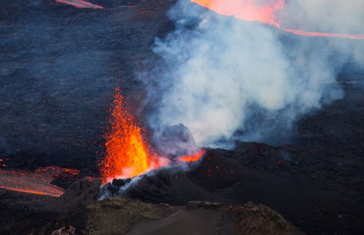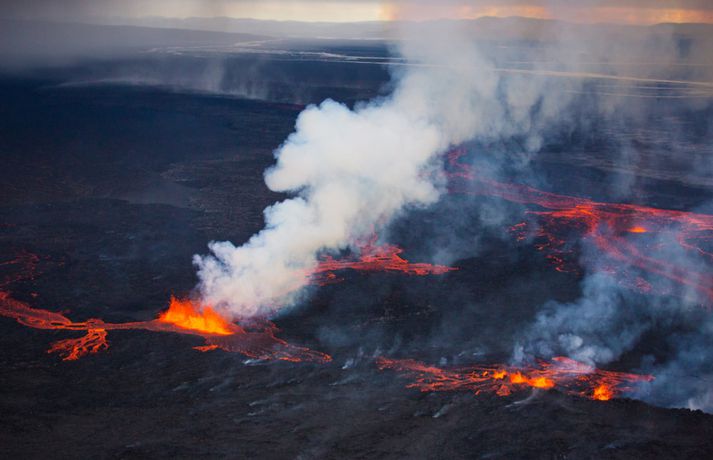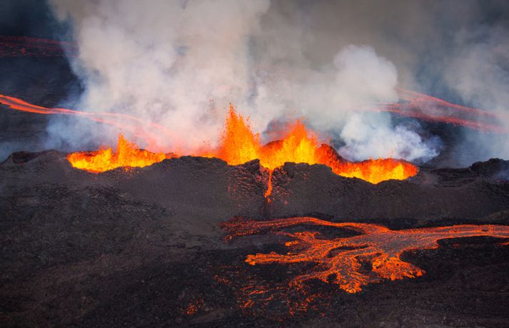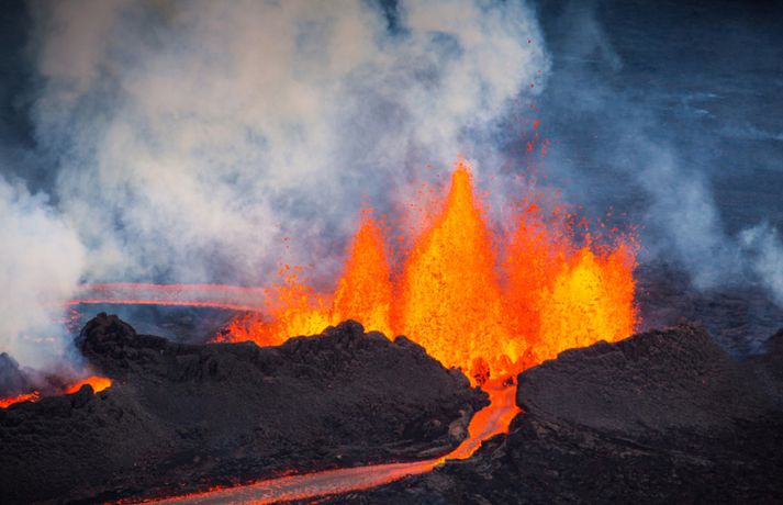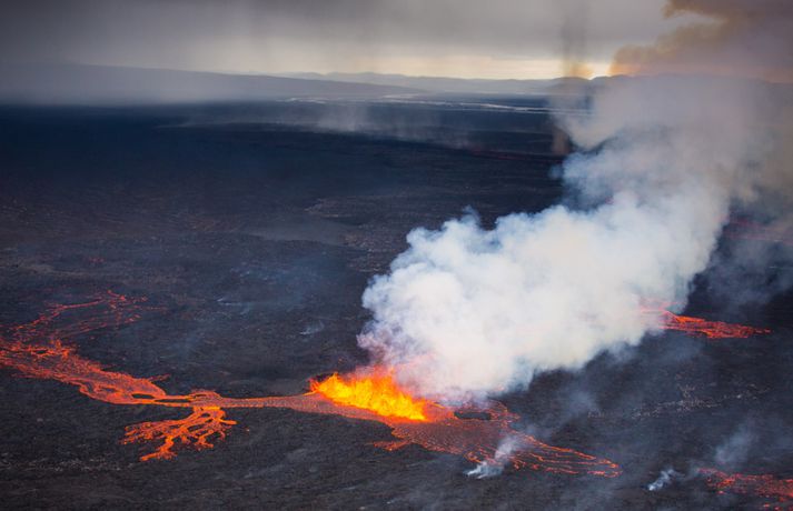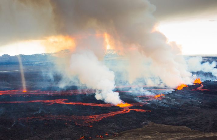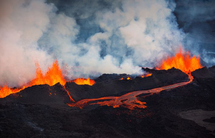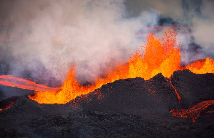 Stórfenglegt eldgos - Myndasyrpa frá Holuhrauni Samúel Karl Ólason skrifar 4. september 2014 07:16 Vísir/Auðunn Eldgosið sem nú stendur yfir í Holuhrauni, norðan við Vatnajökul, hefur nú staðið yfir í rúma fimm sólarhringa. Það hófst aðfararnótt sunnudagsins. Í gærkvöldi hafði hraunið úr eldgosinu þakið 9,1 kílómetra svæði Svæðið er enn lokað fyrir umferð, en ákvörðun um áframhaldandi lokun á svæðinu verður tekin síðar í dag. Sá órói sem mældist við gosstöðvarnar dó út í gærkvöldi og ekki hefur borið á honum aftur. Auðunn Níelsson, ljósmyndari Fréttablaðsins og Vísis, flaug yfir svæðið í gær og tók meðfylgjandi myndir og má með sanni segja að eldgosið sé stórfenglegt. Bárðarbunga Tengdar fréttir Ferðaþjónustuaðilar skipuleggja ferðir á gosstöðvar Lokanir vega vegna eldgoss norðan Vatnajökuls hafa kostað ferðaþjónustufyrirtæki allt að tvær milljónir á dag. Mesta tjónið af lokun Dettifossvegar að vestan. Byrjað er að skipuleggja ferðir að gosstöðvum í Holuhrauni. 2. september 2014 08:15 Hætta á gosi undir jökli minnkar ekki Þeirri atburðarás fylgir bráð flóðahætta á flæðum framan við Dyngjujökul. 3. september 2014 12:40 Hraunið um níu ferkílómetrar að stærð Magnús Tumi Guðmundsson segir ekkert draga úr eldgosinu í Holuhrauni. 3. september 2014 19:38 Lokað fyrir alla umferð inn að gosstöðvunum Ákvörðunin er tekin í ljósi aukins óróa á gosstöðvunum í dag. 3. september 2014 20:47 Atburðarásin í Bárðarbungu frá A til Ö Þróun jarðhræringanna við Bárðarbungu undanfarnar tvær vikur leiða af sér ótal spurningar og tilgátur um hvað sé í raun að gerast. 2. september 2014 11:06 Dregur úr óróa á gosstað Stærsti skjálfti næturinnar mældist 4,8 stig að stærð og reið hann yfir rétt fyrir klukkan fjögur nyrst í Bárðarbunguöskju. 4. september 2014 06:52 Mest lesið Veðurvaktin: Snjókoman rétt að byrja og víða erfið færð Veður Ungur Miðflokksmaður gengst við rasisma og segir af sér Innlent Snjókoman rétt að byrja Innlent Flugmaðurinn sem fórst millilenti oft í Reykjavík Innlent Eldur í blokk við Ljósheima Innlent Bílar út af veginum á Reykjanesbraut Innlent Ráðgjafinn ráðinn í tímabundið starf eftir dýra skreppitúra Innlent Hvatt til varúðar vegna snjóflóðahættu á suðvesturhorninu Innlent Skvísur geti virkað sem hálfgerðir þroskaþjófar Innlent Fjölmargir farþegar fastir í flugvélum á Keflavíkurflugvelli Innlent Fleiri fréttir Kærðu umdeildar framkvæmdir allt of seint Skellt í lás í sundlaugum borgarinnar vegna veðurs Reglur brotnar og þjónusta sem bjóða ætti út Þarf að borga bætur þrátt fyrir breytingar á hlaupahjólinu Hvatt til varúðar vegna snjóflóðahættu á suðvesturhorninu Meiri kvika en í síðasta gosi Eldur í blokk við Ljósheima Flugmaðurinn sem fórst millilenti oft í Reykjavík Halla leiðir krabbameinsráð ráðherra Snjókomumet og umferðaröngþveiti Segir sameiginlegum gildum Norðurlanda ógnað Fjölmargir farþegar fastir í flugvélum á Keflavíkurflugvelli Ungur Miðflokksmaður gengst við rasisma og segir af sér Sturlað ástand og United vettlingar prjónaðir í bílnum Mesta snjódýpt í Reykjavík sem mælst hefur í október Viðbragðsaðilar í mikilli hættu vegna bíla á sumardekkjum Bílar út af veginum á Reykjanesbraut Vill heimila Samkeppniseftirlitinu að ráðast í húsleitir Snjókoman rétt að byrja Píratar berjist gegn „rísandi bylgju lýðskrums og fasisma“ Skvísur geti virkað sem hálfgerðir þroskaþjófar Ráðgjafinn ráðinn í tímabundið starf eftir dýra skreppitúra Misvægi atkvæða bitnar mest á Kraganum Heitavatnslaust á Suðurnesjum og rafmagnslaust víða um land Skreppiferðir í Jysk meðal þess sem ráðgjafi rukkaði fyrir „Ég tel ekki tilefni til að íhuga stöðu mína“ Áhyggjur af lánaframboði og ógnarlangar biðraðir Vara við ferðum á Fagradalsfjall þar sem aðstæður geti orðið hættulegar Kristmundur verður lögreglustjóri á Austurlandi „Vonandi klárast þetta á morgun“ Sjá meira