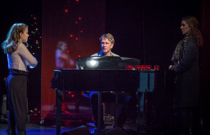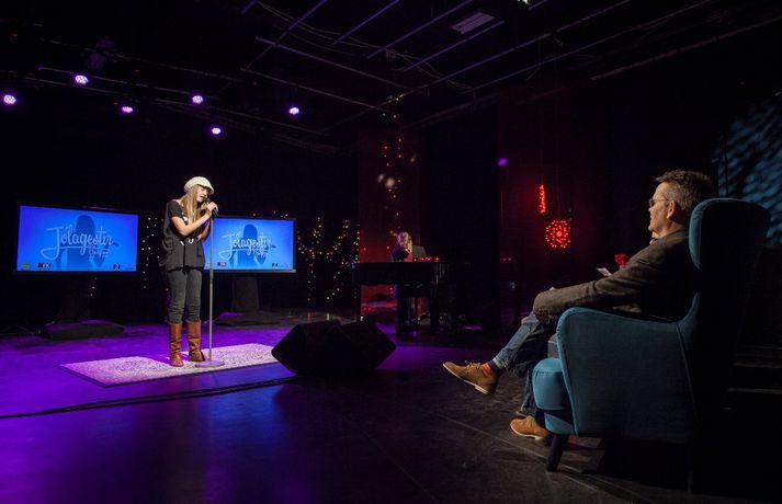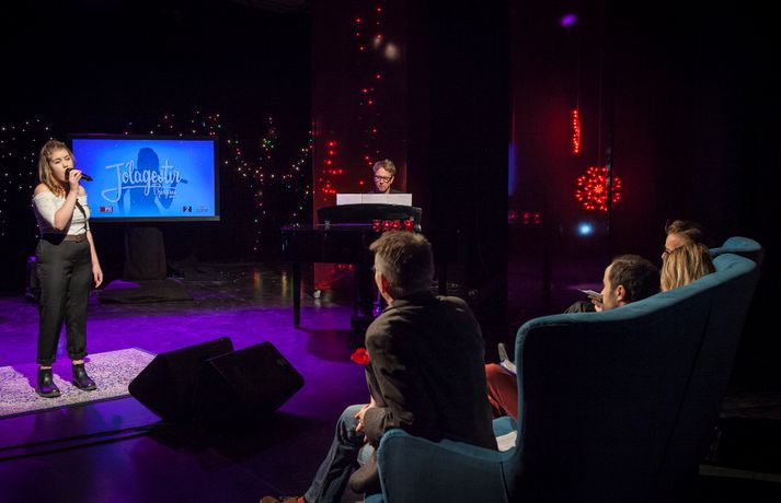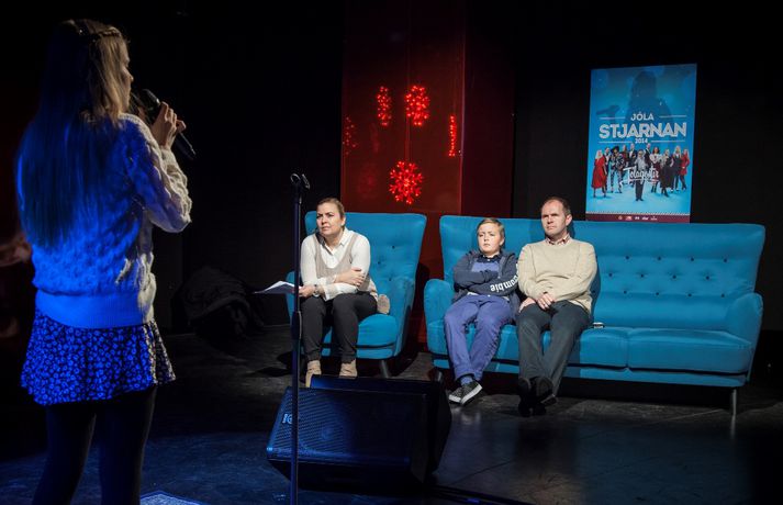 Alls sóttu um þrjú hundruð börn um í söngkeppninni Jólastjörnunni í ár en skráningu lauk þann 22. október síðastliðinn á Vísi. Keppnin er fyrir börn yngri en sextán ára en tíu keppendur sem þóttu skara fram úr að mati dómnefndar komust áfram í prufur. Fylgst verður með prufunum í Ísland í dag í kvöld klukkan 18.55 en sigurvegarinn í Jólastjörnunni 2014 verður tilkynntur á mánudaginn næsta. Sigurvegarinn kemur fram á stórtónleikunum Jólagestir Björgvins eins og síðustu ár. Í fyrra var það Eik Haraldsdóttir sem bar sigur úr býtum og heillaði dómnefndina upp úr skónum. Dómnefndina í ár skipa sjálfur Björgvin Halldórsson, Gissur Páll, Gunnar Helgason og Jóhanna Guðrún. Uppfært: Í spilaranum fyrir ofan má sjá þáttinn. Á Vísir Sjónvarp er að finna myndbönd af flutningi krakkanna í fullri lengd undir flokknum Ísland í dag og Jólastjarnan.Hér fyrir neðan má fletta myndasafni með fleiri myndum frá upptökum Jólastjörnunnar.Aðstandendur fengu að fylgjast með. Lengst til hægri má sjá Kristján Gíslason sem var fulltrúi Íslands í Eurovision árið 2001 með lagið Angel.Rúnar Freyr hjálpaði keppendum.Dómnefndin ásamt Pálma Sigurhjartarsyni, píanóleikara og sviðsstjóranum Rúnari Frey Gíslasyni.
